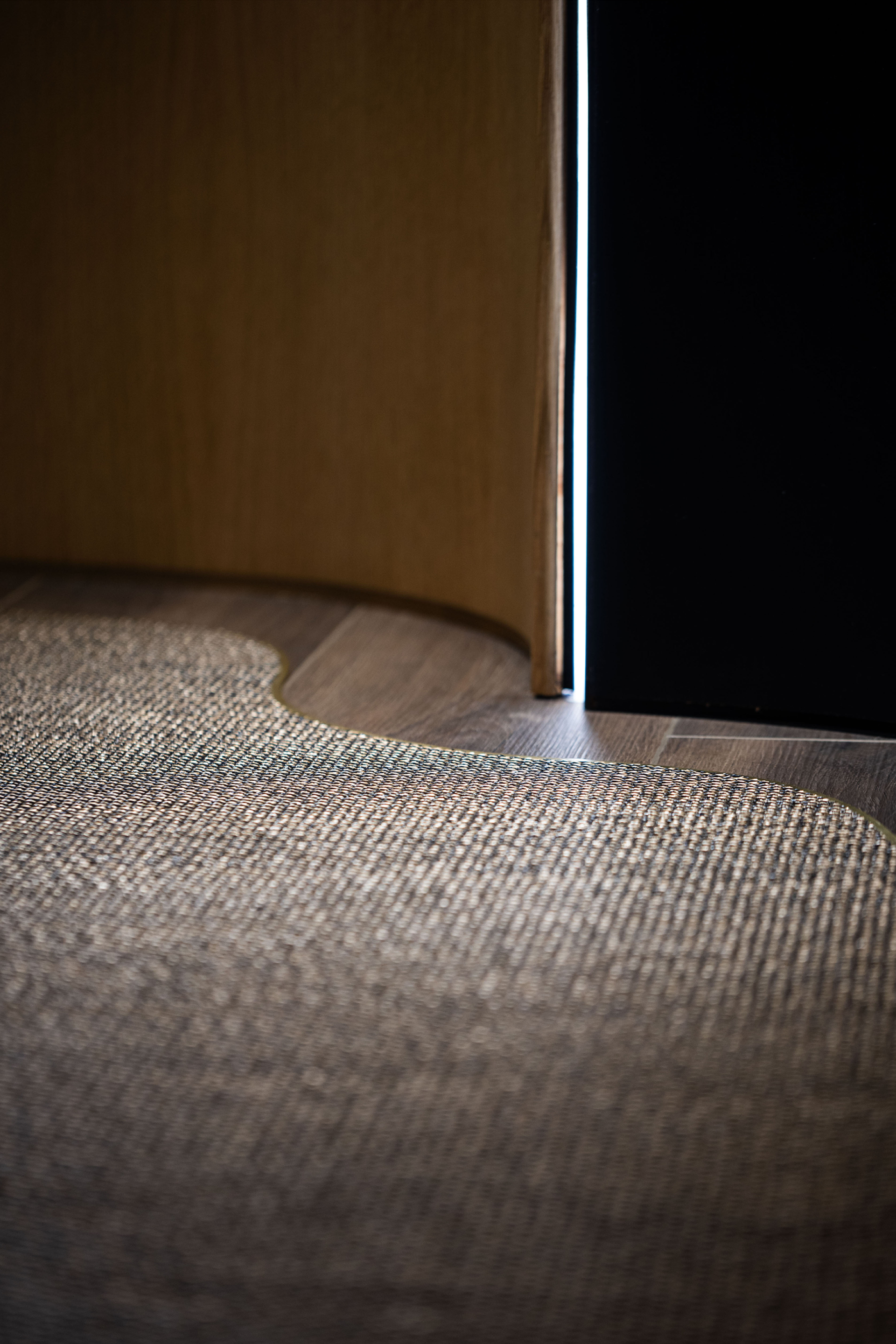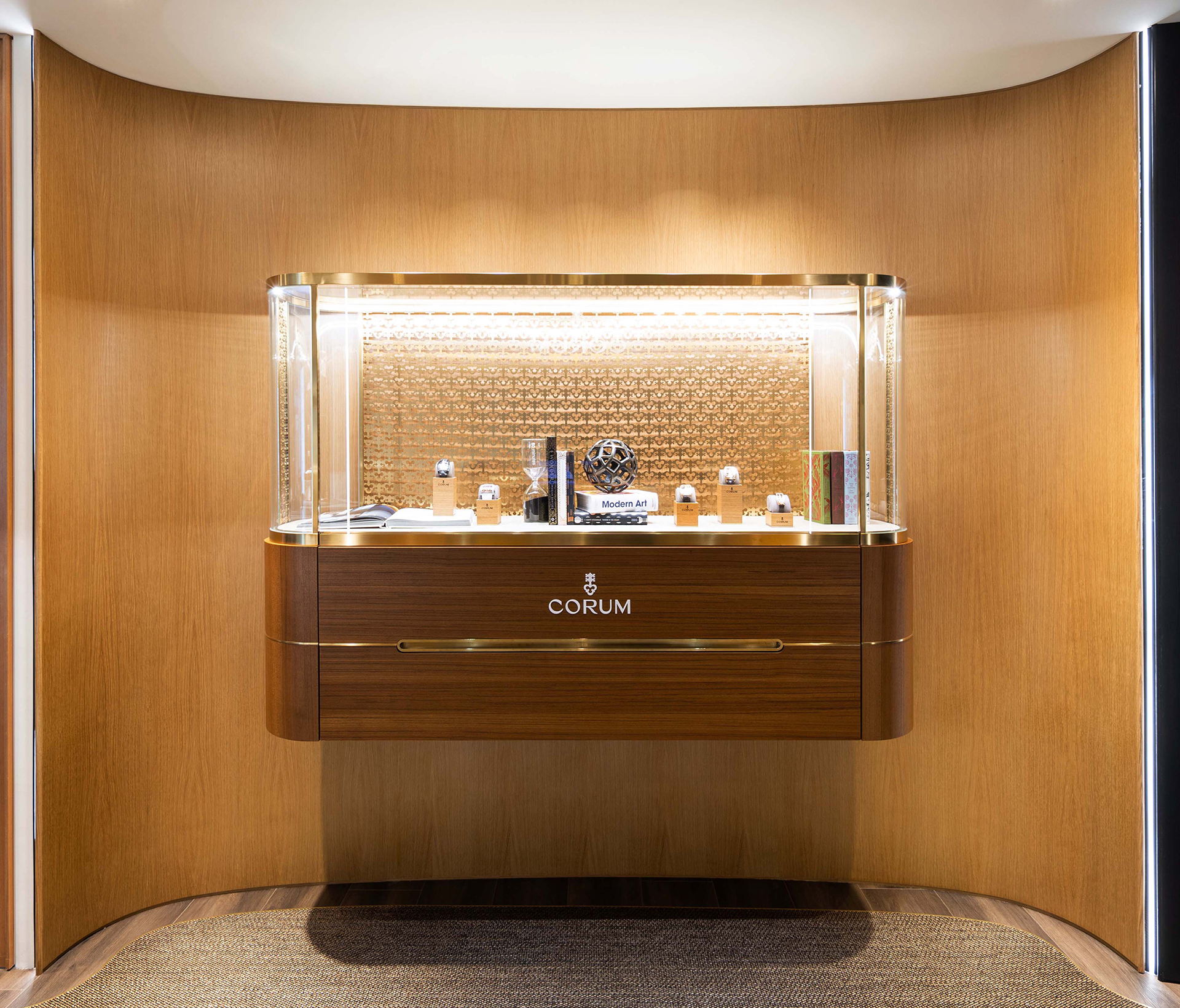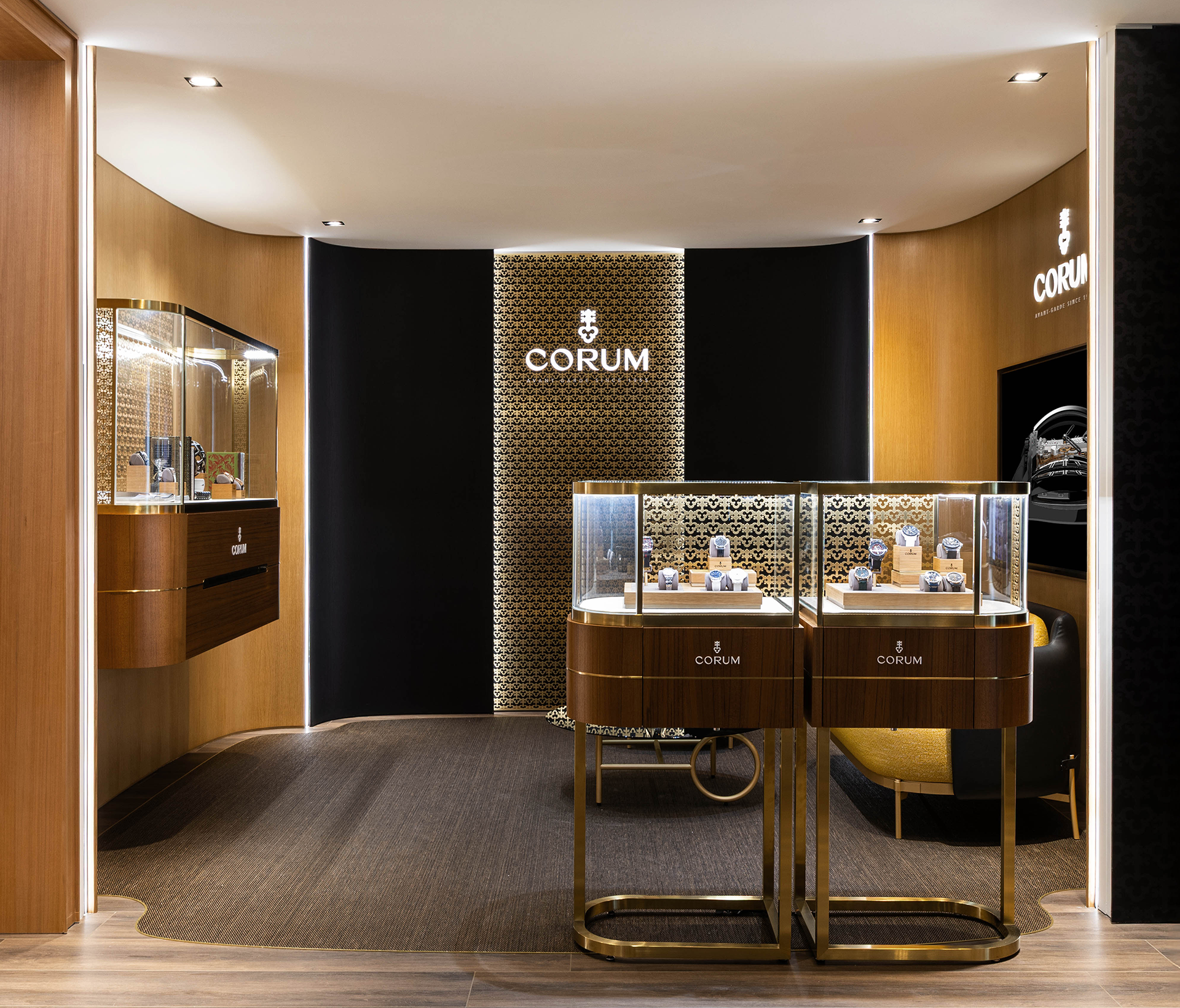 Merging CORUM’s global vision with local cultural depth, the space takes cues from Eastern philosophies of time—emphasizing slowness, rhythm, and introspection. Natural wood veneer, woven carpets, and ambient lighting evoke warmth, craftsmanship, and a sensory richness that strikes a balance between function and aesthetics.
