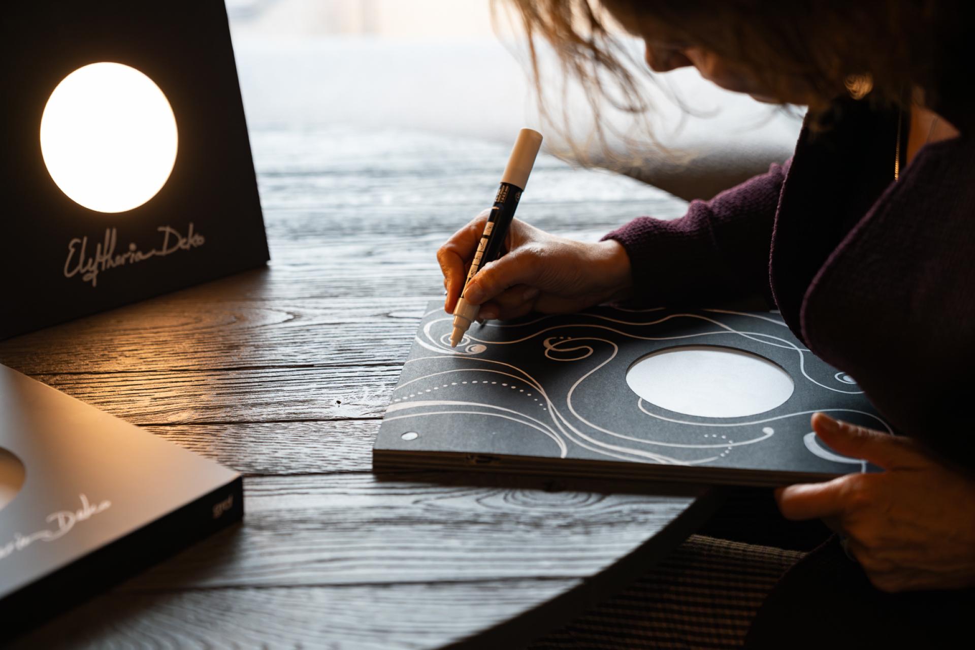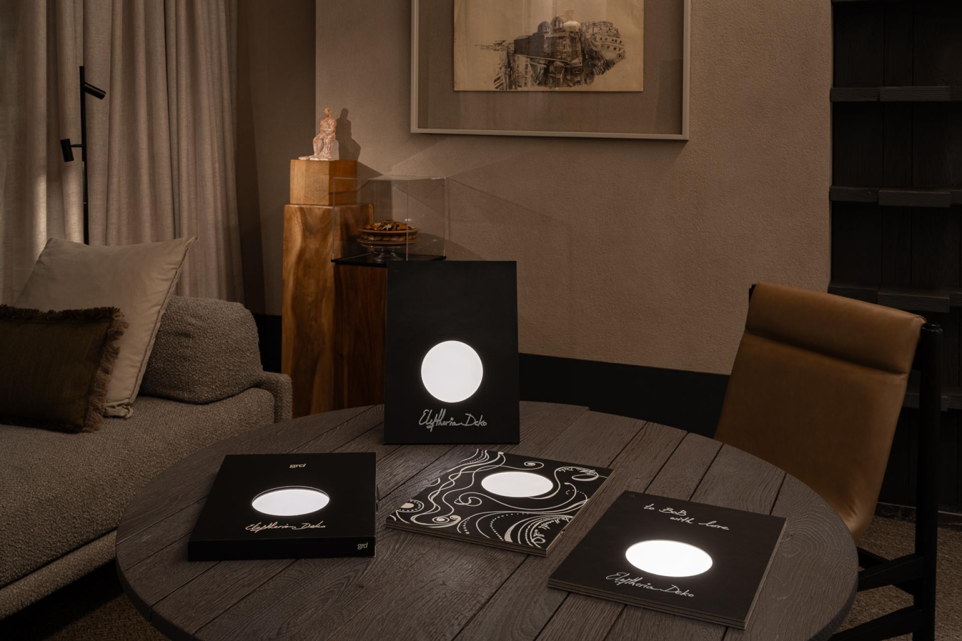 The Paper Book Light is a unique lighting fixture. Conceived as part of a special issue - tribute of GrD magazine to Eleftheria Deko, this piece was inspired by the idea to create a light fixture made of paper in the size of a notebook that you can write on it and decorate it with your personal designs. It can be stored on the bookself or used as a table lamp. Unlike conventional lights, the paper exterior isn’t just a design feature; it’s an invitation to make the piece your own, an invitation to everybody's artistic self. The front cover of the fixture can be written or drawn on, encouraging personalization and creativity. Whether it’s a l quote or a sketch, this feature transforms the Paper Book Light into a one-of-a-kind creation tailored to its owner’s imagination. Its minimalist design blends into any space, creating a warm atmosphere. The idea of using recycled paper as the primary material of the body reflects a commitment to sustainability and creativity. Paper, often seen as fragile and ephemeral, is reimagined here as a robust and functional material while it adds to the fixture’s aesthetic charm. It also underscores its eco-conscious design, making it an excellent choice for those who value sustainability in their everyday lives. The Paper Book Light is a thoughtfully engineered product. It is designed to be practical, lightweight, and portable, making it easy to incorporate into various settings. Its warm 2700K dimmable light and compact form create a cozy ambiance. There is a limited-edition of 500 pieces, signed and hand painted by Eleftheria Deko, further enhancing its value as a collector’s item. This exclusivity turns every fixture into a meaningful keepsake—a blend of art and functionality that transcends mere utility. it is presented alongside the December 2024 issue Grd magazine, or alone.