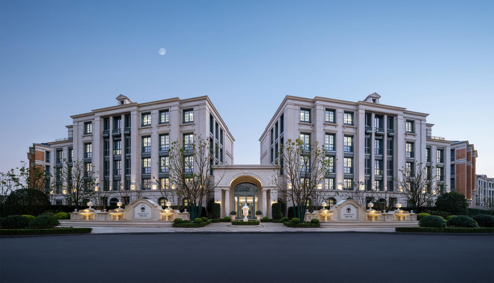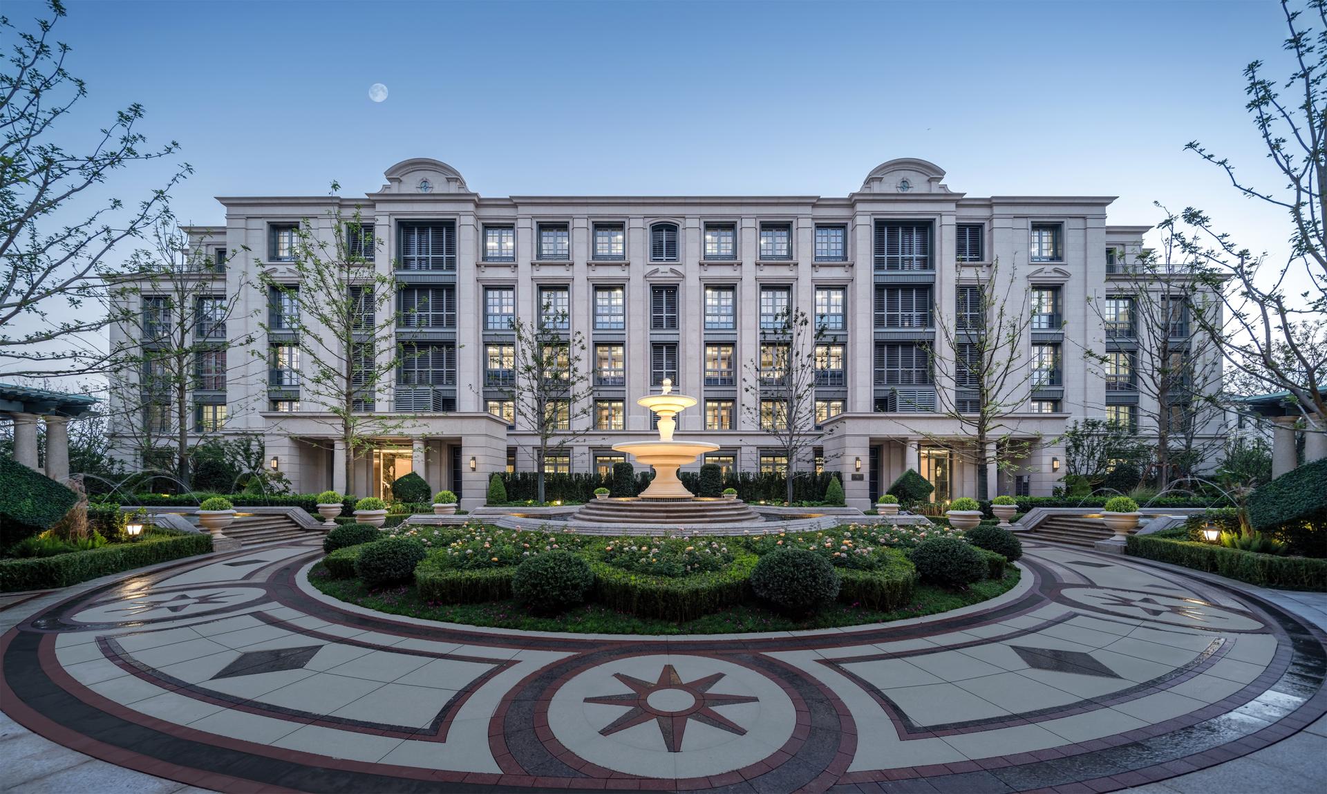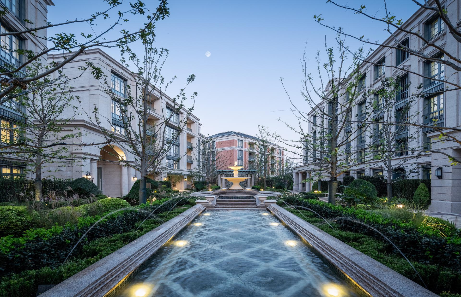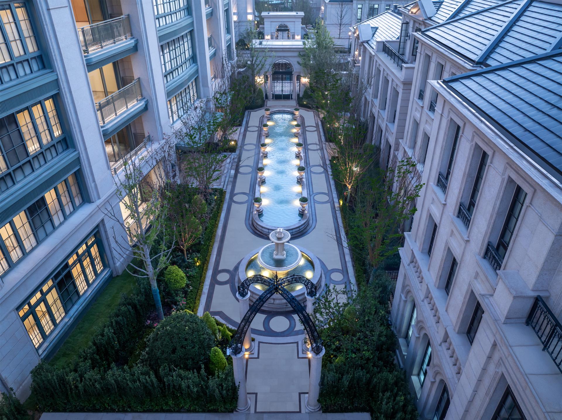 The project is located on the Huangpu River Bend in Pudong, Shanghai, where time flows through the rapidly developing riverside area, growing more vibrant with each passing day. The elegant site, shaped like a butterfly, sits amidst one shore and three bays, surrounded by top-notch landscapes, embodying the beauty and vision of urban life. The landscape design is rooted in grand classical aesthetics, blending the charm of Shanghai's local culture with French elegance and romance, creating a garden rich in layers and details that reinterprets modern luxury through classic elements. When flowers bloom on the forefront beach, butterflies spread their wings here, releasing a fragrant aroma.