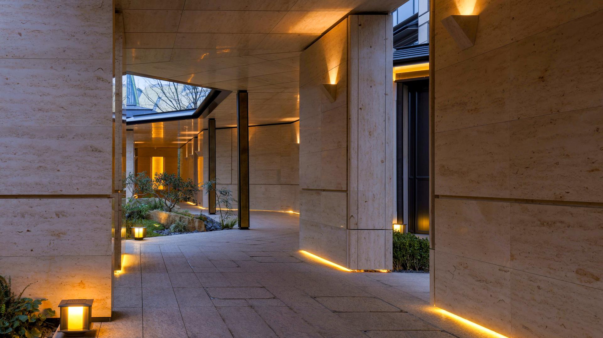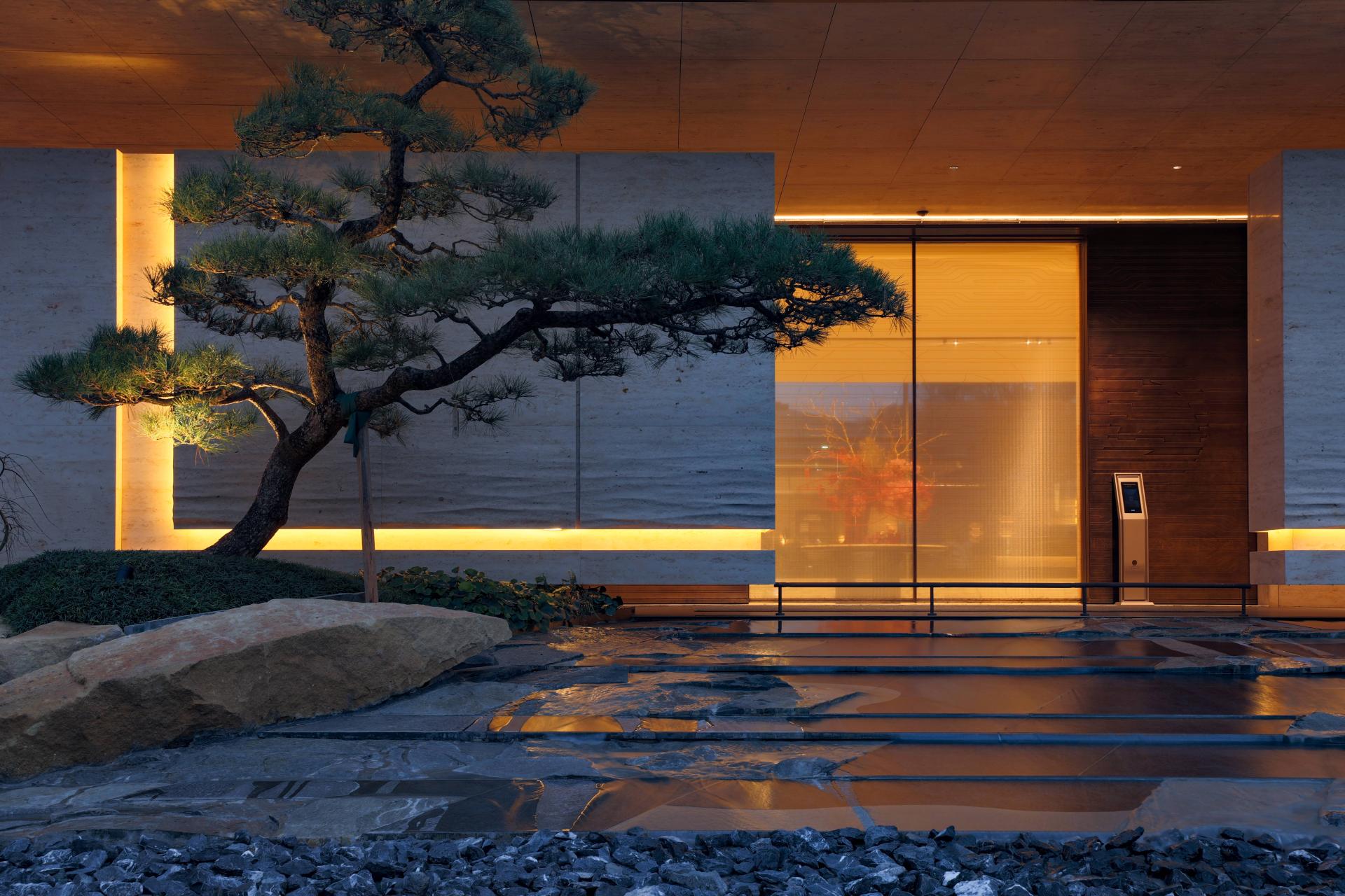 Before stepping through the gate, one is greeted by the gentle sound of flowing water, infusing the site with the serene and ethereal ambiance of Baima Lake. An elegant ceremonial entrance creates the first impression, initiating the journey through the four-tiered landscape spaces. As one steps inside, the internal corridor space narrows the field of vision, while the openings interspersed within are the voids where the landscape and architecture echo each other. The soft sunlight, along with natural vegetation and gravel, mellows the hard edges of the internal corridor.