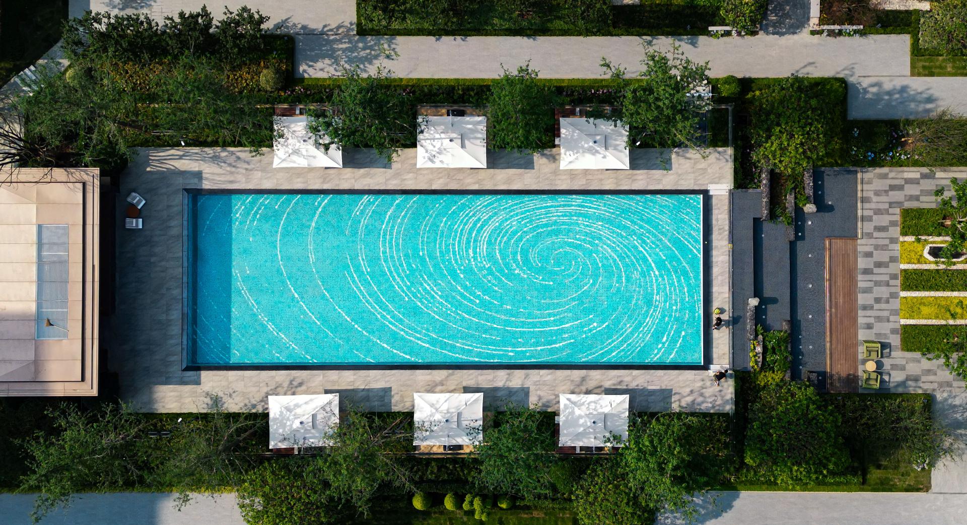 Upon entering the park, the vista opens up expansively, with the central axis landscape extending the line of sight infinitely. Row-planted trees and undulating shrub belts create a floral border teeming with natural vitality, resembling flowing waves that guide the way home. Centered around a swimming pool garden, the surrounding under-tree gardens, art gardens, Chunzhi Academy, and other areas are interconnected, forming a layout pattern of one axis and two loops. The interplay of light and shadow outlines the park's silhouette, integrating them into daily life scenes. Enveloped in greenery, the central swimming pool shimmers with rippling reflections under the sunlight, complemented by swaying tree shadows. The seamless integration of a cascading water leisure space and landscape corridors showcases a leisurely and serene future resort-like living scene. The under-tree gardens extend the living room space outdoors, with artistic flower borders surrounding sunlit lawns, combined with a bar and corridors, creating a vibrant and colorful natural retreat beneath the trees. The art garden serves as a tranquil oasis within the park, with lush green grass exuding energy and vitality. Breaking free from spatial constraints, a 300m circular running track connects fitness spaces and children's activity areas, crafting a "youthful" community centered around family, vitality, and sports, and depicting a harmonious and joyful family living experience.