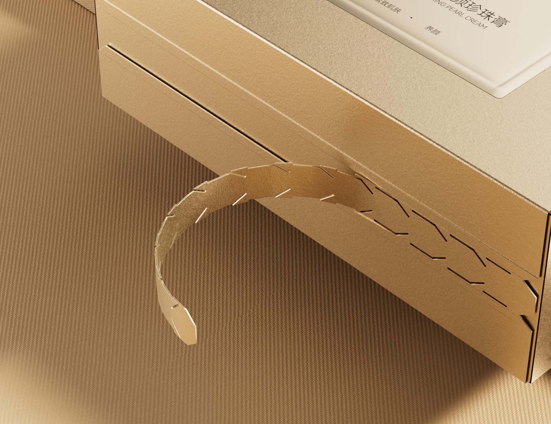 This packaging design breaks the homogeneity in pearl cream packaging through thoughtful differentiation, offering a premium skincare experience with its unique visual narrative and unboxing ritual. This approach creates an irreplicable identity for the product. Inspired by pearls’ natural luminescence and radiating formations, along with the embossed metal buttons of ancient Chinese jade burial suits sewn with golden threads, the packaging harmoniously fuses Eastern pearl symbolism with modern design principles, aligning with the rising “Eastern Aesthetics Renaissance.” Beyond mere packaging, it channels the brand ethos: “True Pearl Radiance—Deeply Nourished, Visibly Luminous.” It speaks directly to consumers seeking glowing skin and refined lifestyles, while demonstrating how tradition and modern design can unite to create something timeless and fresh.