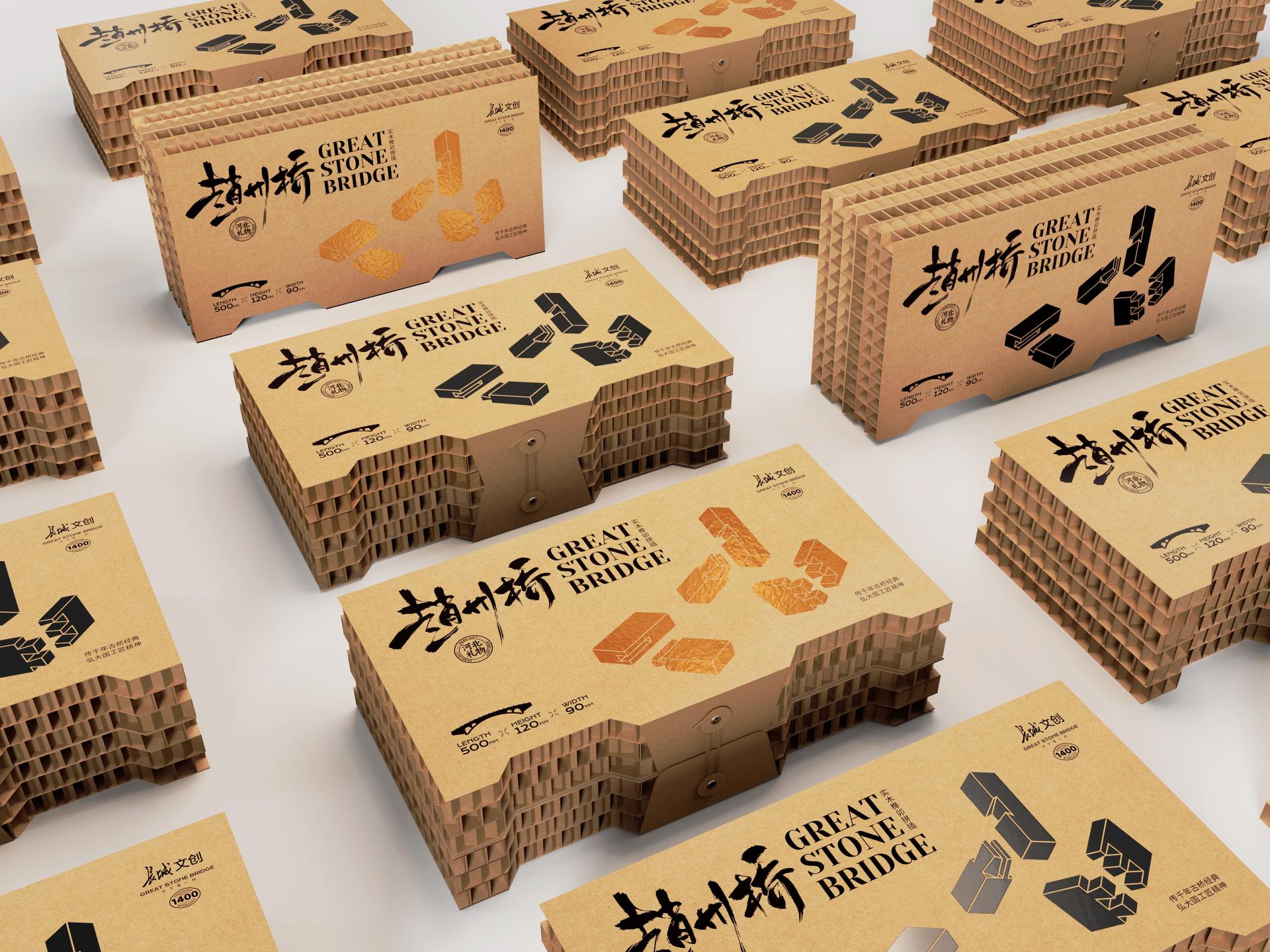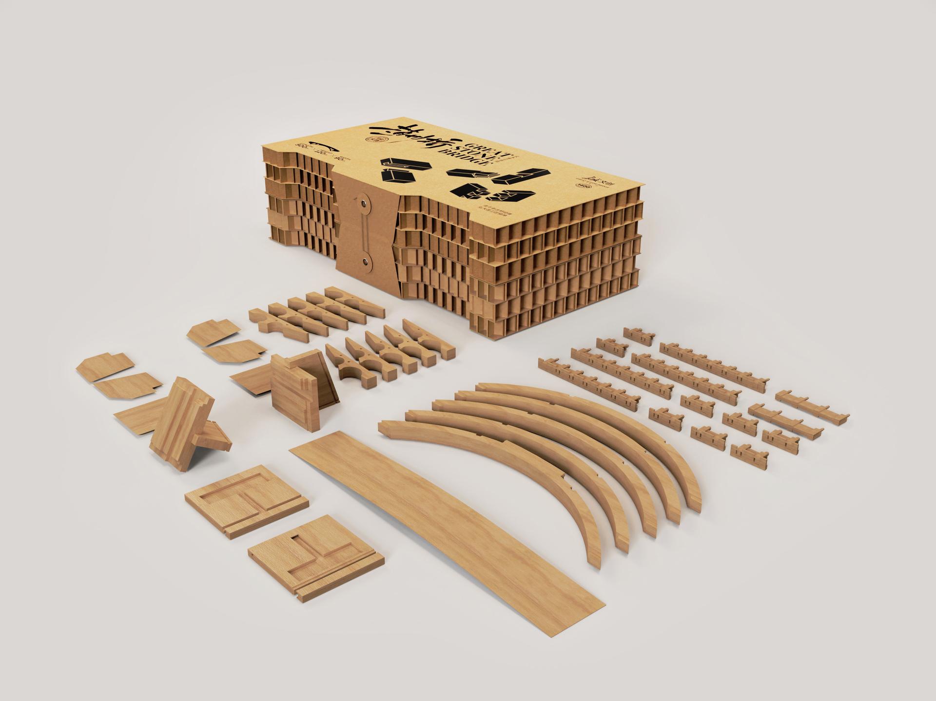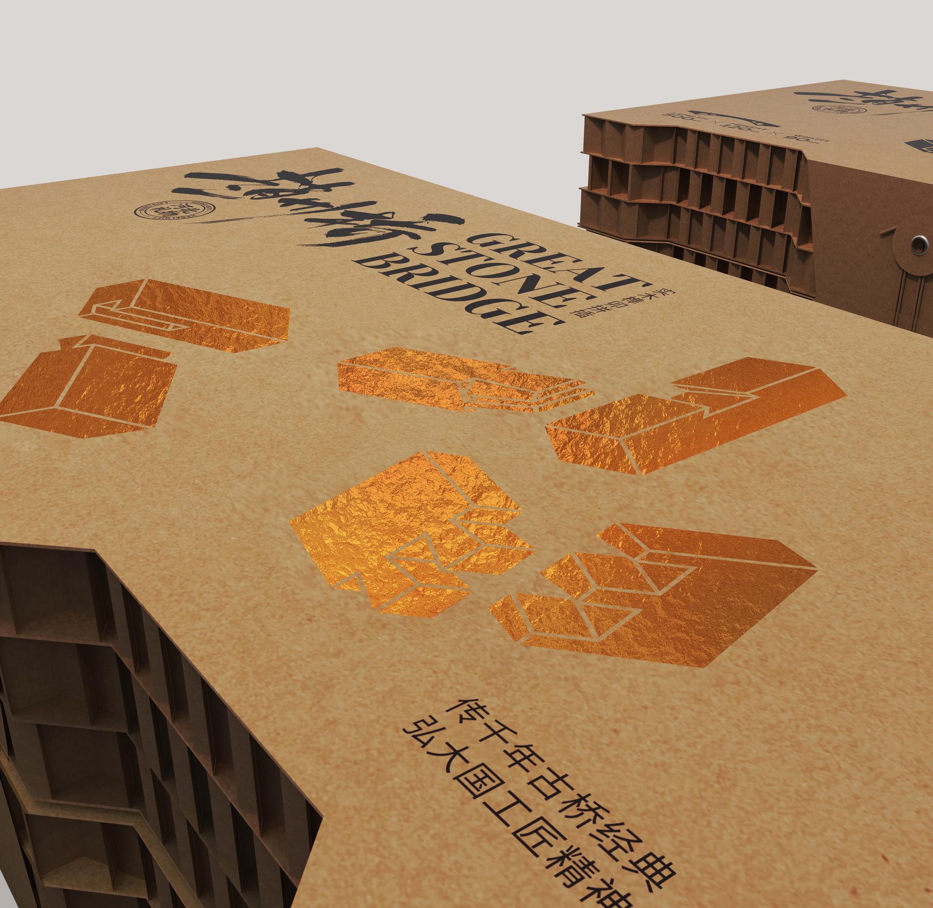 This "Zhaozhou Bridge" creative product integrates traditional Chinese mortise and tenon woodworking techniques with the concept of modular assembling intelligence toys. The packaging is mainly made of coarse honeycomb paperboard, which is carefully selected to match the product's characteristics and ensure sturdiness, providing reliable protection for the internal model. In terms of style, the rustic texture of the coarse honeycomb paperboard complements the ancient charm of the Zhaozhou Bridge, conveying a strong sense of historical heritage. Moreover, the honeycomb paperboard is known for its durability and environmentally friendly nature, which not only echoes the current eco conscious philosophy but also adds a unique memory point and visual impact to the product. The overall package design, meeting the functional need of protection and matching the ancient bridge's charm aesthetically, achieves an organic unity of practicality and beauty.