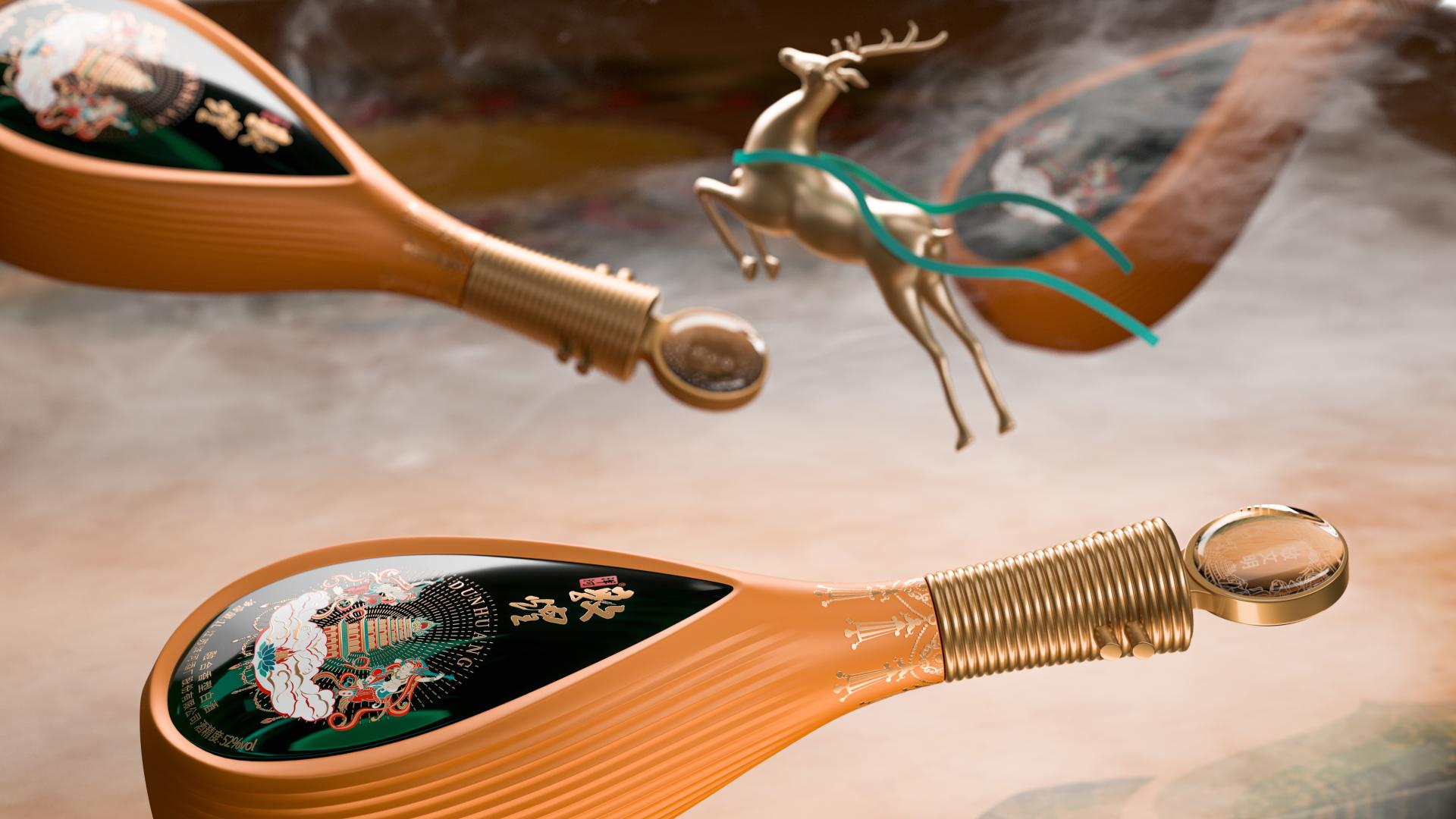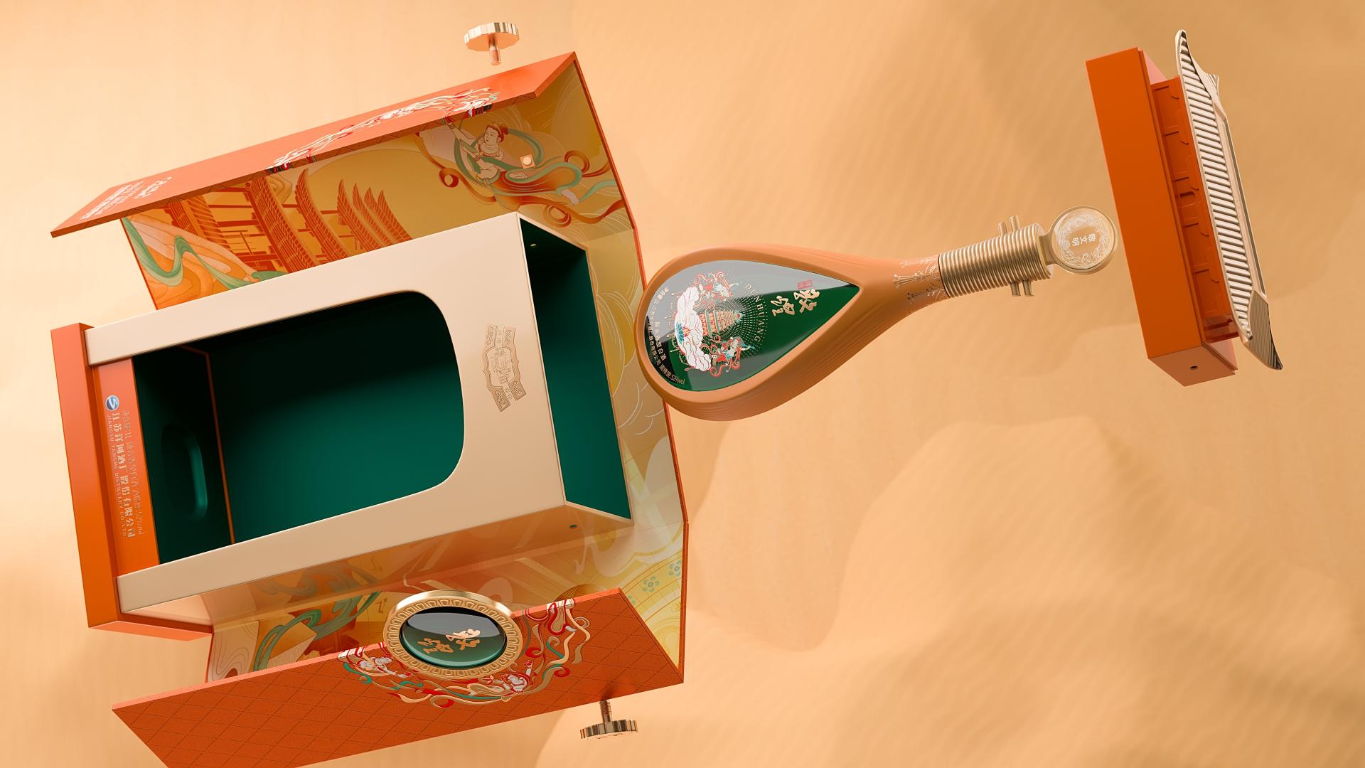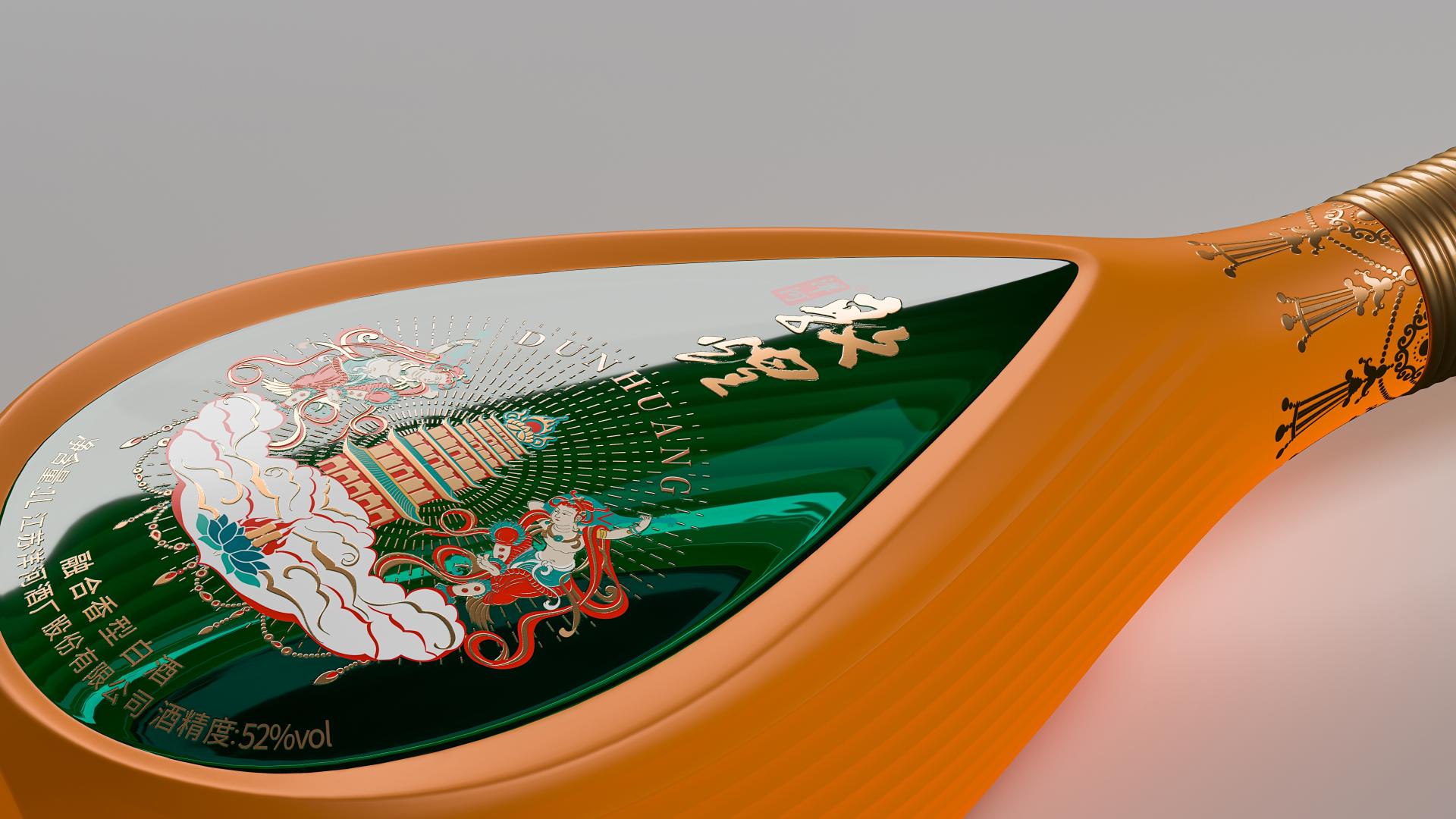 The bottle’s silhouette mirrors the elegant curves of a pipa, an instrument immortalized in Dunhuang murals. Its sweeping profile evokes the fluid grace of oriental silk, while the emerald-green glass front pays homage to the historical journey of Western glassmaking techniques into the East.