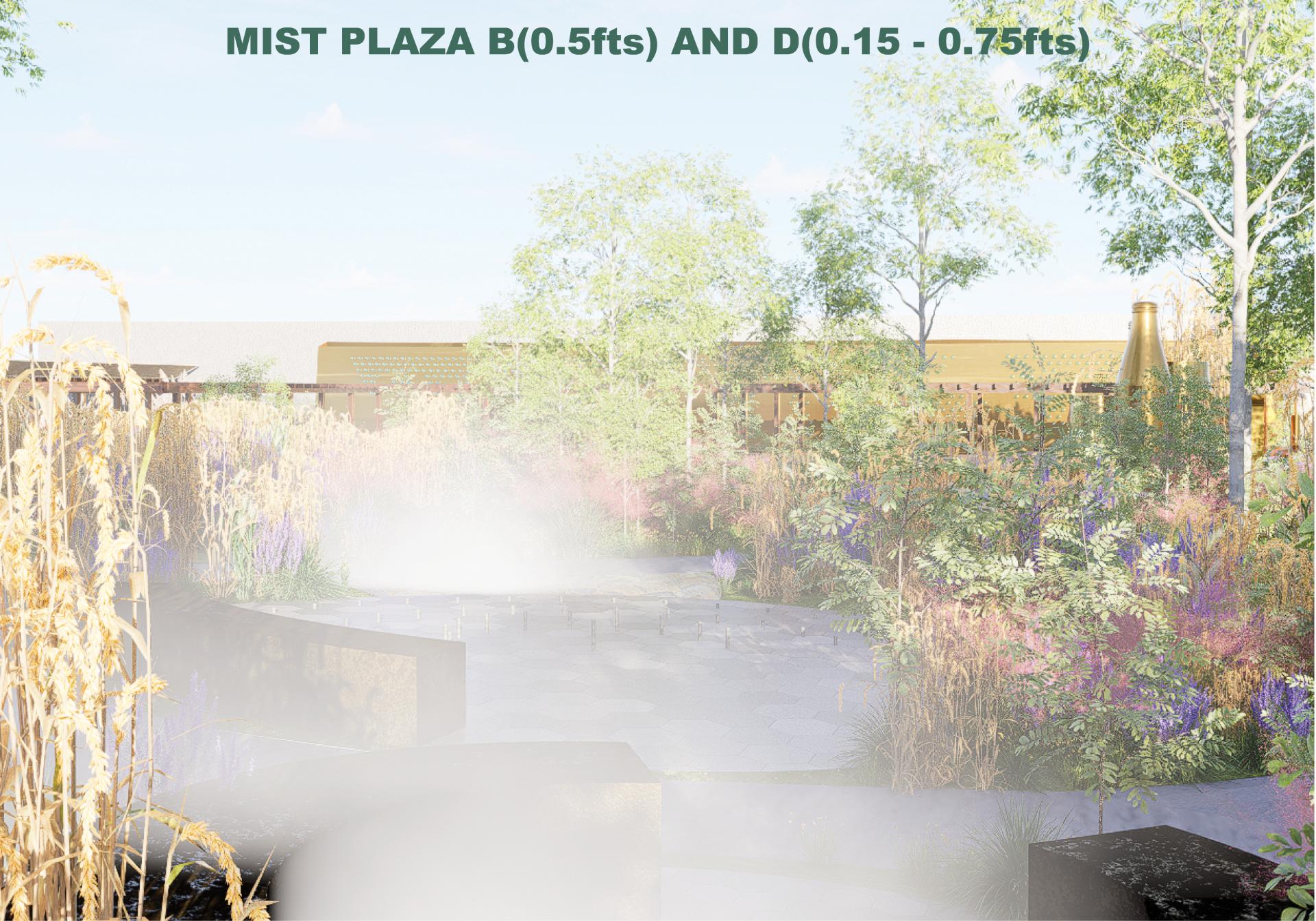 The garden translates these brewing stages into a spatial experience. Mist-filled zones mimic the dramatic cooling phase, immersing visitors in the sensory atmosphere of the brewery. From ingredient planting beds to a central fermentation plaza, the sequence of spaces reflects malting, boiling, cooling, and maturation.