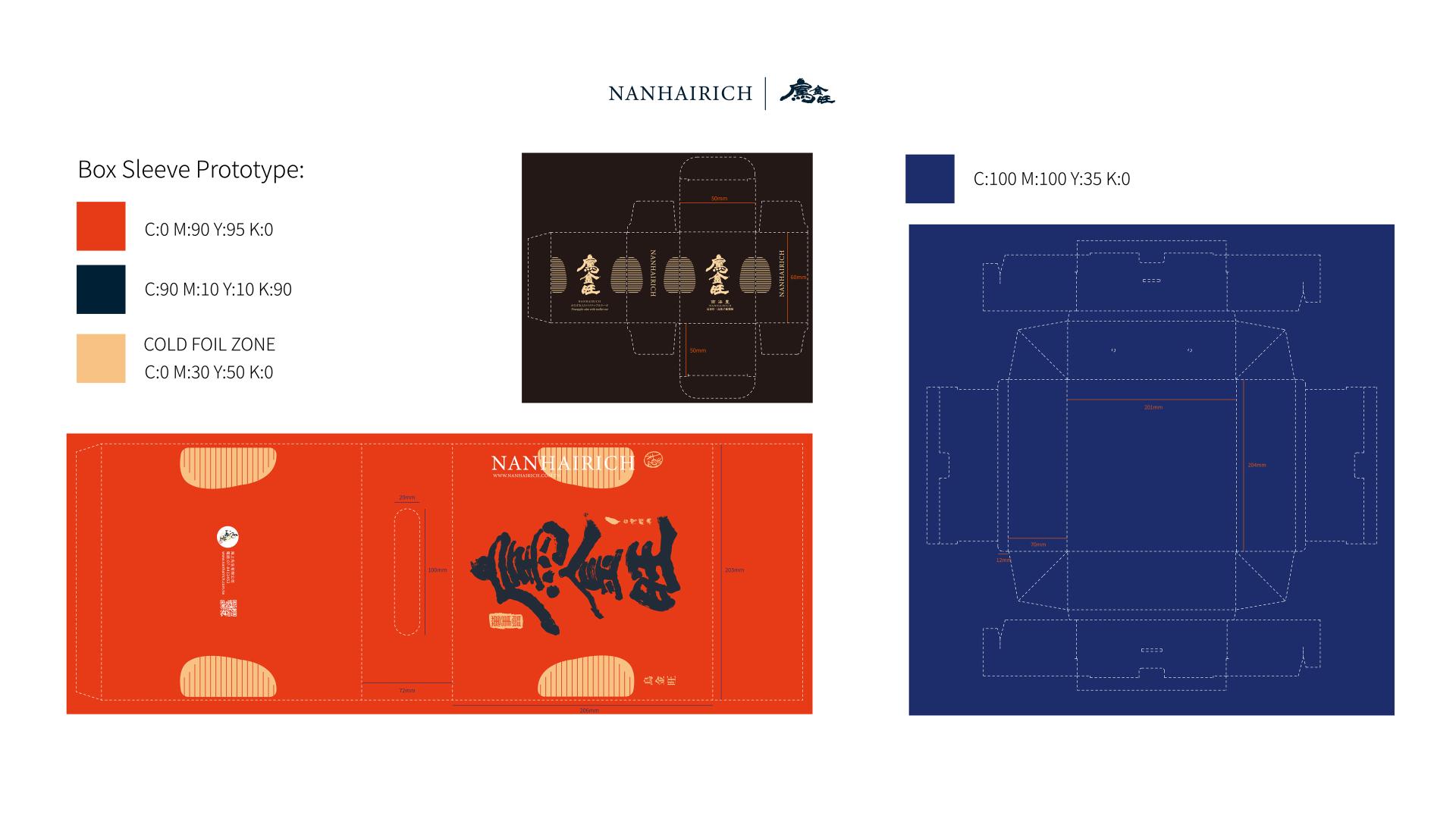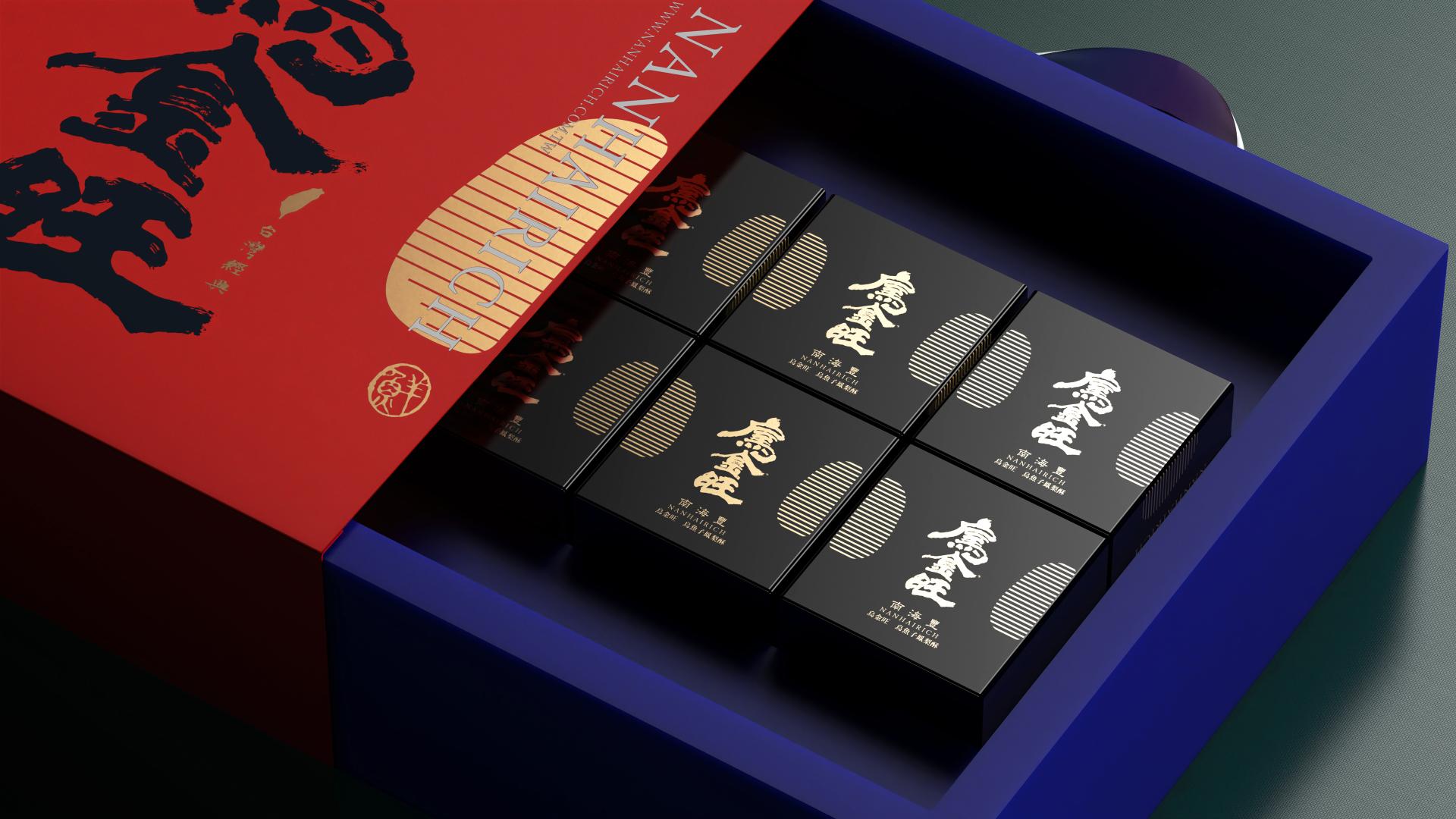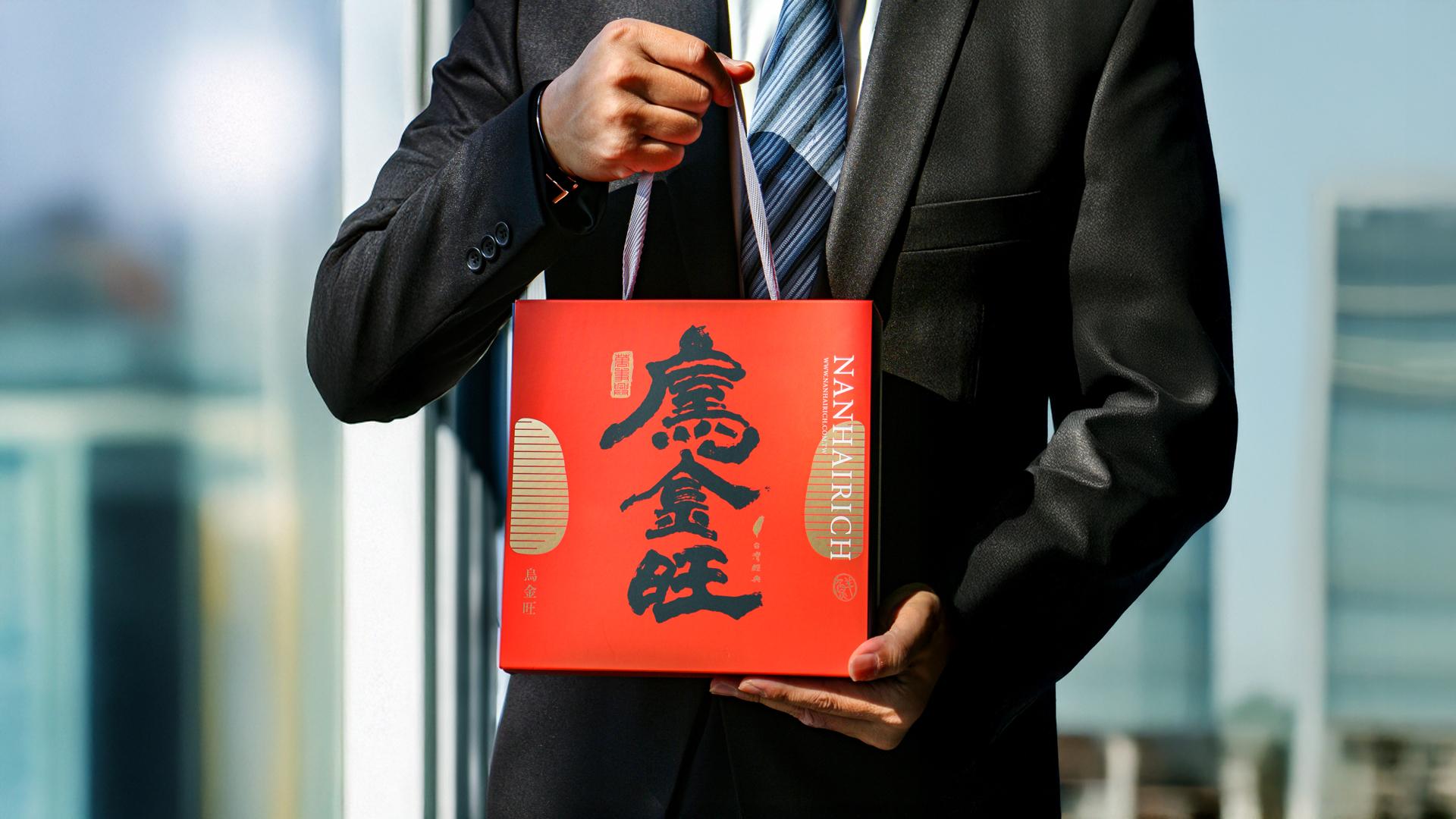 The “Wu Jin Wang (烏金旺)” gift box is inspired by Taiwan’s seafood culture, blending traditional Eastern calligraphy with modern visual design to create a culturally rich style. “Wu (烏)” refers to the prized mullet roe, known as “black gold,” while “Jin Wang (金旺)” comes from the Taiwanese word for pineapple, symbolizing prosperity and blessings. The packaging uses black, gold, and red as its main colors—black represents the mullet roe and deep cultural roots, gold stands for wealth and elegance, and red adds a festive and gift-worthy feeling. Bold calligraphy paired with layered box structure expresses the spirit of ocean craftsmanship and the premium taste of Taiwan.