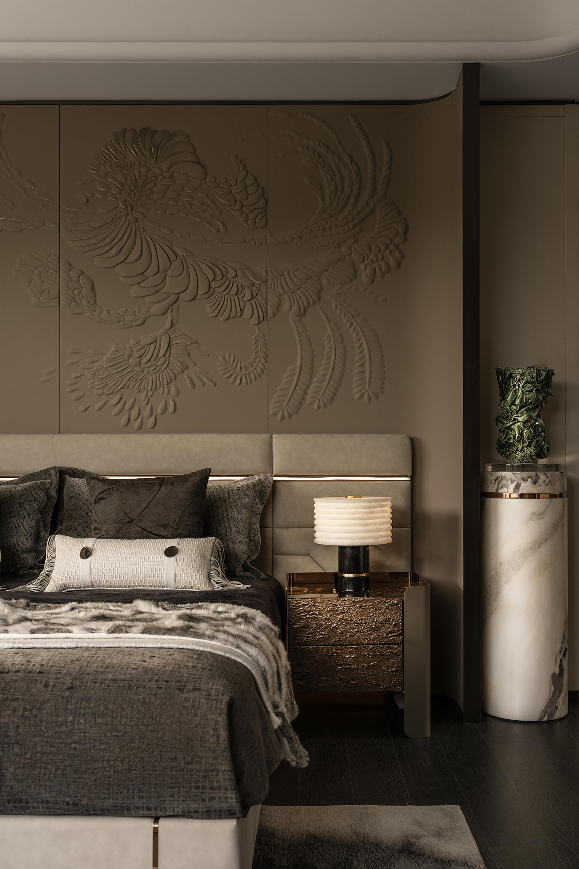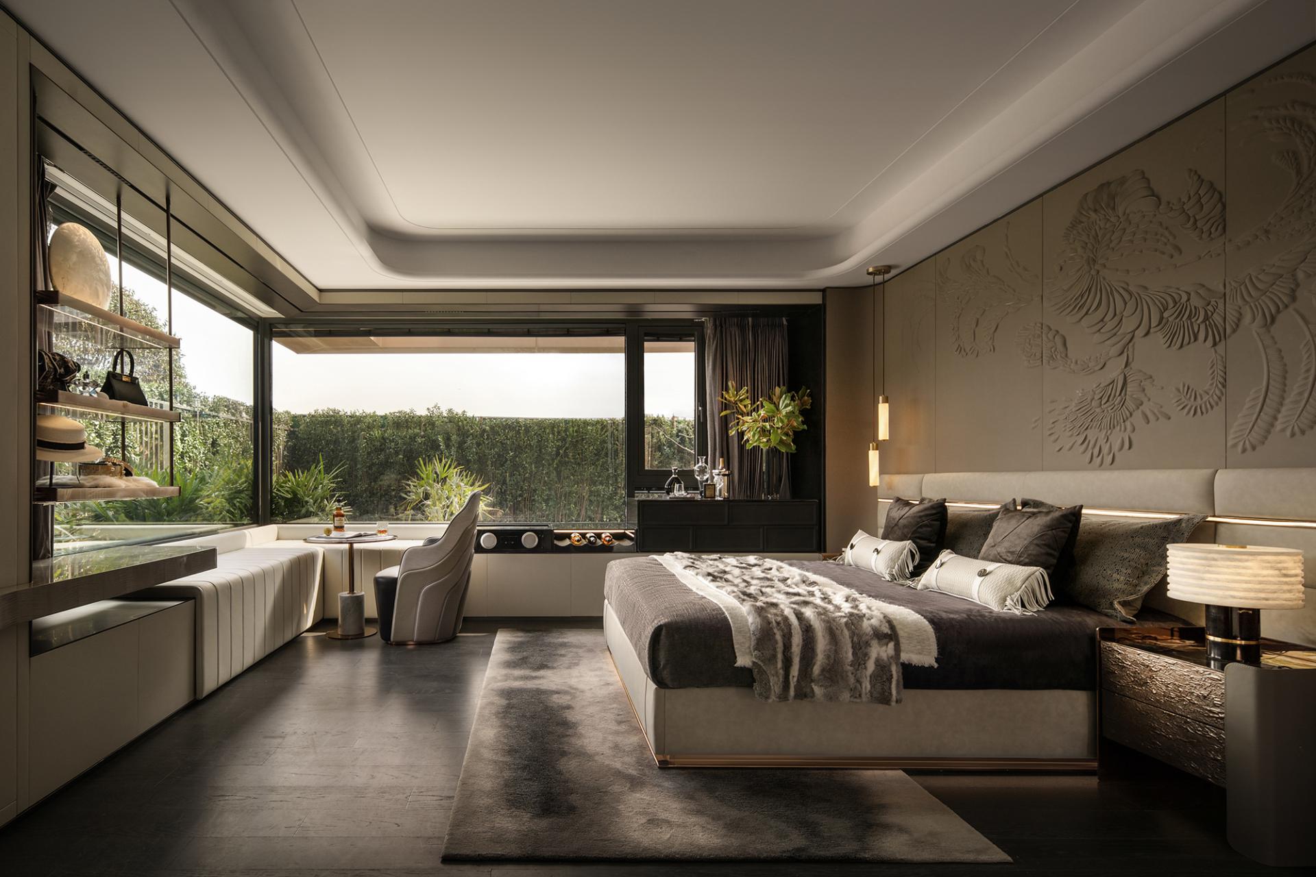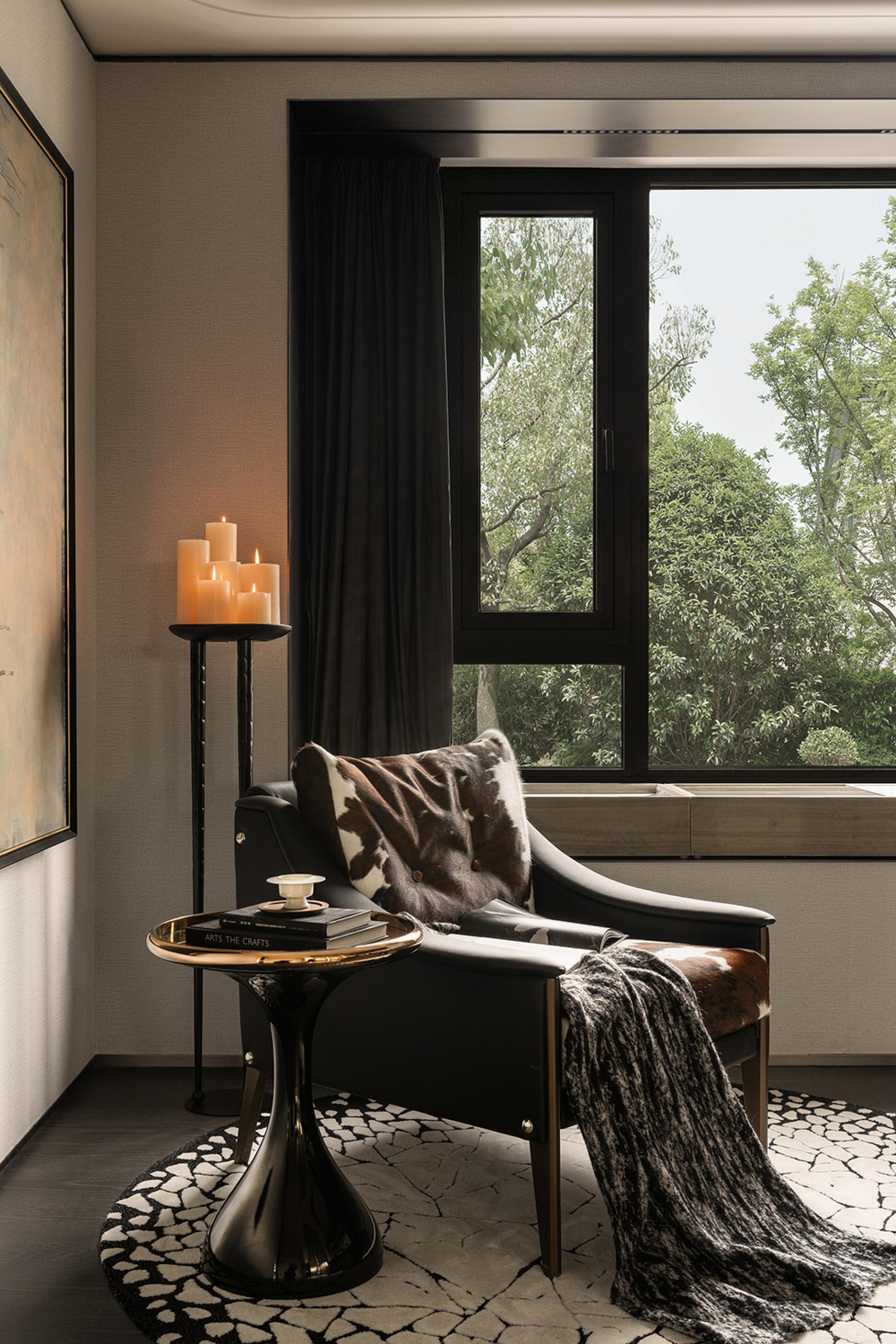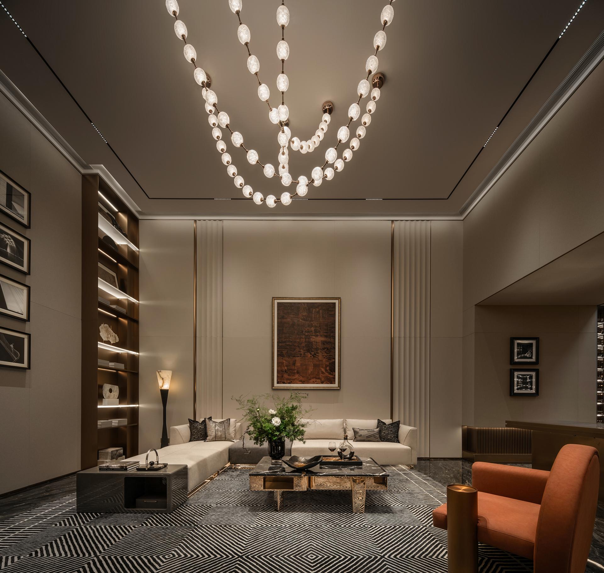 Abandon the redundant decorations, the use of clean lines and white to speak of the beauty of the modern Orient, emerald green embellished table ornaments. The study is used as a collection cabinet to hide the elegance of the ancient literati, and the silk paper-like texture is used as a background to set off the elegance. The bedroom's delicate relief lines carve out a flowery scene, blending traditional art with modern life. The wide corner window offers a panoramic view of the outdoor garden, which can be used as a reading area or a wine-tasting area to satisfy the different preferences of the family. Integrating living room, collection room, wine cellar and parking garage, the basement presents a multi-functional entertainment space. Lightly embellished with Chinese elements, the overall modern style is more inclined to the Western style, and the dynamic posture of curved corners connects with the pleasant and self-compatible state of life, and the red carpet sets off a white and elegant atmosphere. The garage is constructed with straight and rational lines to create a sense of futuristic space, and the mirror reflection brings a sense of avant-garde. The owner can either park his car or collect models for viewing at any time.