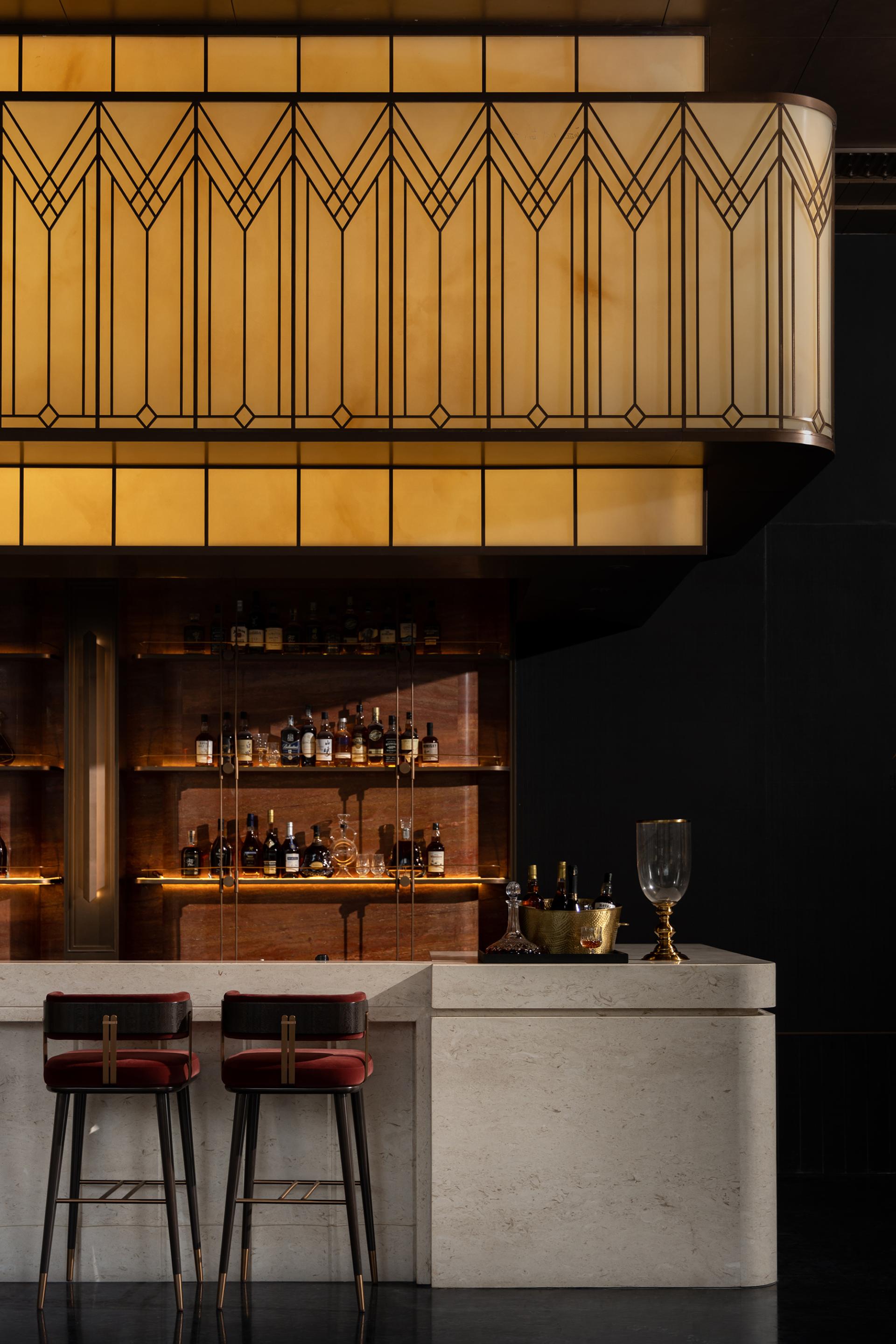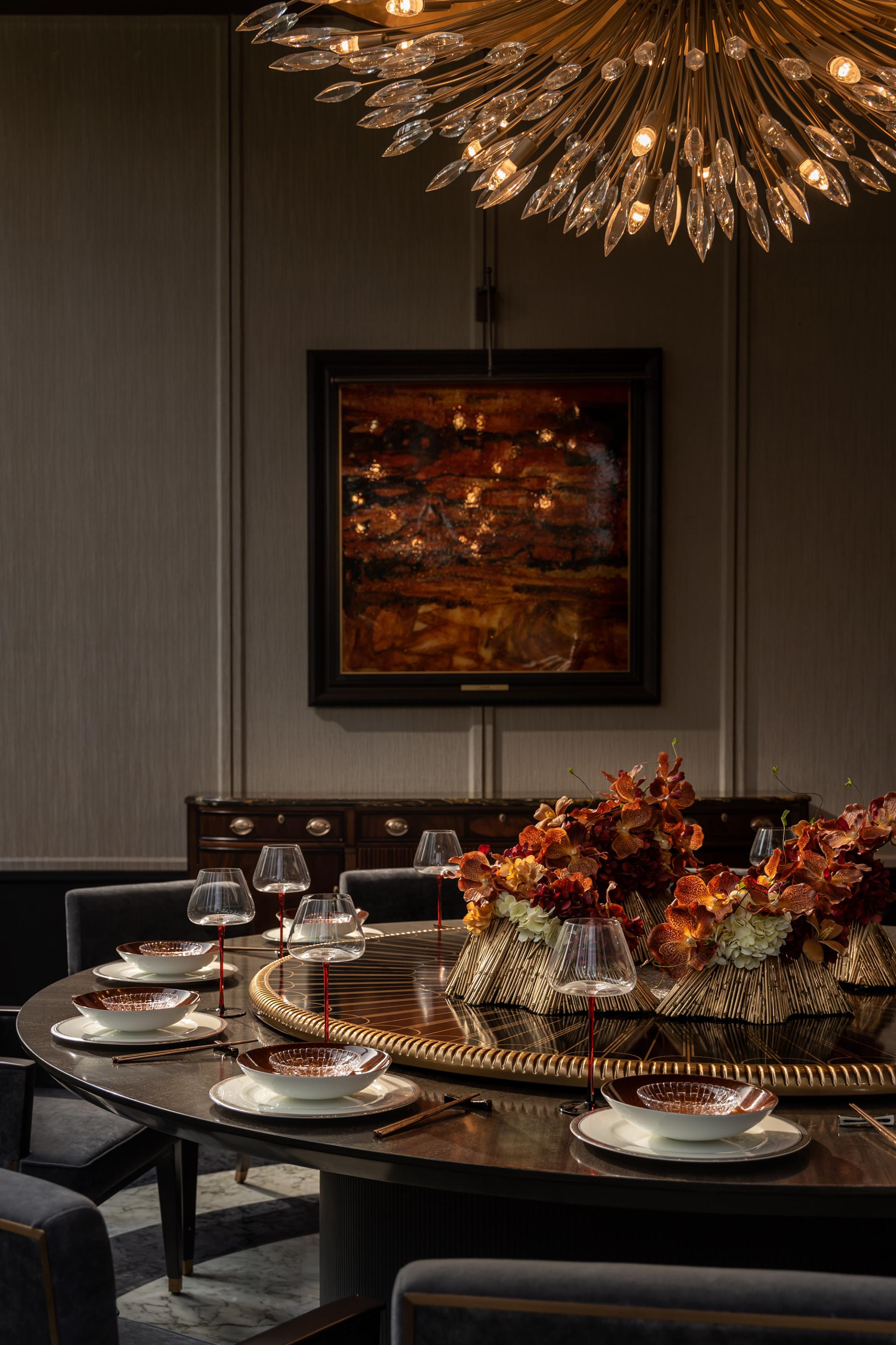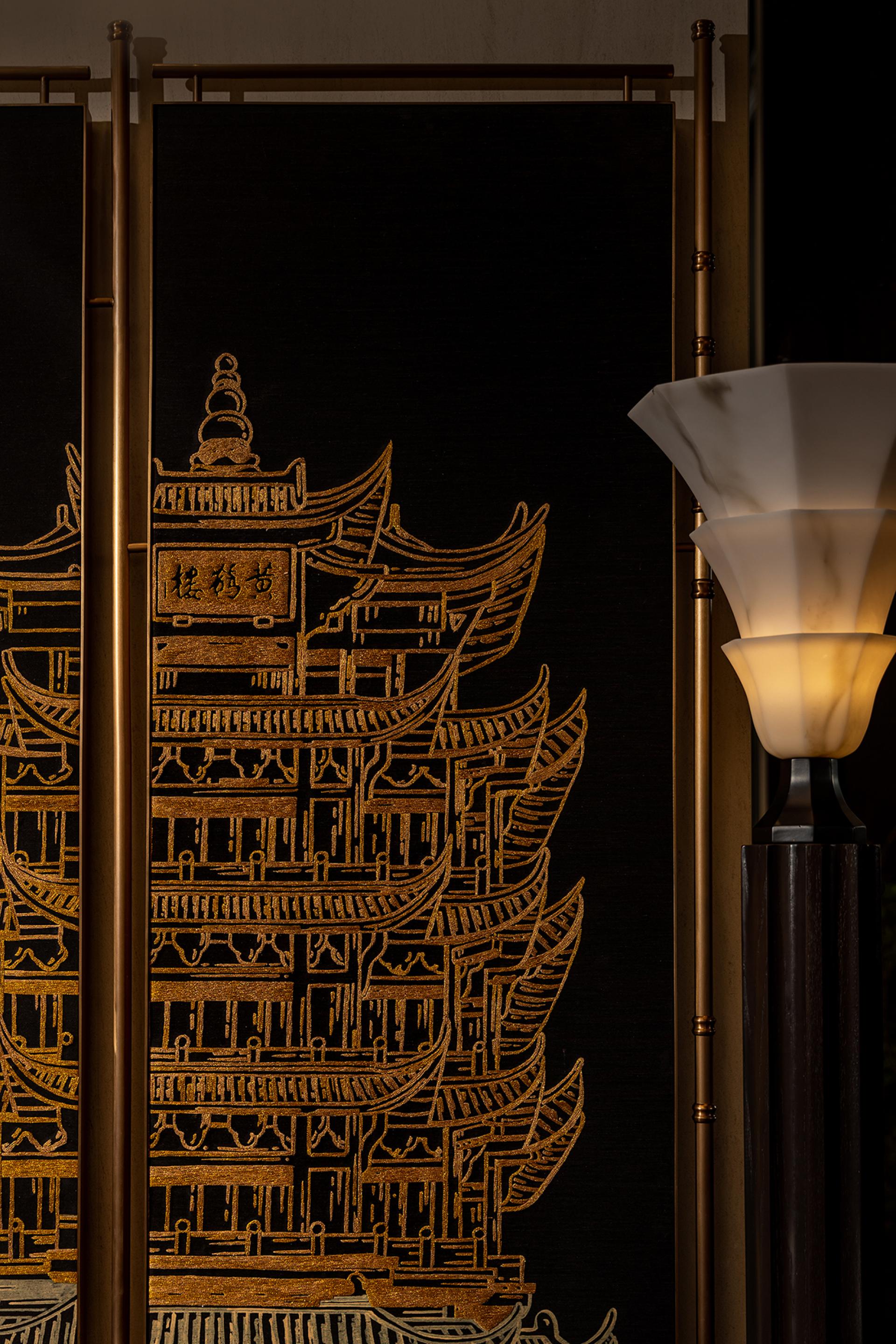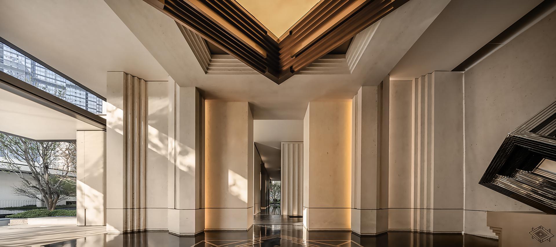 The answer to the question of how to build an independent, natural and quiet residence in a dense city is hidden in the cylindrical architecture. Incorporating the super symbol into the ceiling shape, which becomes the soul of the whole space, the designer senses the aesthetics of the lines, giving birth to a temple-like sanctity and luxury from the top to the bottom. Dark ink is the color that best reflects the texture of the space in the eyes of the designer. With the texture, the ink color has the ability to pull and bring the visual focus back to the art. Drawing on the lines of Manhattan mansions, ART DECO is carried through to the end in the executive lounge space - the iconic Deco line symbols are emblazoned on the light table. The all-glass curtain wall design makes the space more transparent and at the same time seems to allow nature to come into the space actively. The stark contrast between black and white cleverly delineates the functional boundaries of the space. In the dark-colored space, the beige wall divides just the right amount of private area and spatial distance, where different social styles can be comfortably enjoyed. The biggest point of difference from the conventional children's area design is the use of color. Instead of colorful and lively tones, the designers wanted to create a “magic library” for children inspired by Wuhan's historical heritage and modern charm. Symmetrical aesthetics are perfectly interpreted in the private banquet lounge.