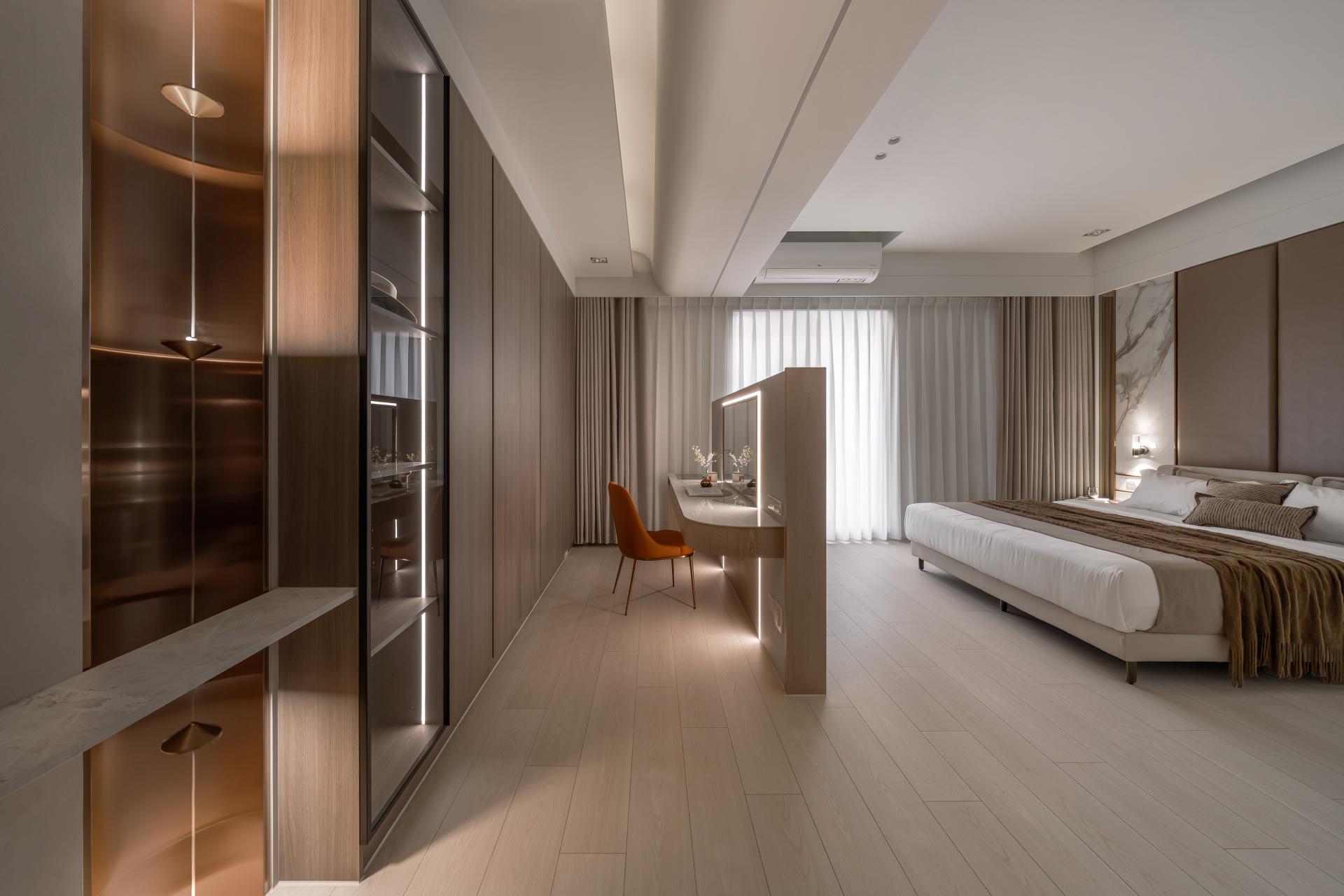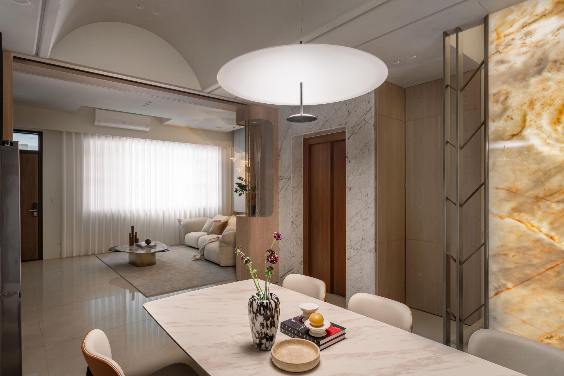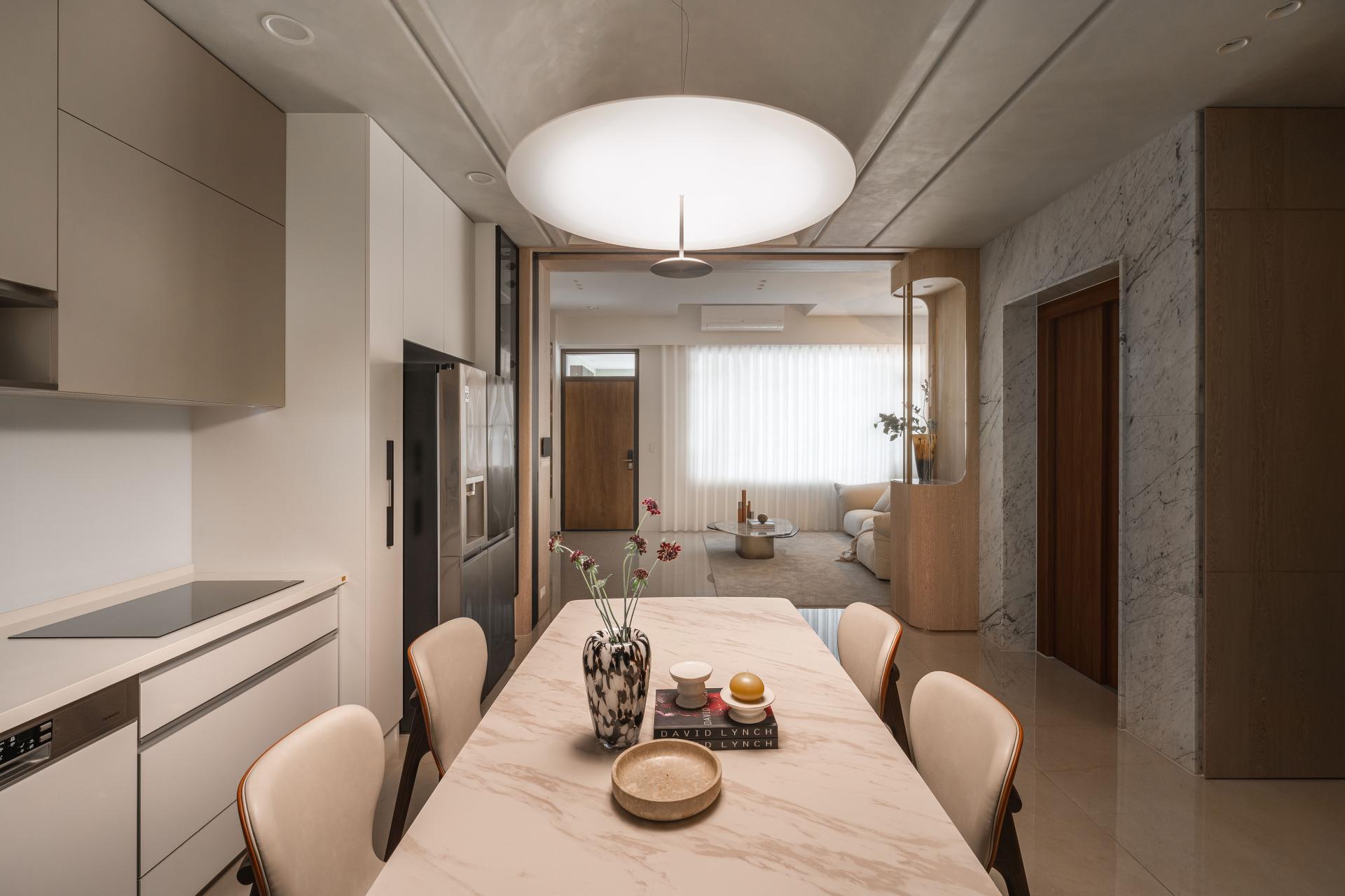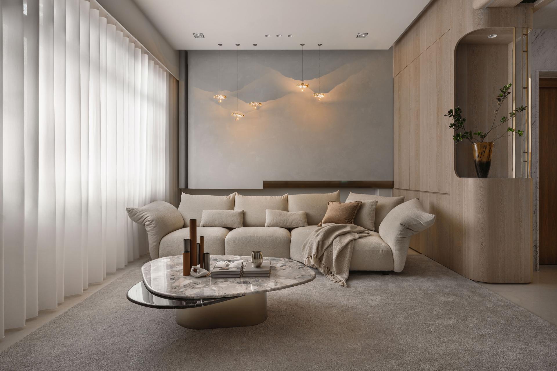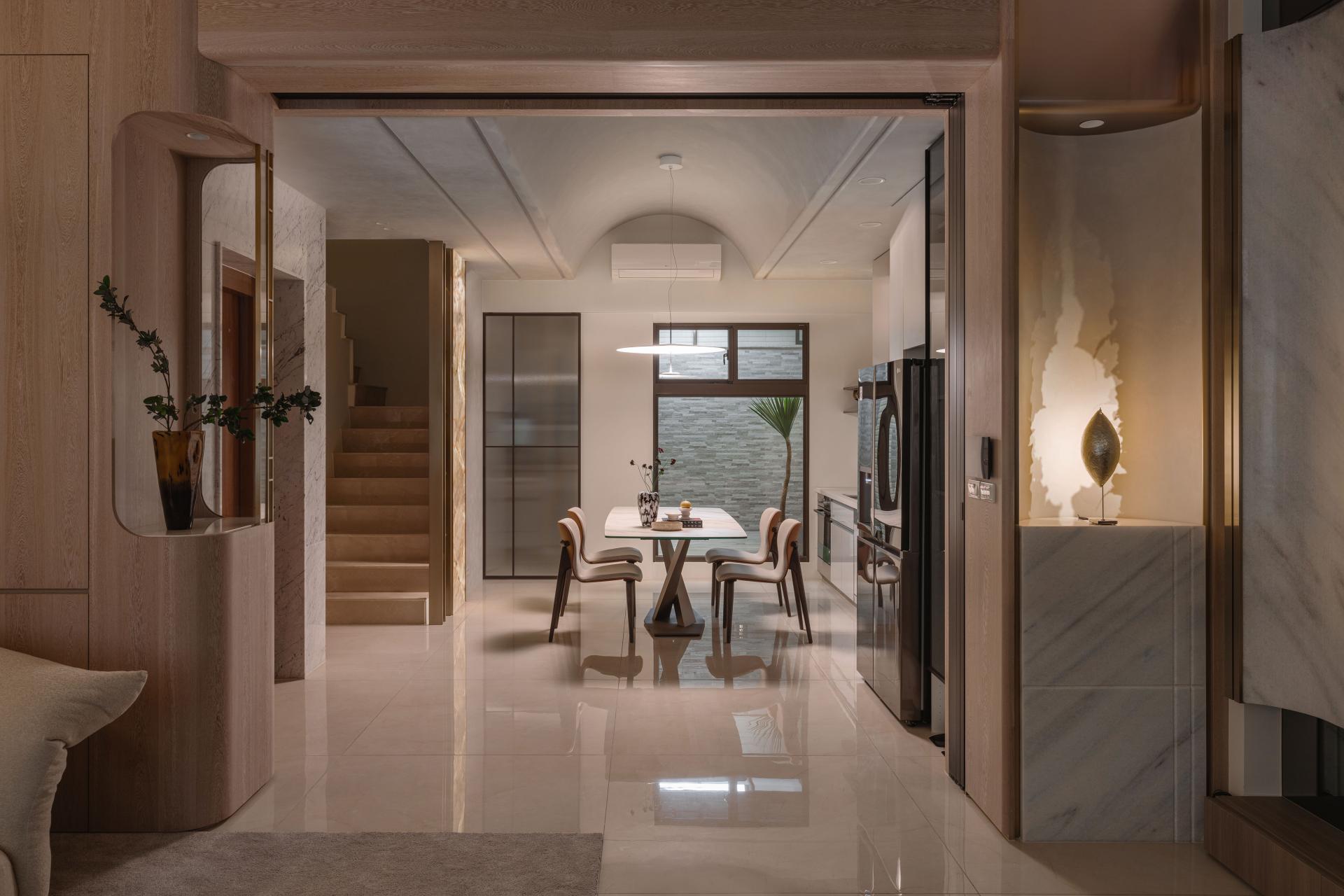 “Home is a personal retreat”—this idea lies at the heart of quiet luxury. Instead of showy extravagance, the design turns to subtle warmth and quiet sophistication, much like the arched ceiling that softens each corner with its gentle curve. Natural marble and wood veneer are selected for their honest texture and quiet grace, creating a calm and measured atmosphere where comfort takes place in everyday life. The layout draws on feng shui principles, weaving together culture, function, and aesthetics. The result is a space that nurtures harmony while answering the needs of grown children who seek connection and independence. By finding common ground between generations, the design centers on emotional resonance, balancing privacy and togetherness to shape a comfortable home and quietly unite those who live within. The homeowner started his factory from scratch. The heavy workload made him yearn for a home as a place to unwind, a personal retreat. In response, the design centers on a refined yet understated take on luxury, expressed through carefully chosen marble and natural wood veneer. These materials convey both warmth and elegance while maintaining a sense of restraint that reflects a harmony between beauty and sustainability. Curved lines flow throughout the space, a quiet metaphor for wholeness and acceptance. Indirect lighting brings depth and softness, casting a gentle glow that mirrors the family’s rhythm and emotional needs. From texture to vibe, the home becomes a truly cozy and peaceful place of belonging.