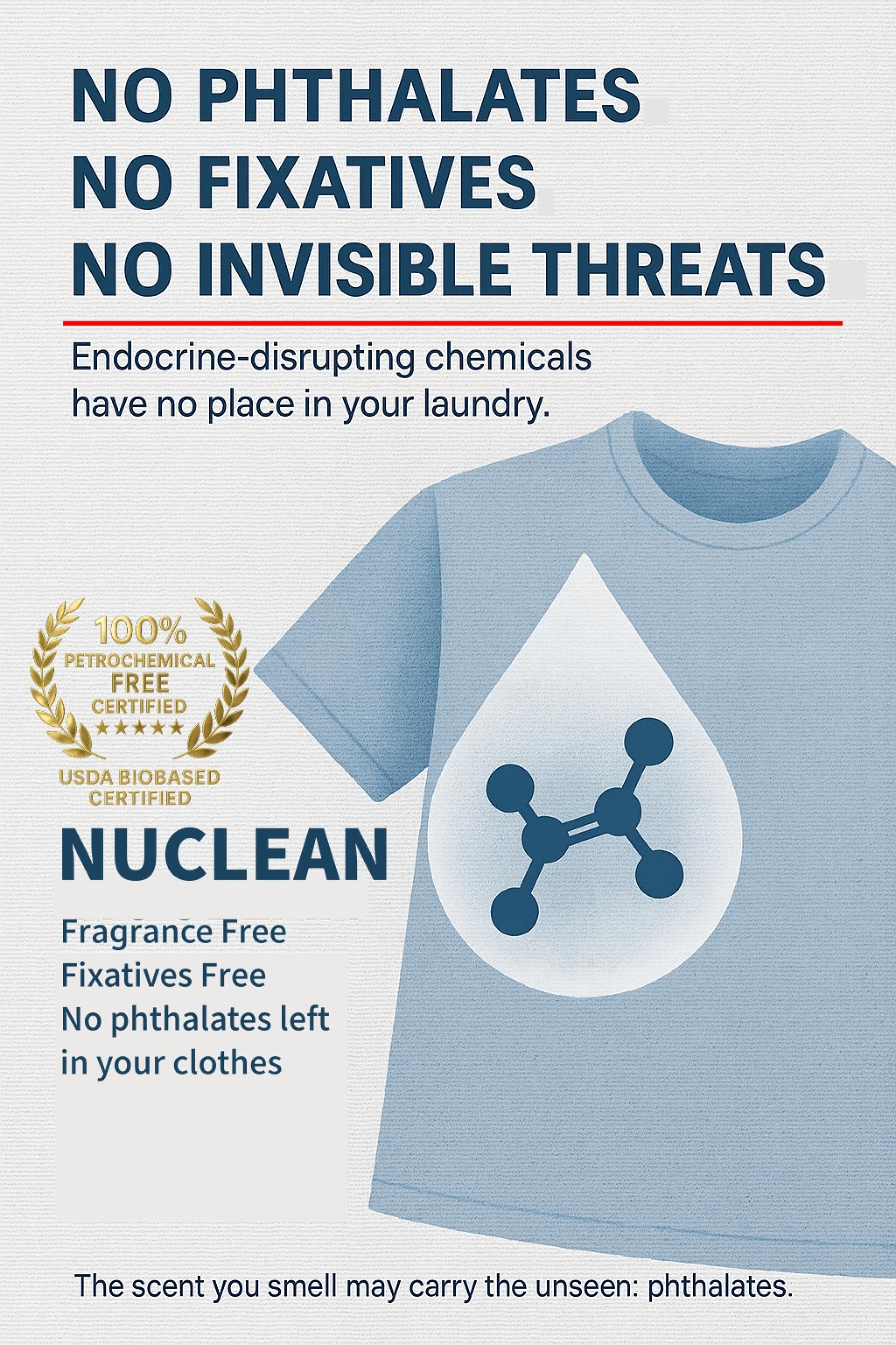 Laundry is one of the most frequent household activities and a top source of domestic wastewater. Conventional laundry detergents contribute invisible threats like synthetic fragrances, fixatives, and petrochemical residues. NUCLEAN replaces them with petrochemical-free, naturally derived ingredients—safe for people and the planet.