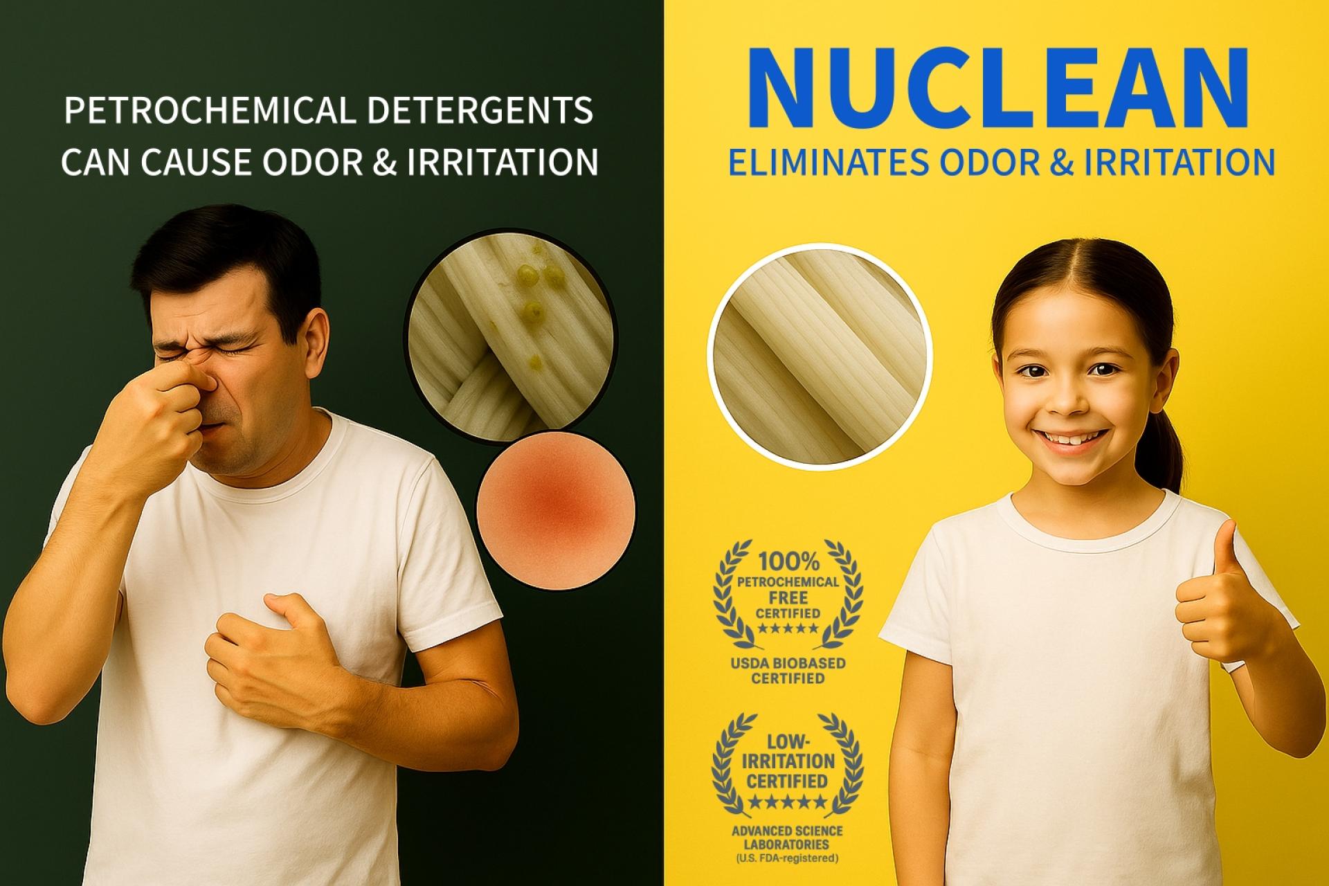 NUCLEAN transforms laundry into a mindful practice. Made with botanical and mineral ingredients, it’s gentle on skin yet powerful against dirt—no petrochemicals, no allergens, USDA Biobased certified, and tested by ADVANCED SCIENCE LABORATORIES, INC. (U.S. FDA-registered) with zero sensitivity outcomes.