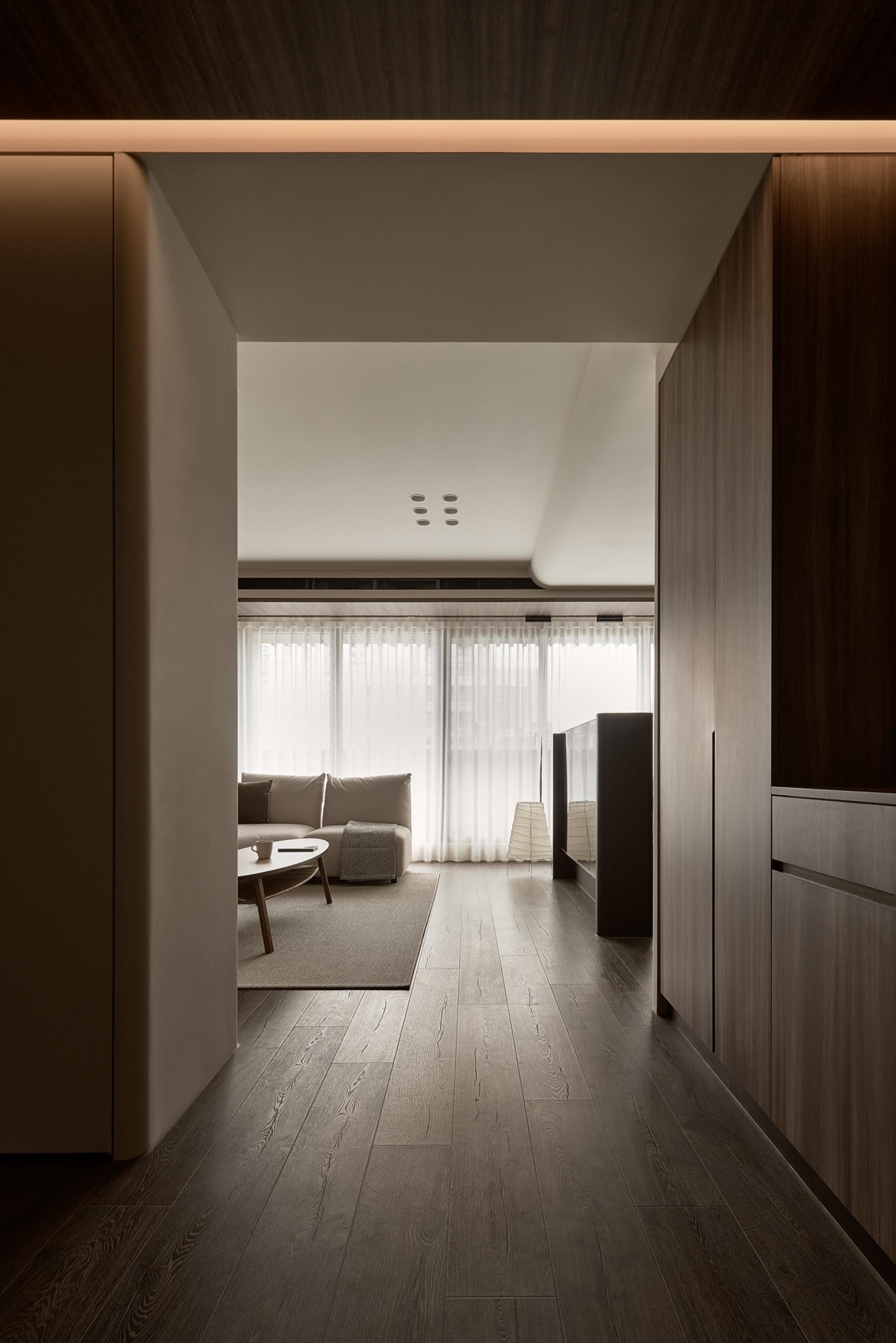 While embracing an open layout, the design utilizes furniture placement and linear boundaries to clearly define each zone. This strategy enhances the overall sense of spaciousness while allowing every corner of the home to maintain space for dialogue and flow. Through an open yet private spatial definition, the design establishes a rhythm of life that feels both free and grounded. The tactile quality of natural materials and the warmth of natural lighting are introduced into the rational framework, achieving a balance between logic and emotion, which reflects the houseowner’s vision. This space also preserves just the right amount of openness and rooms for imagination in everyday life yet to come.