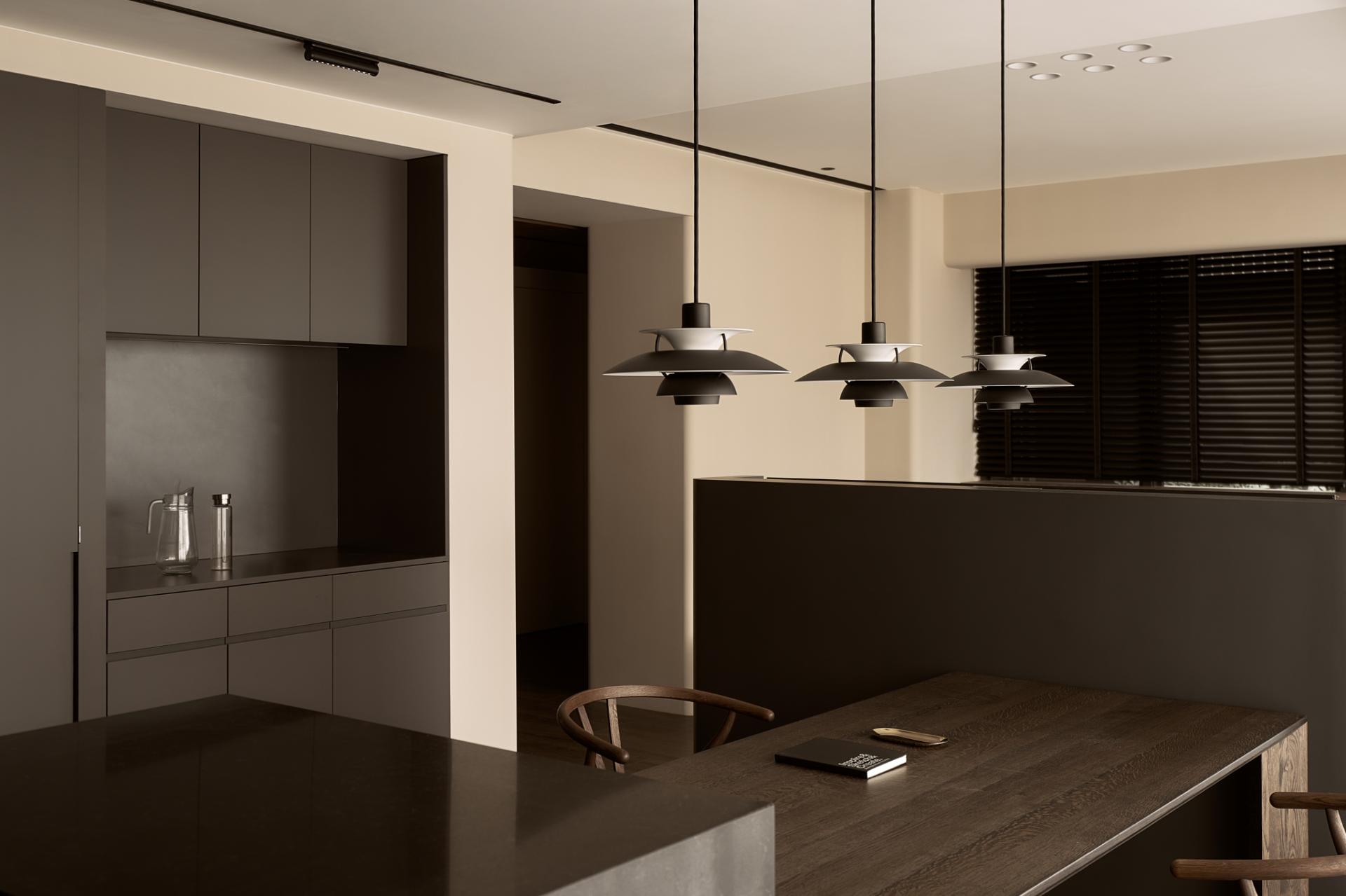 To meet the houseowner’s expectations for order and clarity, the design adopts a systematic storage as a framework, shaping the overall layout and circulation. Each area is distinct but connected, maintaining visual consistency and functional efficiency. Through concealed storage and integrated features, everyday objects are subtly embedded into the space, expressing a minimalist yet rhythmic aesthetics of order — allowing the space to unfold with the flow of daily life.