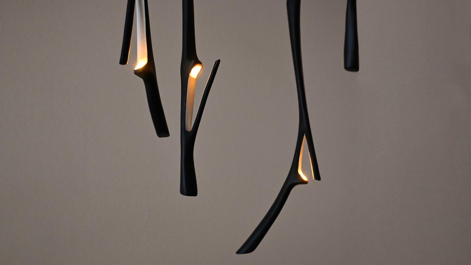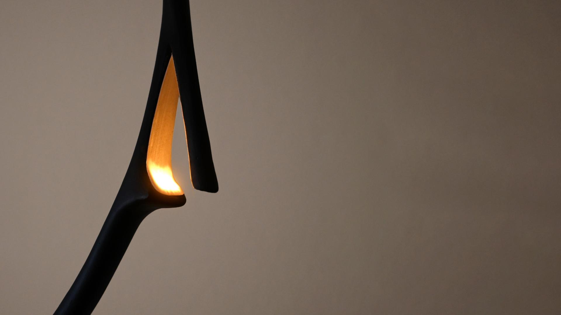 This pendant light embodies the idea of growing from where it breaks, inspired by the Eaton Fire that struck California this January. While walking through Altadena—a community deeply affected by the fire—I came across a broken branch. I placed a light where it had split, allowing warmth to shine through the damage. The piece balances wood-like texture with organic movement, evoking a quiet sense of calm, safety, and resilience.