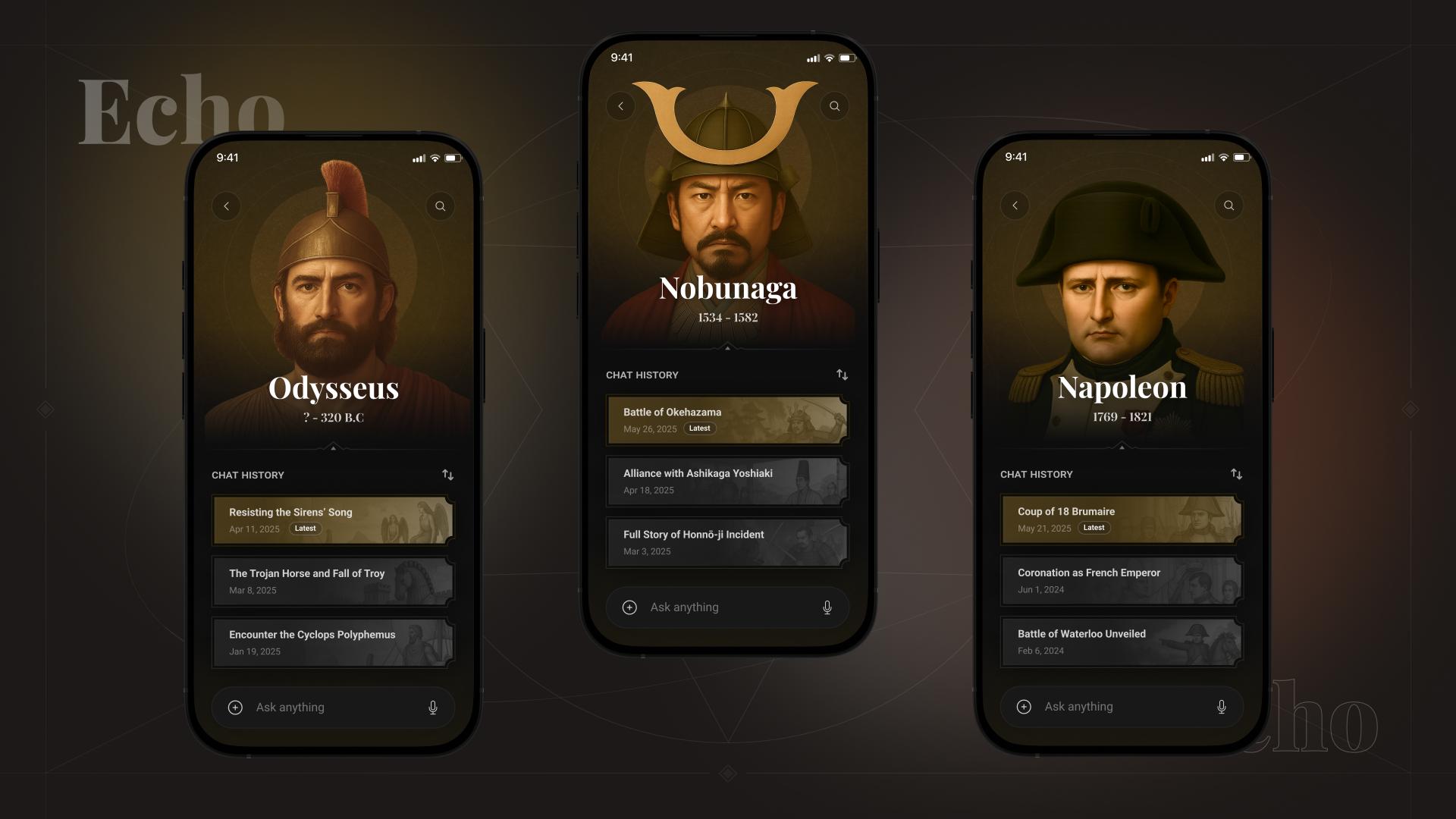 Imagine you’ve just learned about a historical figure, but there are still questions that remain unquenched in your mind. Wouldn’t it be magical to have a conversation with that figure directly and get your curiosities satisfied? The Echo module is designed to do exactly that. It brings users “back in time” to chat with AI-powered historical figures. Communication is supported through various modalities—text, voice messages, and image attachments. Each figure offers deep expertise and shares insights through a blend of text and visuals, helping users clarify complex concepts or explore extended questions. In this way, learning history becomes a continuous loop of curiosity, mastery, and creative engagement.