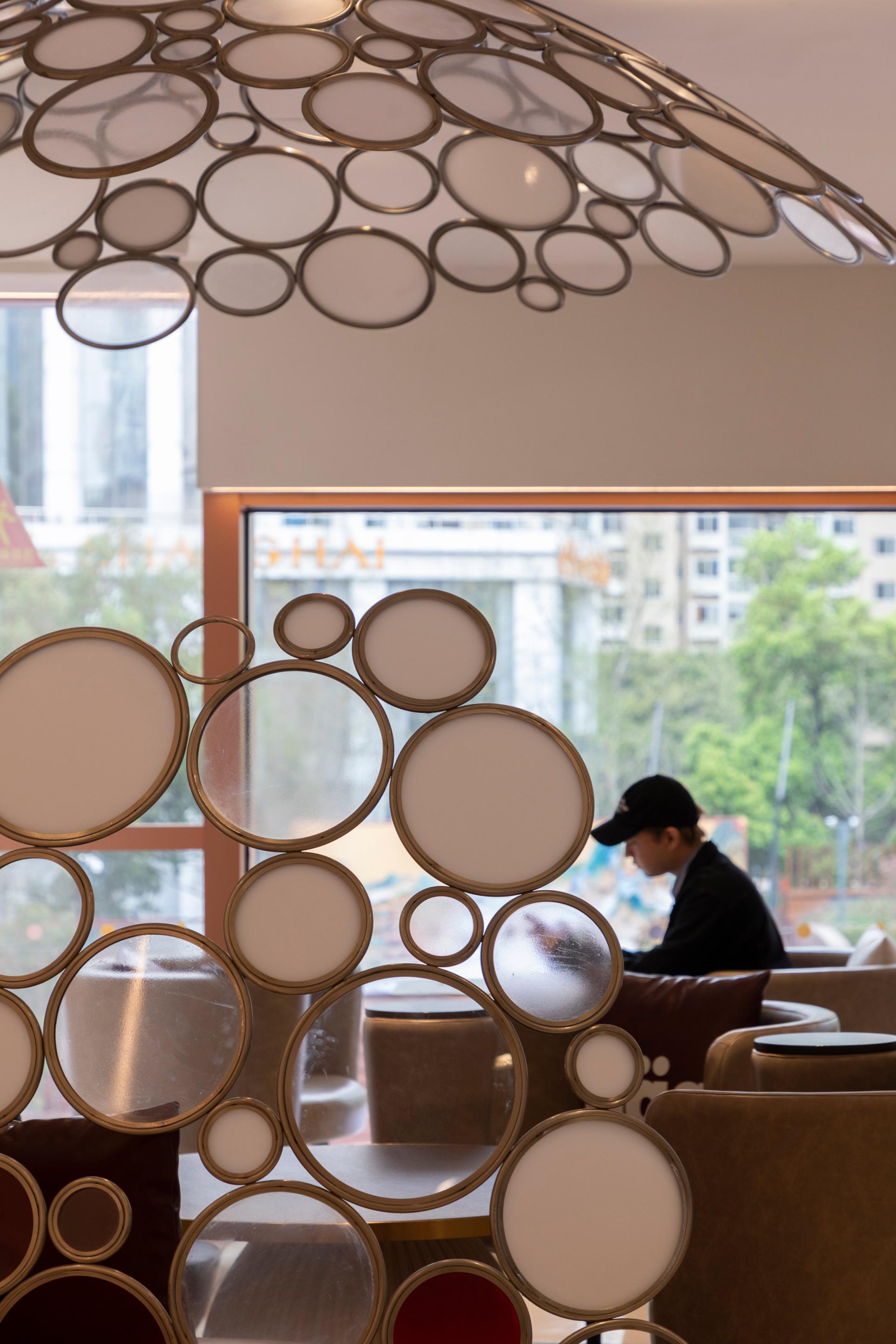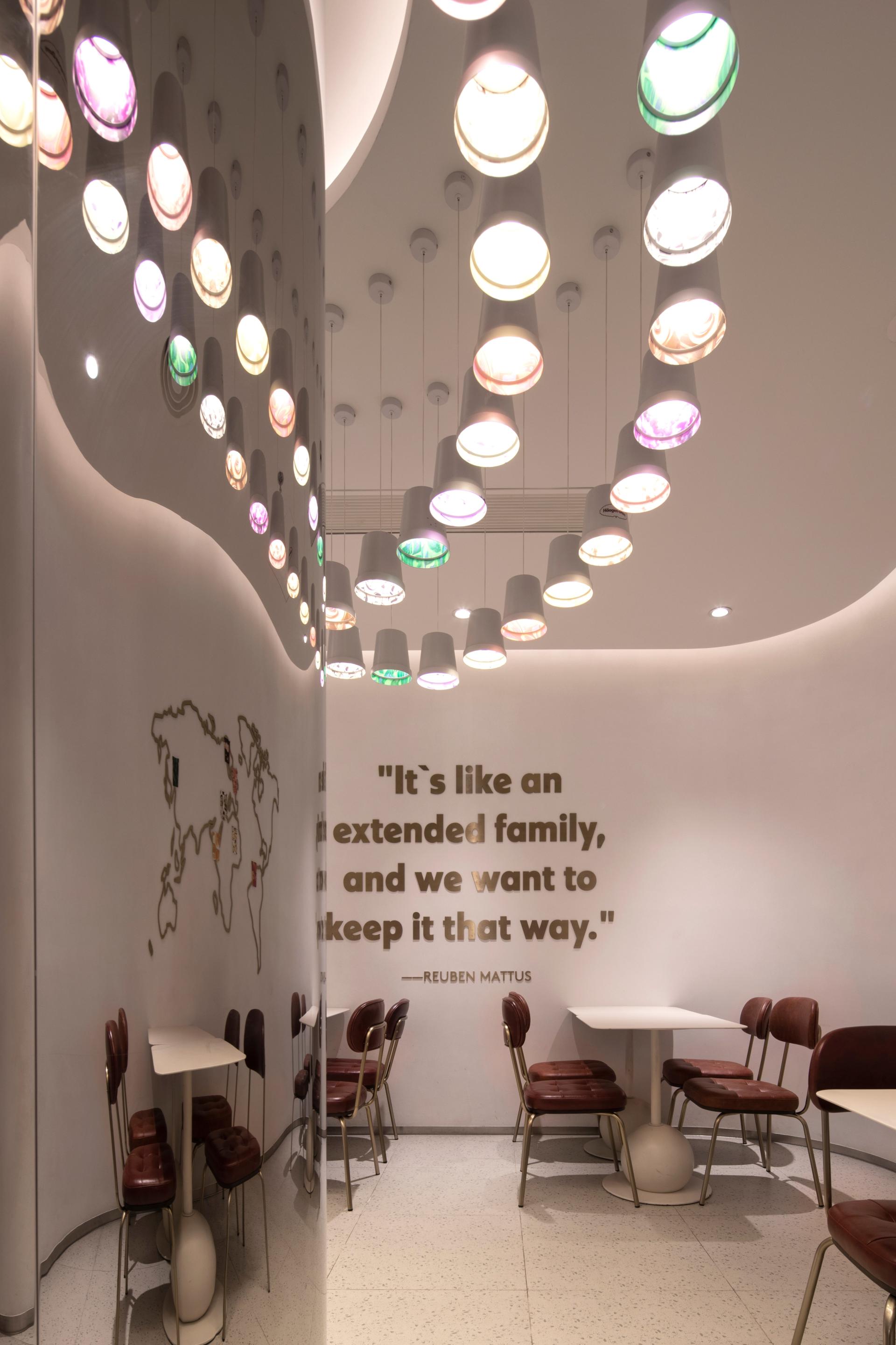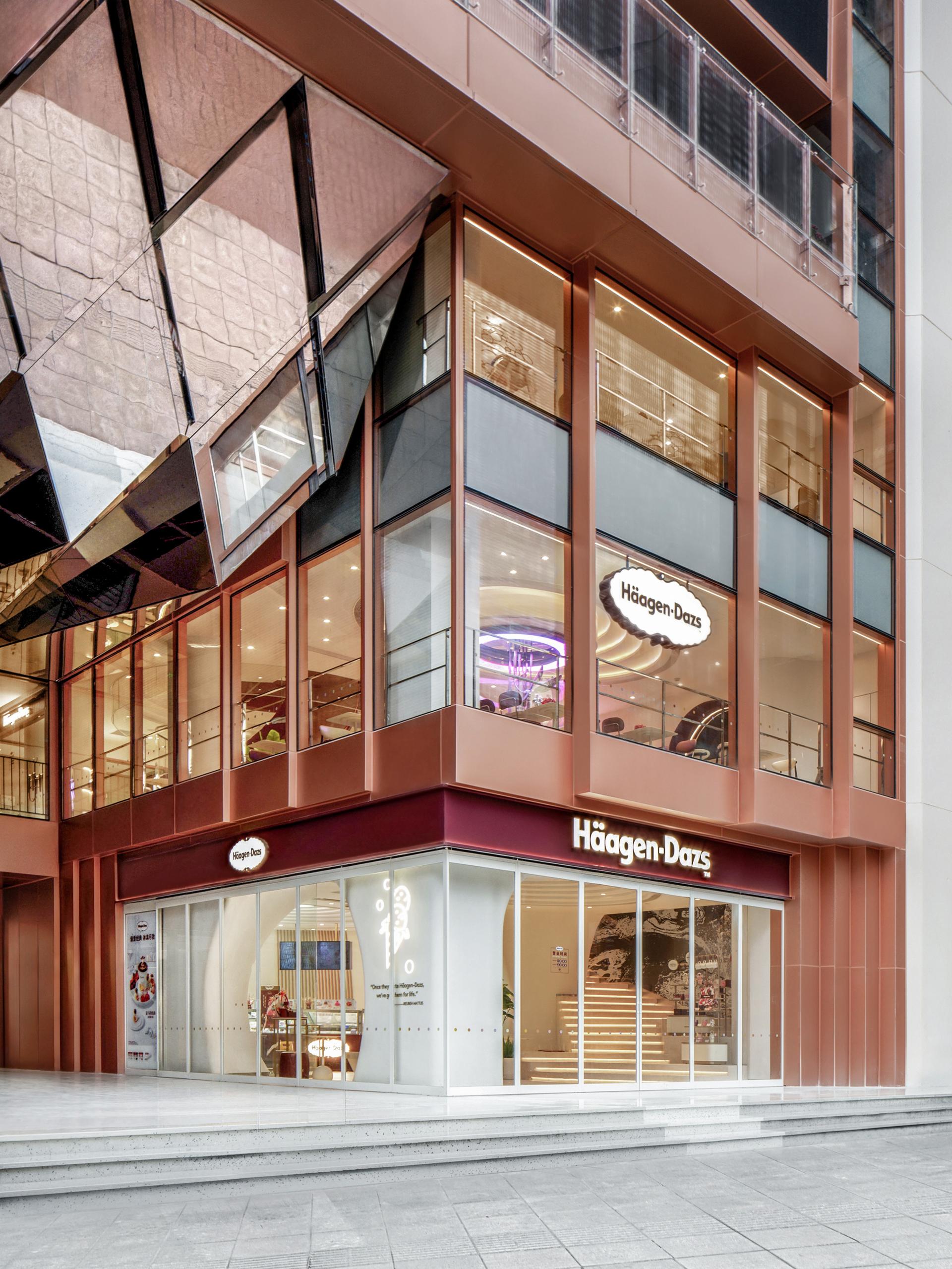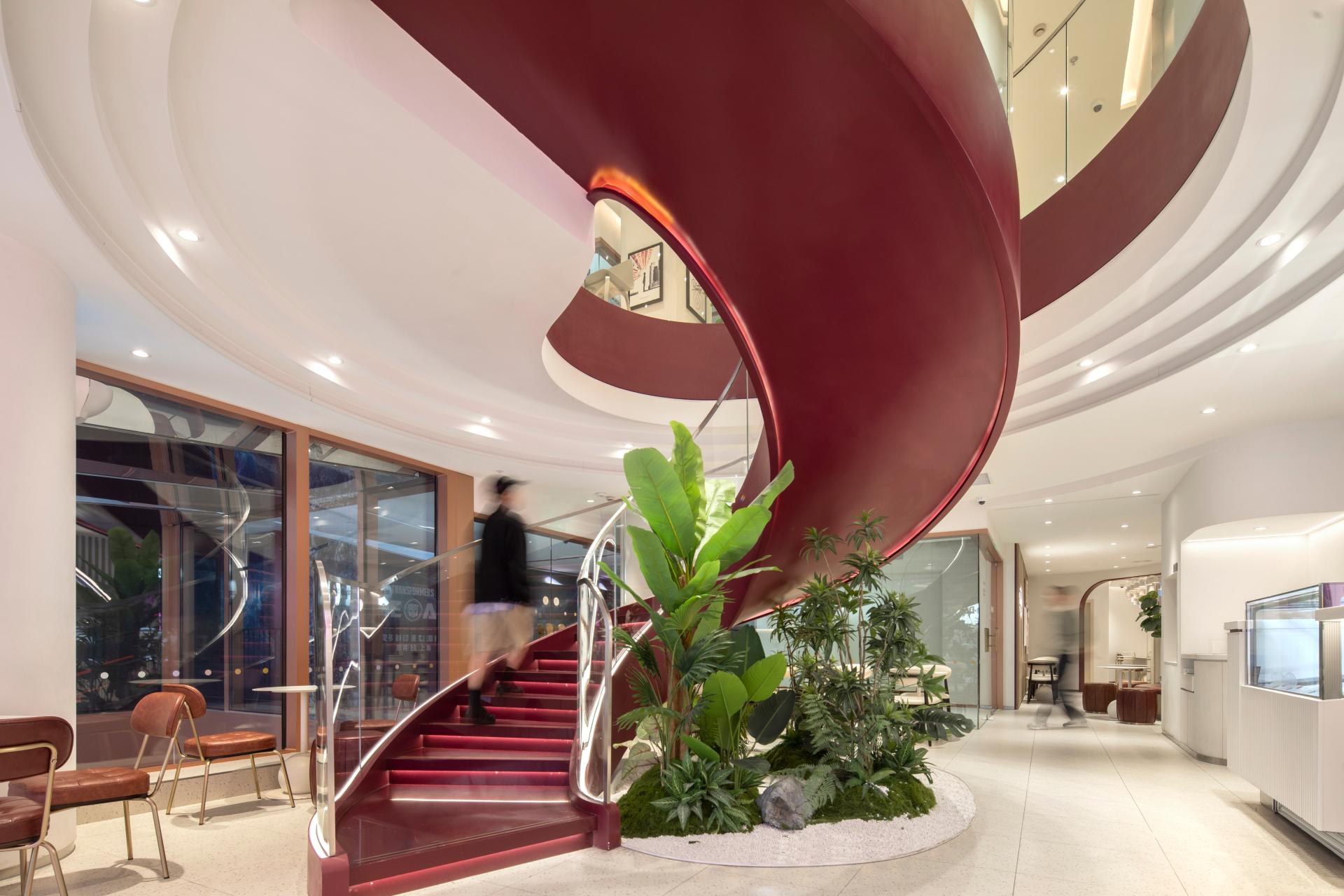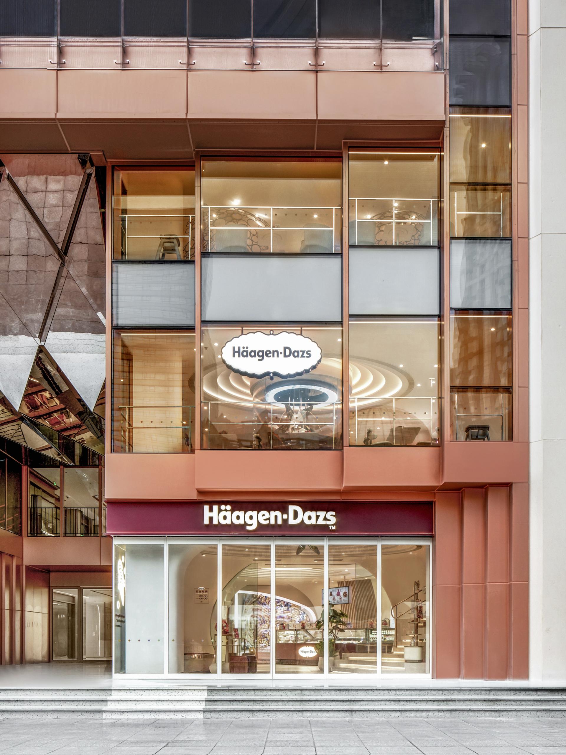 What we present is not merely an ice cream shop, but a three-story sanctuary of taste and sight, designed for exploration. Situated on the bustling Nanjing Road Pedestrian Street, the Häagen-Dazs flagship store draws its core inspiration from "the first scoop of ice cream," transforming that initial moment of sweet anticipation into a complete and fluid spatial narrative. The design eschews traditional retail layouts, employing sculptural curves, immersive light and shadow, and multi-sensory interactive experiences to guide customers from the city's clamor into a fantastical world built of vanilla and craftsmanship. It is a sensory pilgrimage that journeys from the palate to the soul. The walls and ceilings are coated in a warm, vanilla-colored textured paint, resembling a three-story block of ice cream meticulously carved by a giant scoop. Ubiquitous, elegant curves mimic the smooth tracks left by a scoop, creating a strong sense of visual envelopment, as if embracing customers within a vast, sweet ice cavern and awakening their taste memories from the very first step inside. A Curated Vertical Journey The project's greatest challenge lay in vertically connecting the three floors and endowing each with a unique appeal, all within the structural limitation of having no elevator. We transformed this challenge into a highlight through a series of meticulously planned designs, creating a progressive journey of discovery, level by level. The Gravitational Core — The "Vanilla Blossom" Interactive Installation: To break down the barriers between floors, we boldly opened up the floor slab between the first and second levels to install a two-story "Vanilla Blossom" art installation. This dynamic installation is not only a visual focal point, attracting the curiosity of first-floor customers and guiding them upstairs; it is also a three-dimensional embodiment of Häagen-Dazs' classic flavor, presenting the brand's core values in a poetic and striking manner and offering a dual feast for both the eyes and the palate.