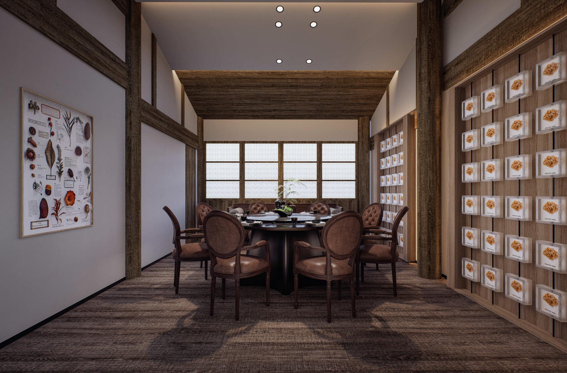 Design interventions weave TCM culture into every layer of experience. The east wing becomes a transparent herbal R&D studio—where visitors can observe ancient decoction rituals alongside contemporary extraction technologies. The west wing evolves into a sensory kitchen-lab, where traditional Ba Xian tables meet modern prep counters, and hanging herb racks evoke apothecaries of the past.