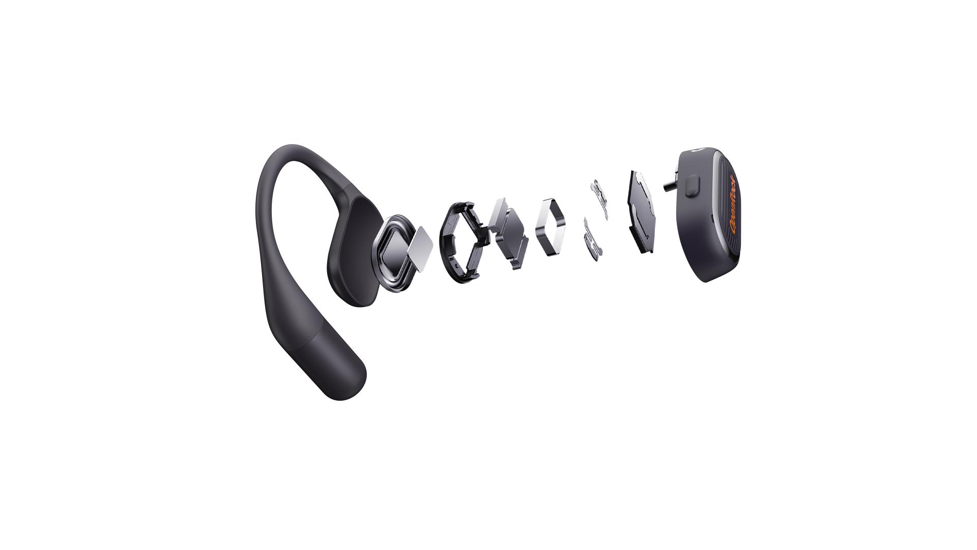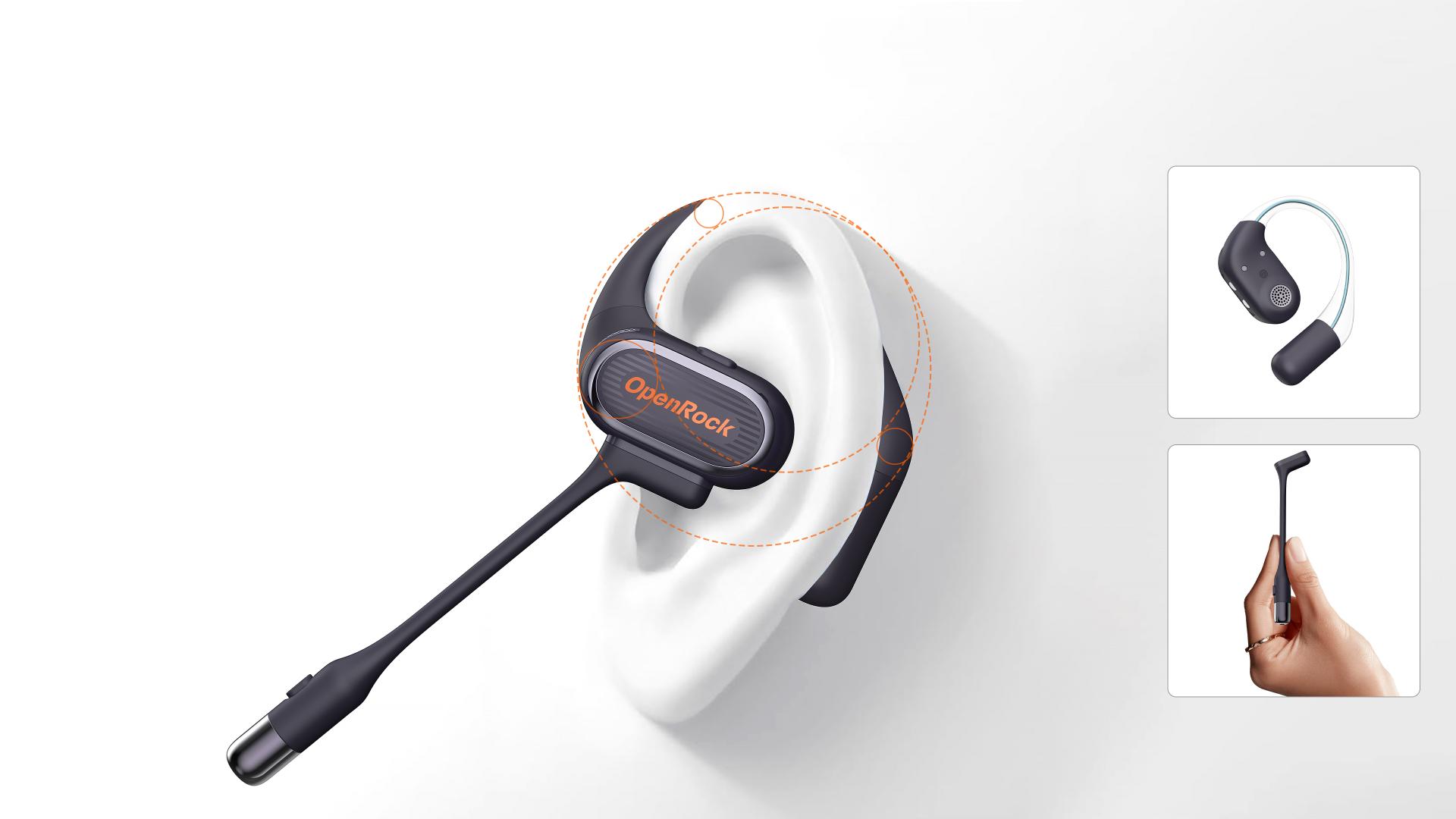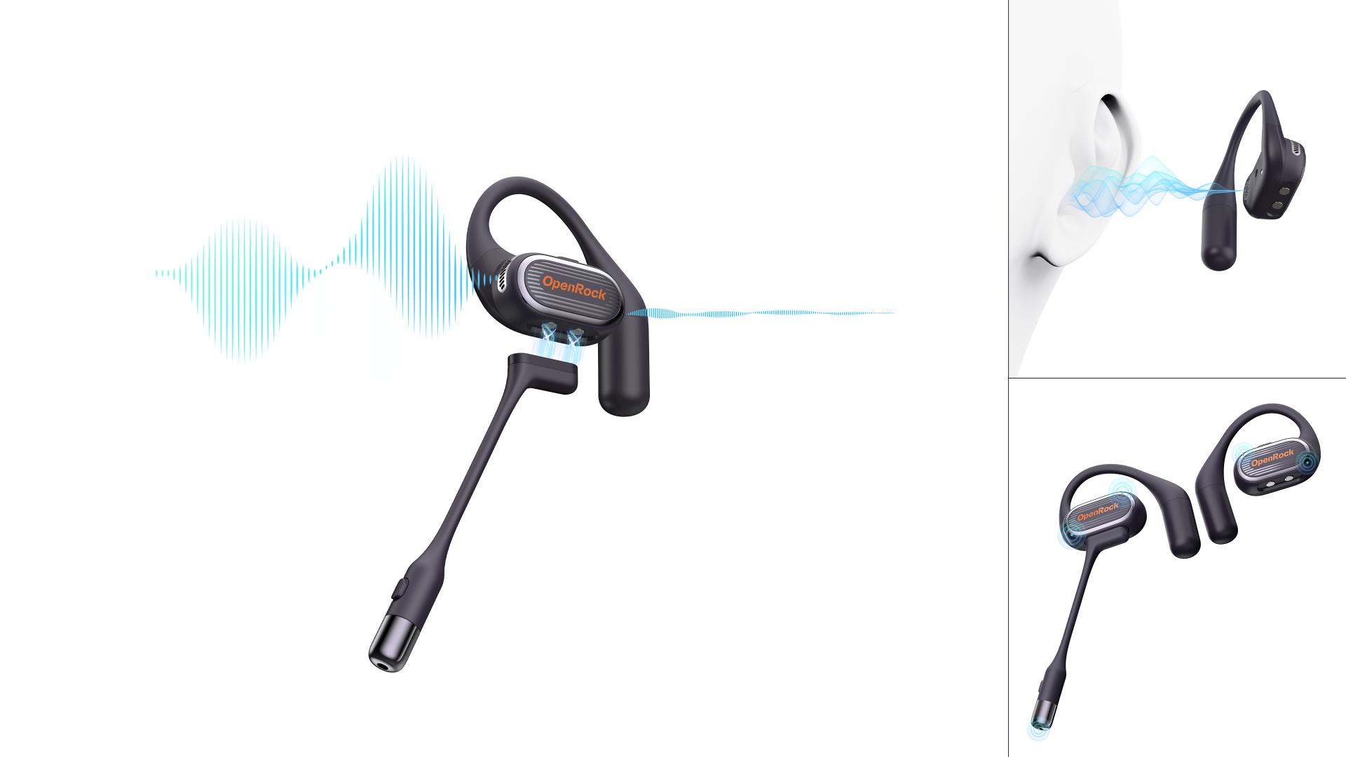 The OpenRock Link 20 pioneer a modular magnetic microphone design, perfectly tailored for business professionals and mobile office users, enabling seamless switch between work and entertainment scenarios. Equipped with five-mic AI noise cancellation and a wind-resistant structure, they ensure clear and smooth voice communication. The BassDirect™ low-frequency energy chamber and LISO 2.0 dynamic audio algorithm deliver an immersive sound experience. The ultra-lightweight construction and ergonomic ear-hook design provide all-day comfort, while the 40-hour ultra-long battery life meets the demands of efficient work and daily life in multiple scenarios.