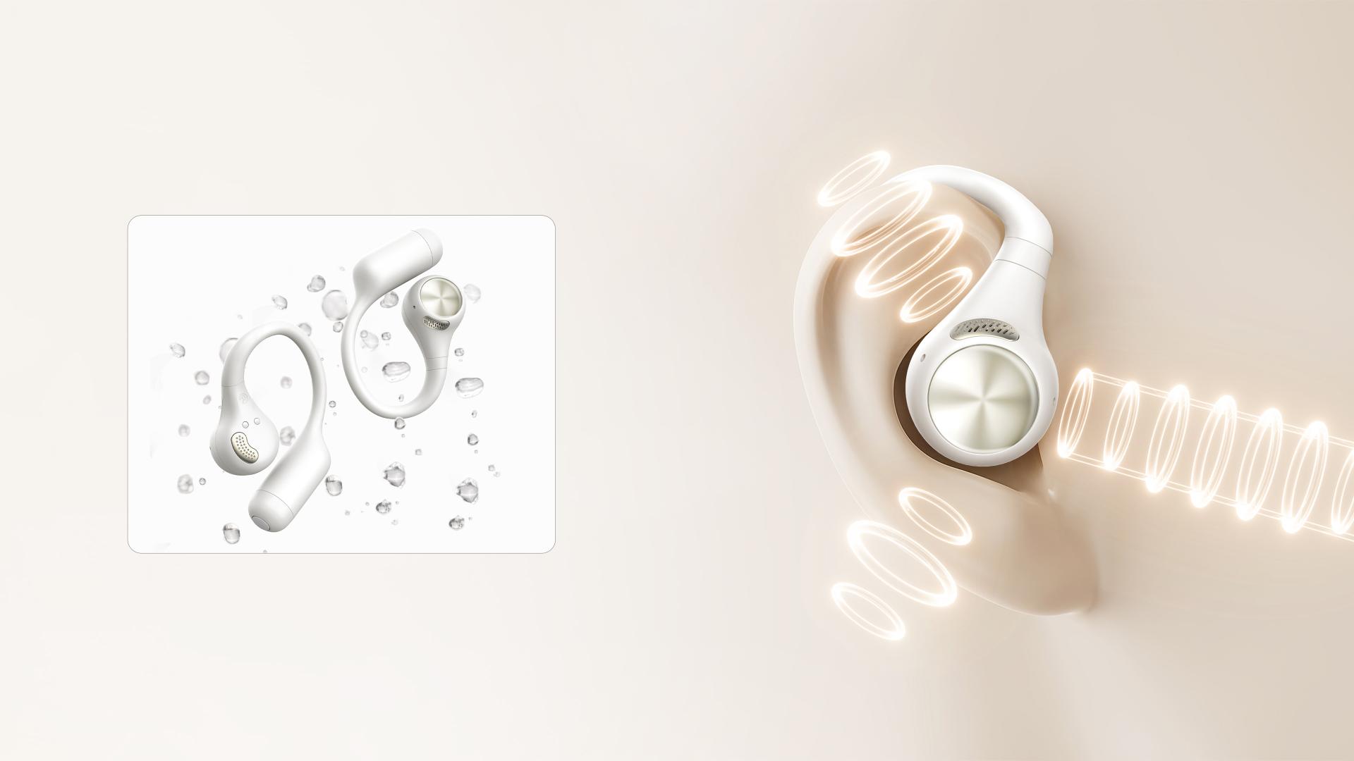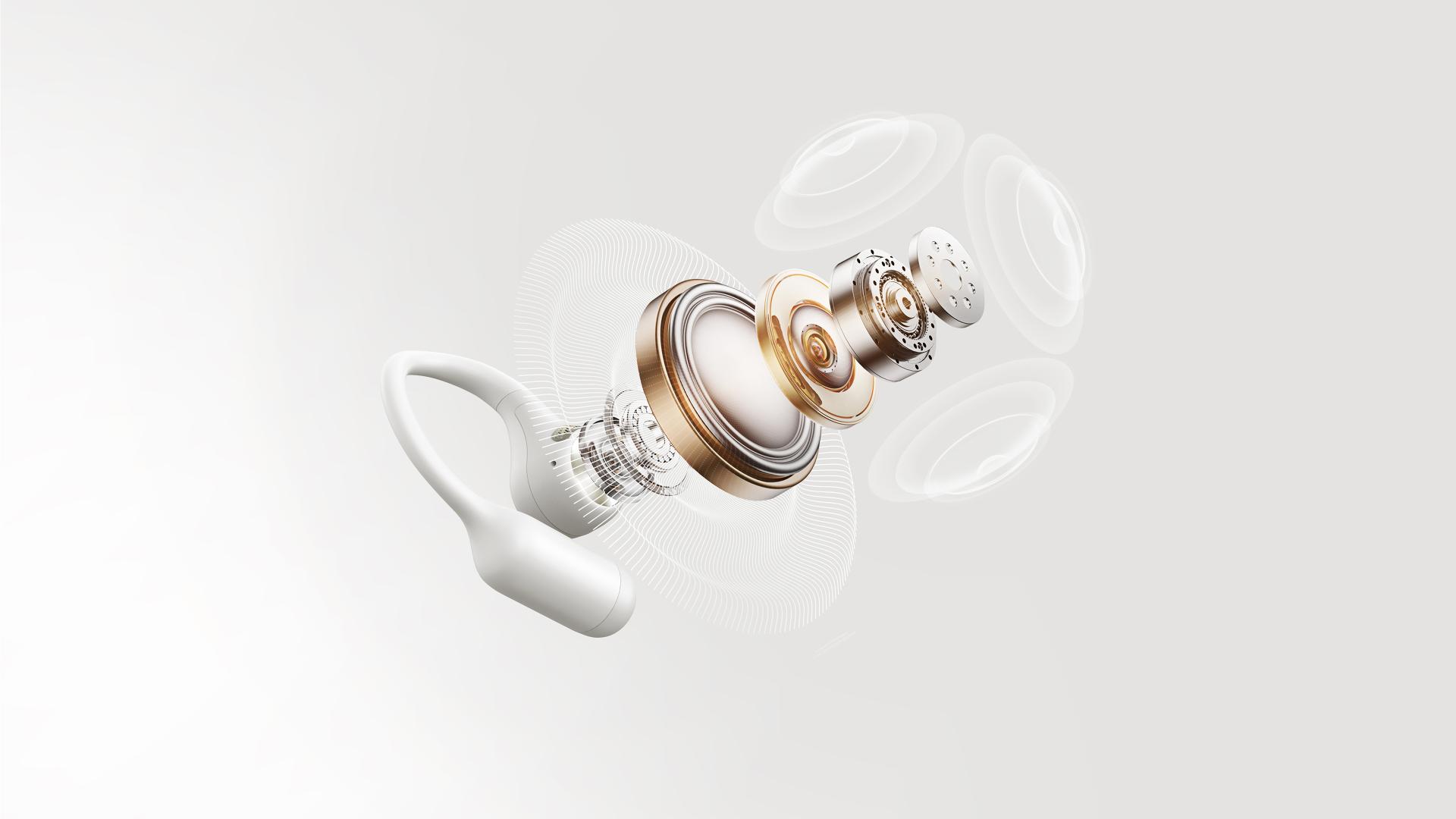 The Open-ear Air Cinduction Sport Earbuds are designed to be a lightweight and eco-friendly open-ear wireless headset. The charging case is made of PCR recycled plastic to reduce plastic pollution. With an ultra-compact stacked design, the earbuds weigh less than 7g, delivering an almost imperceptible wearing experience. Equipped with quad-mic AI noise cancellation and a wind-resistant structure, they ensure clearer calls. The innovative BassDirect™ bass-enhancing chamber, certified with Hi-Res Wireless, provides high-quality audio. Smart APP controls, remote photography, and triple sweat-resistant design meet the needs of diverse usage scenarios.