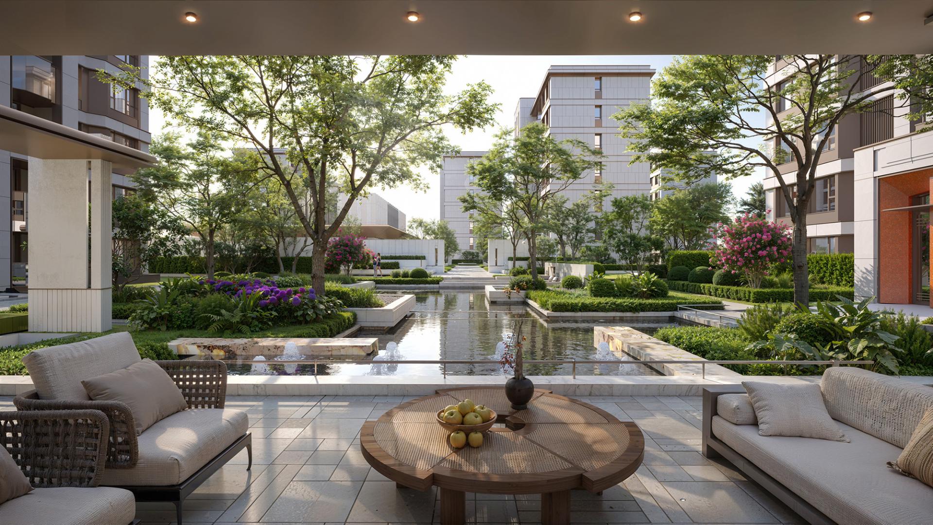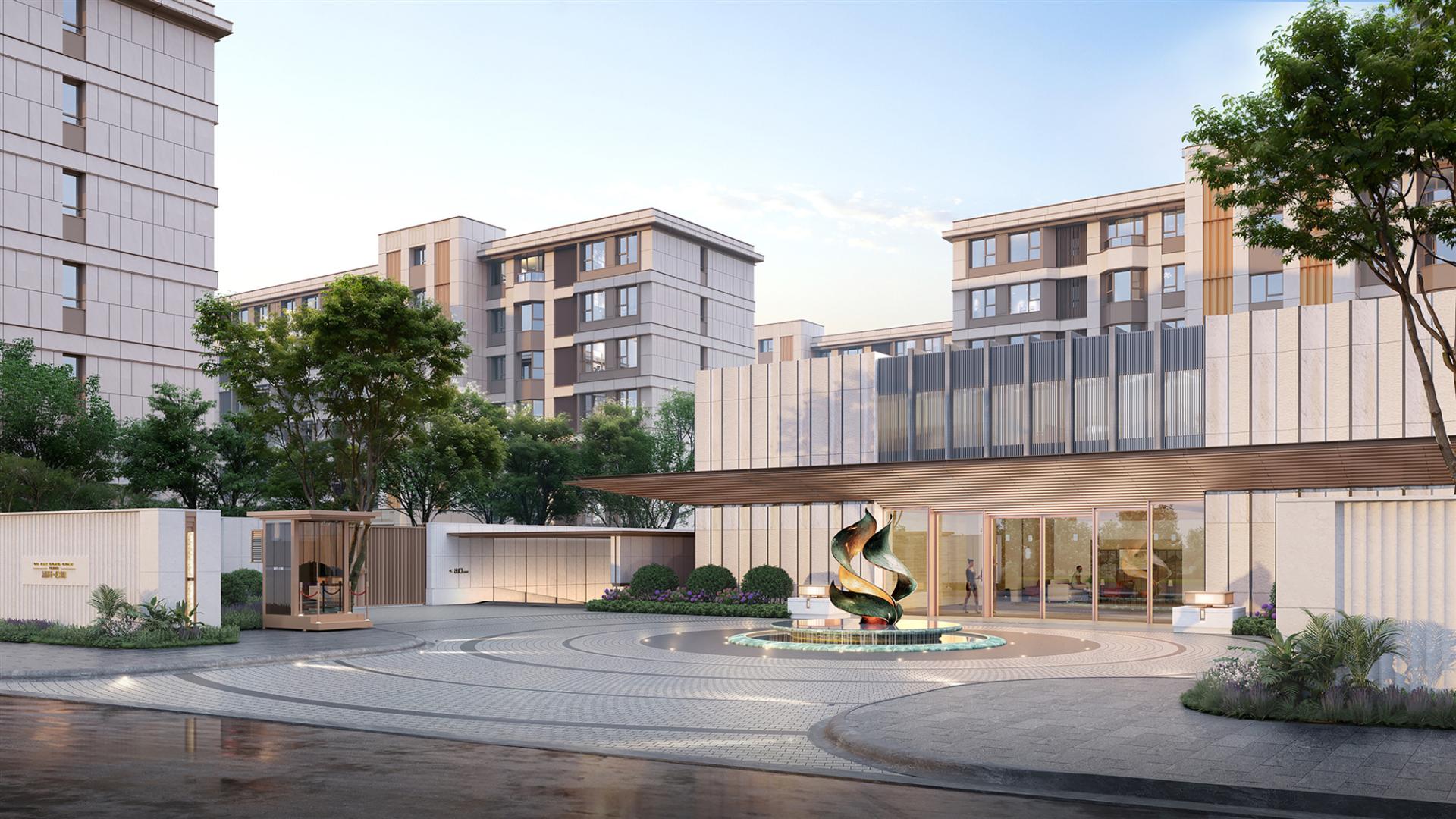 The two entrances to the base, integrating the scenic resources of the northern park and the western river channel, form an open urban space and an eco-livable community image, with one entrance to the south and the other to the north. Adopting a spatial layout of "one axis, one loop, and multiple courtyards," the north-south ceremonial axis connects the most important building clusters and spatial nodes, emphasizing a sense of orderliness in the planning. The outer living loop, meanwhile, links the spatial nodes of the multi-story and low-rise residential areas. Combined with diverse landscape elements, this design allows every building to seamlessly integrate with the surroundings, creating natural and ecological features.