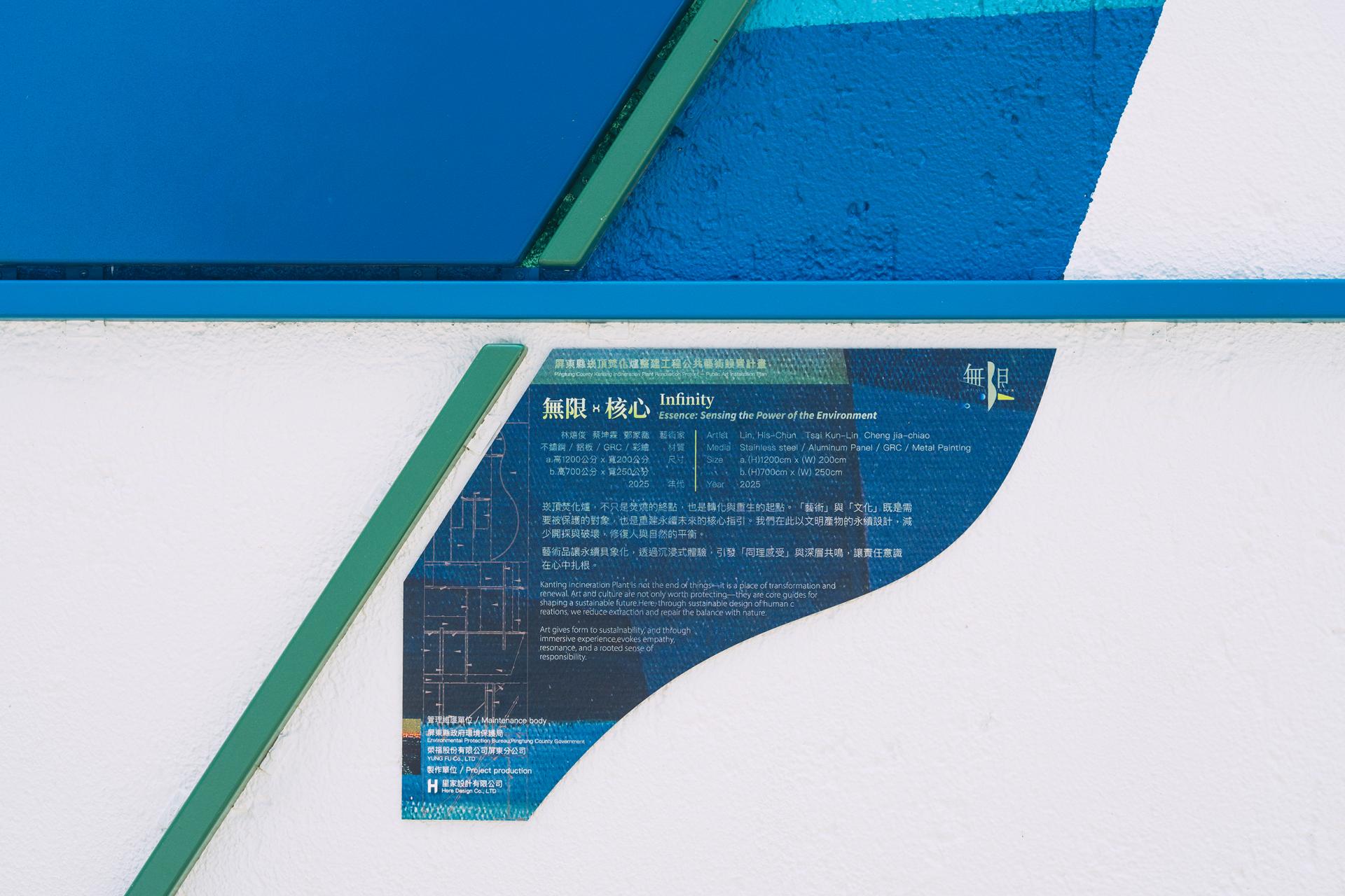 Infinity is a public art installation situated at the Kanting incineration plant in Pingtung. Co-created by artists Lin Xi-Jun, Tsai Kun-Lin, and Cheng Chia-Chiao, the work is composed of three chapters—Departure, Reflection, and Core—presenting a journey from waste to rebirth.