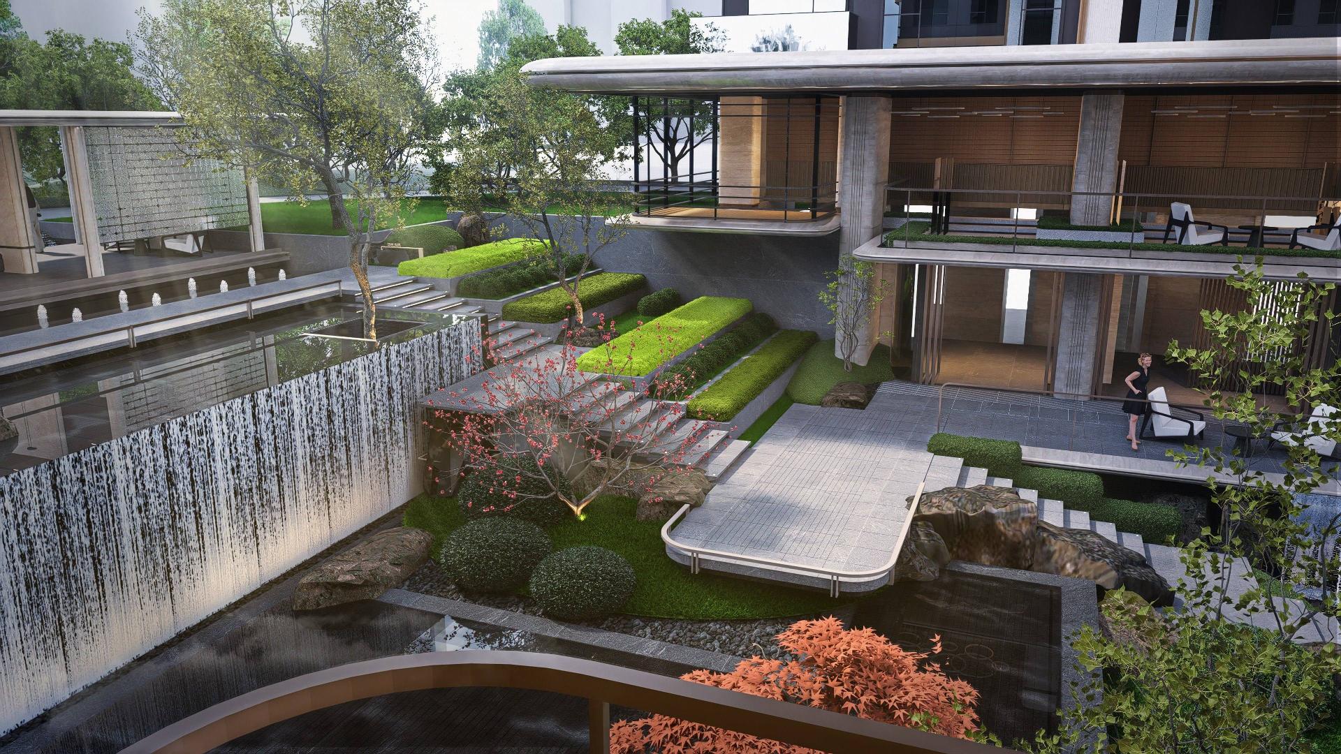 The plan adopts a hierarchical separation of pedestrian and vehicular flows: the northern main entrance organizes vehicular circulation intensively through a "Central Station," with its core "Suspended Tower" serving as a vertical landmark to strengthen community identity. The eastern side connects to municipal parks, creating a meandering ecological pedestrian corridor that links clubhouses, elderly-friendly facilities, and vibrant commercial spaces, activating the linear community interface. Leveraging a natural 3.5-meter elevation difference between the north and south, the design forms terraced landscape platforms through micro-topography, achieving an ecological transition between the community and the urban interface. The garden axis acts as a spatial framework, enhancing landscape permeability and serving as a biological corridor.