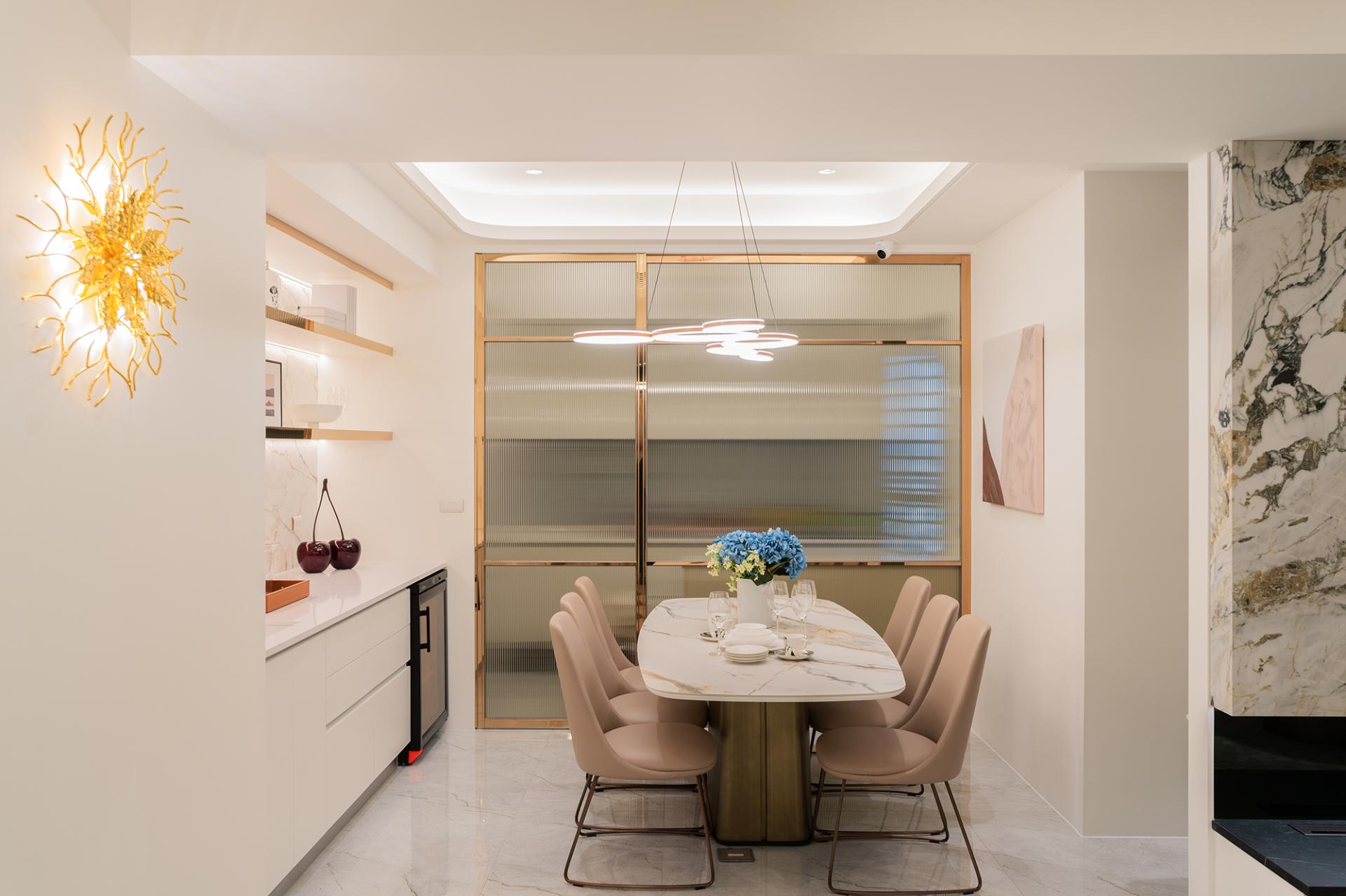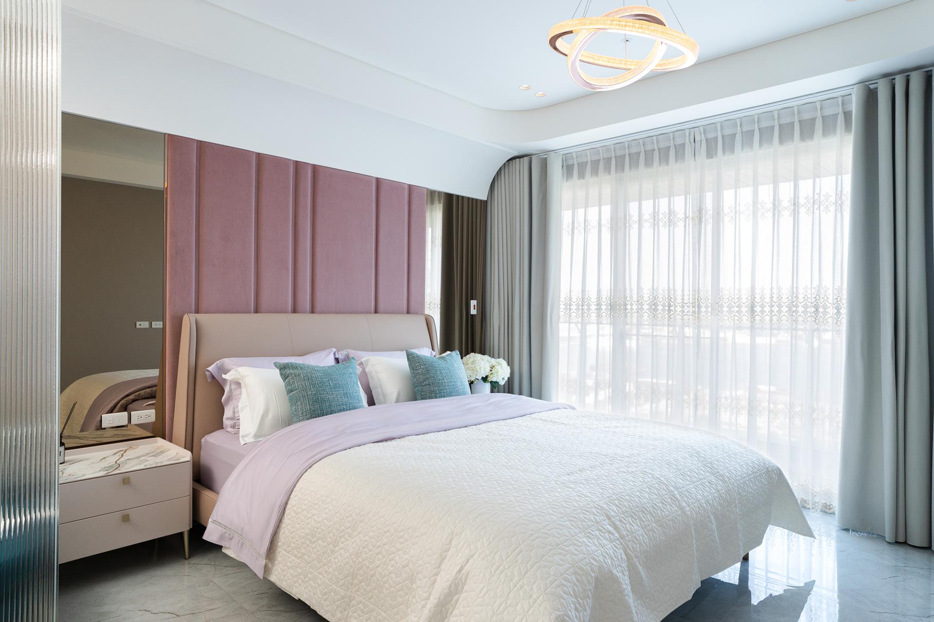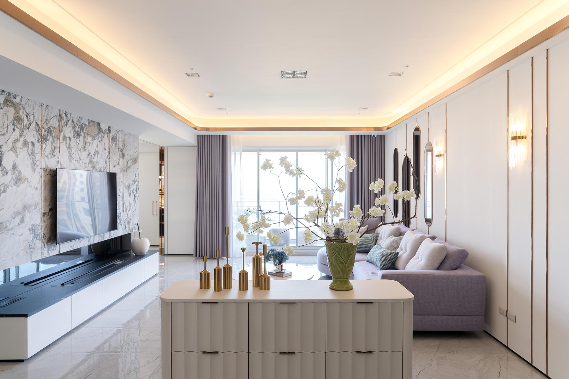 The overarching design concept revolves around the theme of "light luxury and romance, anchored by a pure base tone." The design team meticulously selected a sophisticated color palette featuring shades of white, gold, and purple to establish a modern and luxurious foundation for the space. To enhance the ambiance, warm lighting and plush furnishings were thoughtfully integrated, creating an inviting and comfortable atmosphere that beautifully balances strength with gentleness. Each element of the design not only serves a practical purpose but also adds to the overall aesthetic, reflecting the owner's unique personality. Delicate hues of light white and refined purple embody her elegant demeanor, while the introduction of gracefully curved titanium-plated elements symbolizes her harmonious nature. This intentional interplay of colors, textures, and forms culminates in a residence that is both visually stunning and deeply personal.