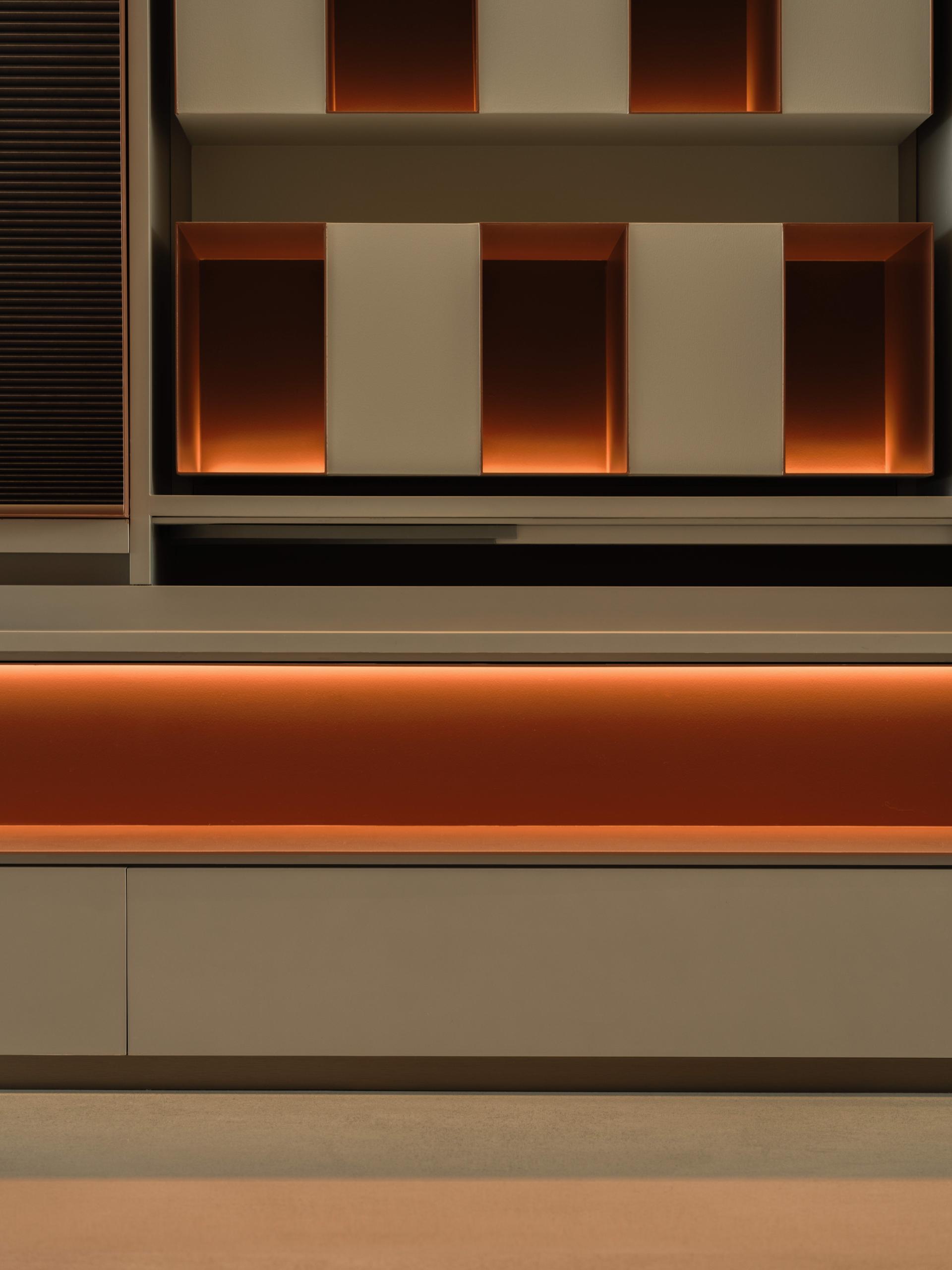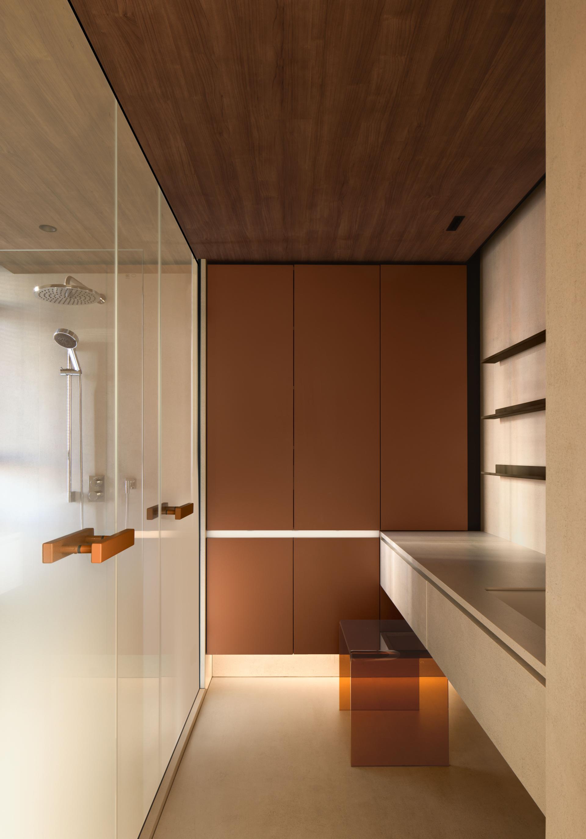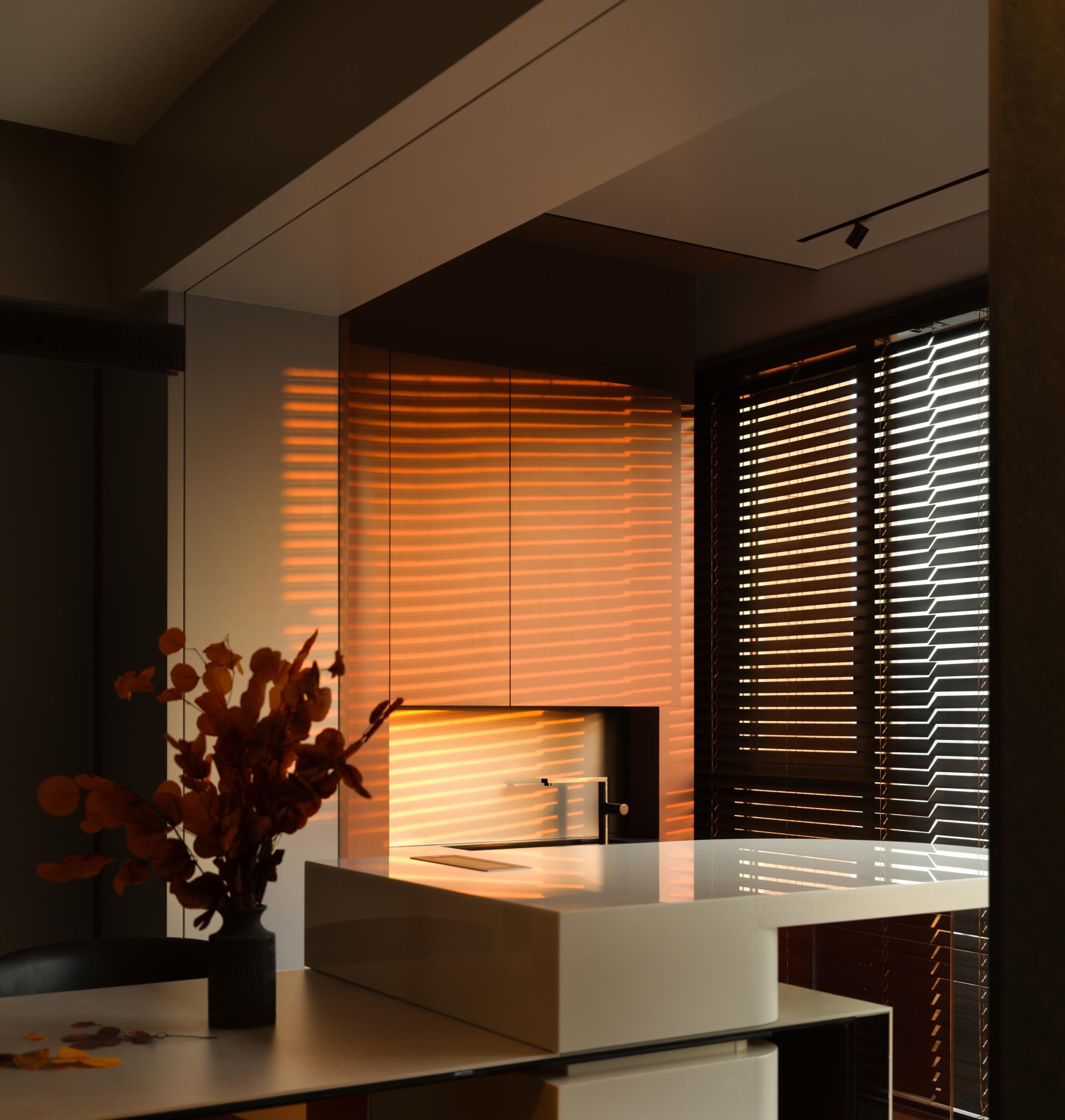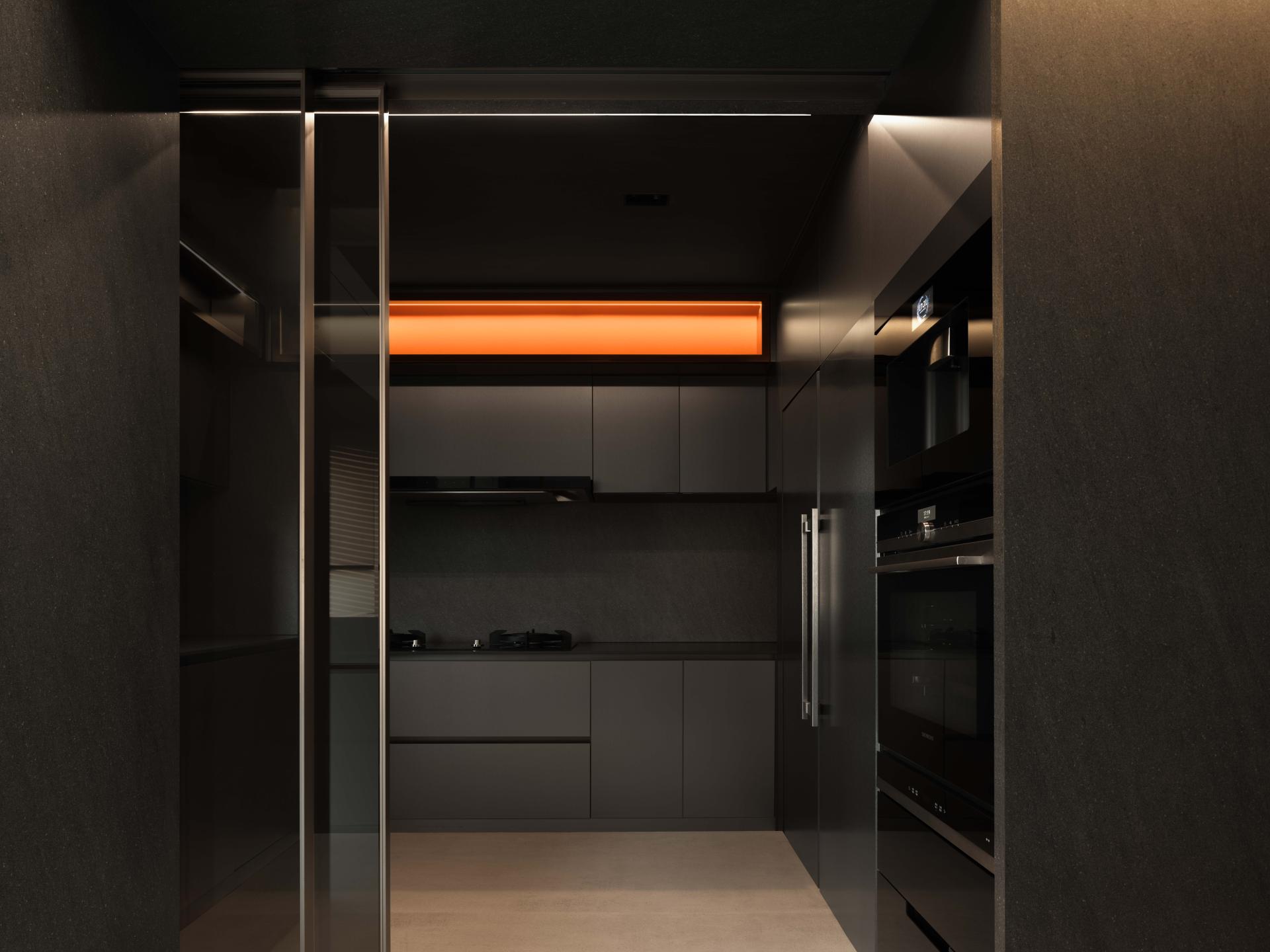 This project embodies a poetic interpretation of daily living by grounding design in perceptual subtlety and emotional cadence. At its core, the residence explores how the minutiae of space—light, texture, proportion—can elevate the everyday into an immersive and meaningful experience. The design draws upon the body as both a perceiving vessel and a medium of expression. Spatial transitions are treated as emotional thresholds: from the "gray space" buffer at the entrance, conceived as a private courtyard for elevator access homes, to the warm timber-clad interiors that unfold with a sense of embrace. An interplay between recessed forms, shifting materials, and lighting sequences establishes mood, rhythm, and intimacy. Central to the project is the notion of proportion—not merely of objects themselves, but in the relational balance between them. This is reflected in the living room’s nested configurations, where layered cabinetry and concealed storage extend across structural elements to seamlessly link the kitchen and public zones. Refined craftsmanship manifests in precise joinery, integrated lighting, and interactive façades, such as retractable honeycomb shades and hidden display systems that blend function with visual delight. Spatial reprogramming further enhances the quality of life: the former balcony is absorbed into an expanded dining and social hub; a compact worktop inserted within a shear wall recess demonstrates spatial optimization. The study, set near a window, uses sliding partitions and tonal flooring transitions to define ambiance while maintaining visual continuity. Circulation is ritualized. A passage between public and private spaces is activated through vertical light slits and layered wall planes, metaphorically evoking fleeting moments of “daily luminosity.” The private zones continue this understated richness: a tatami bedroom showcases material continuity, while the master suite benefits from a newly integrated walk-in closet. Conceptually inspired by Kiyokazu Washida’s philosophy of the “hidden scene,” the project reveals how subtle details—often ignored—can surface through conscious design to evoke timeless emotional depth. In doing so, the space becomes not just a residence, but a meditative vessel for experiencing the profound within the ordinary.