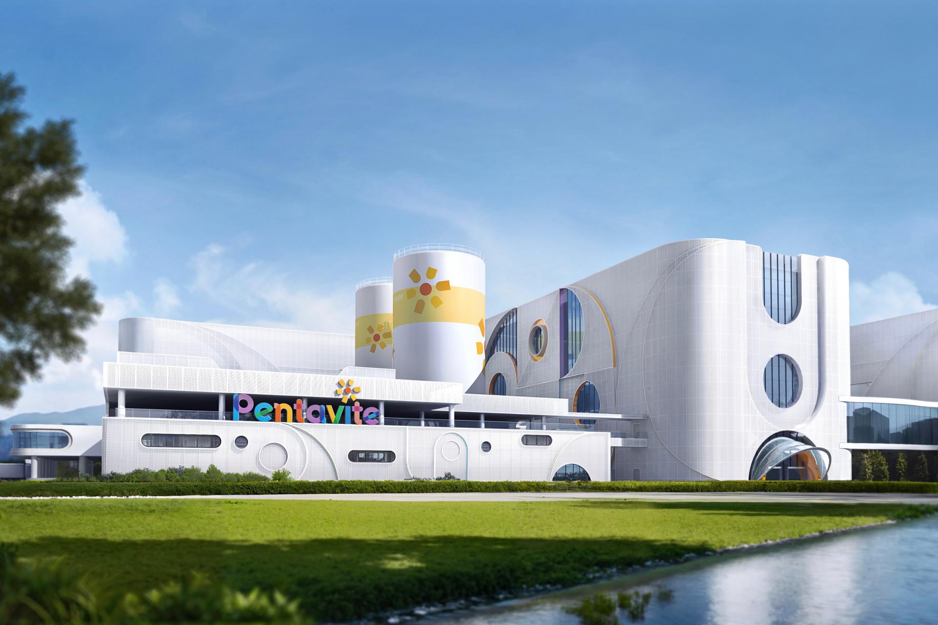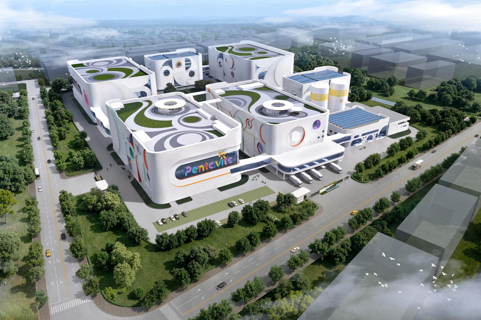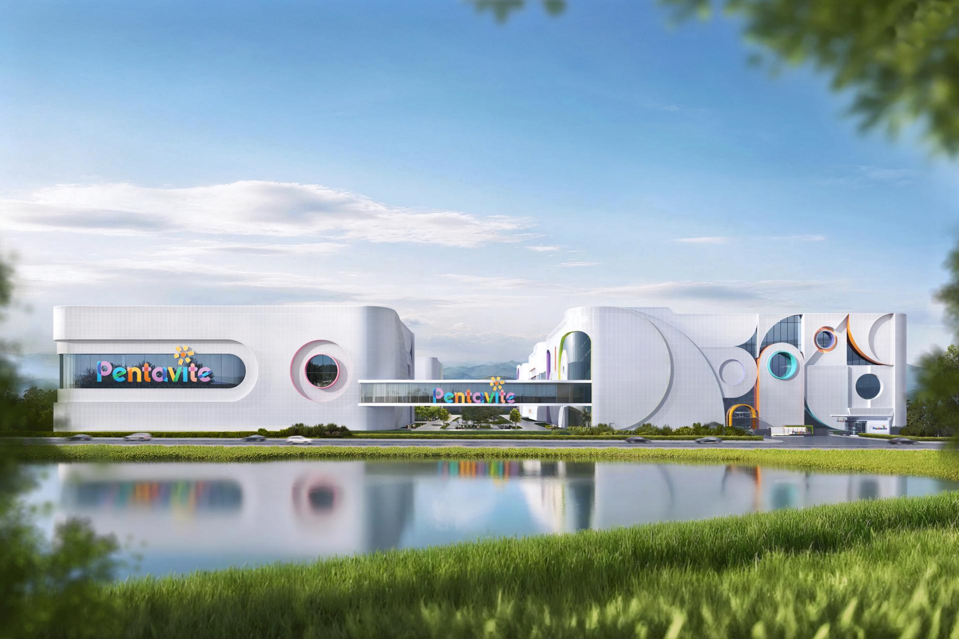 The project is located within the Transparent Factory scenic area in Zhuhai, China. It is a modern factory meticulously tailored for Pentavite, a long-established children's vitamin brand.