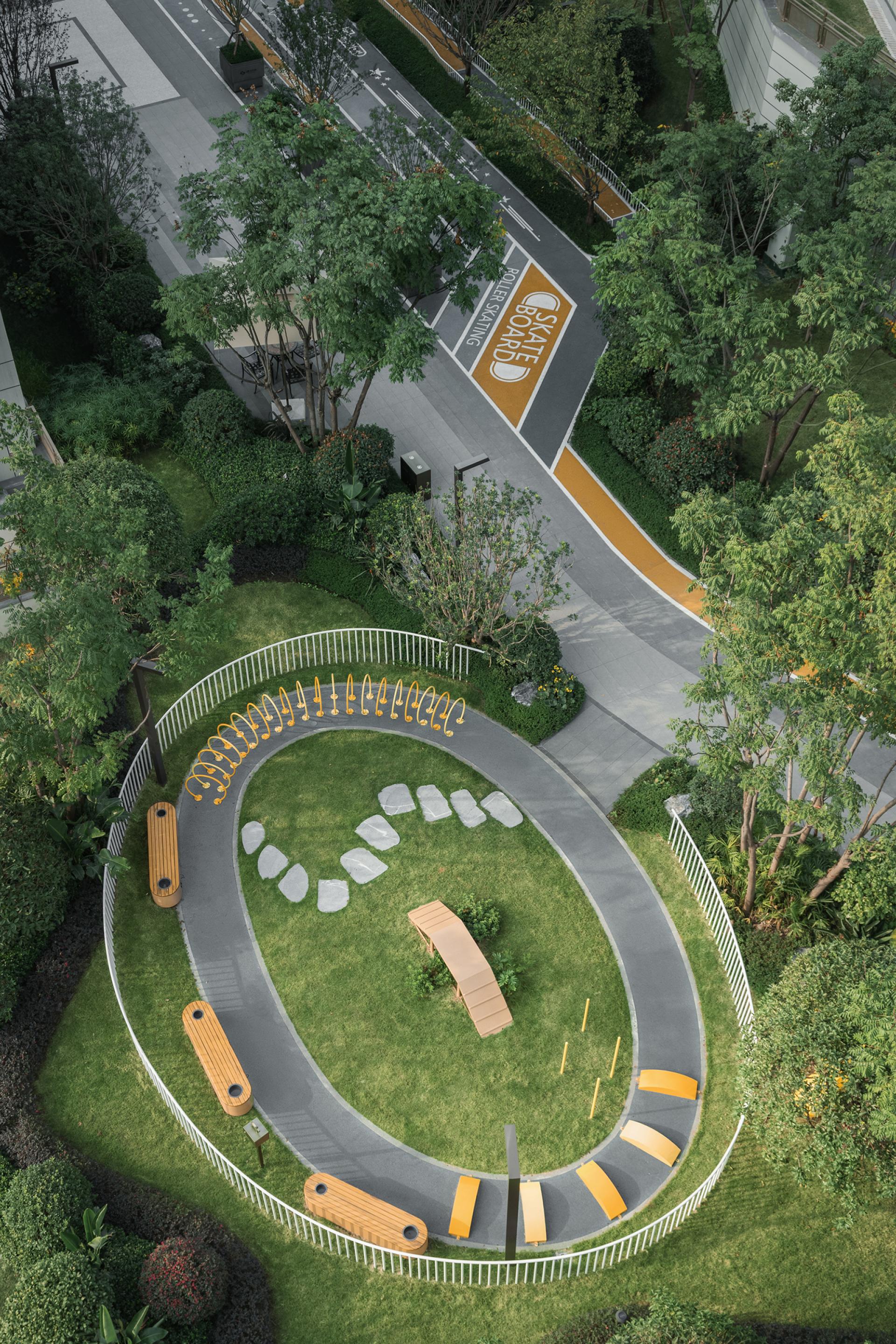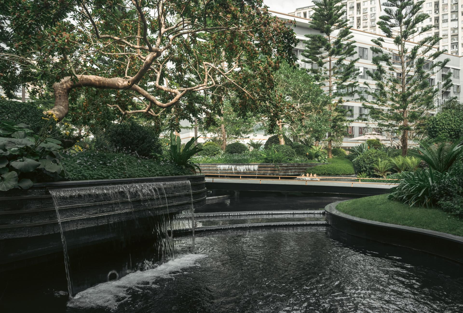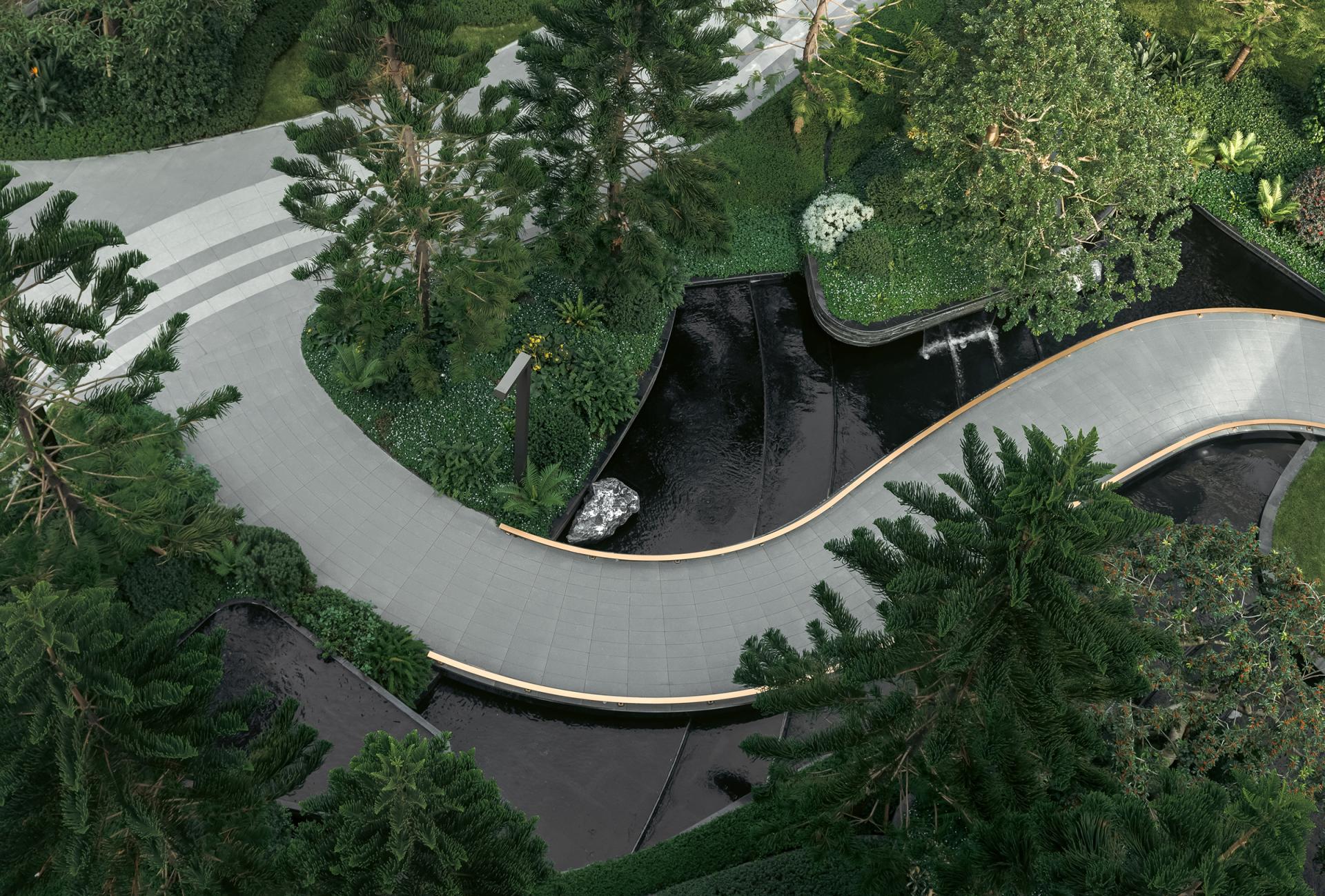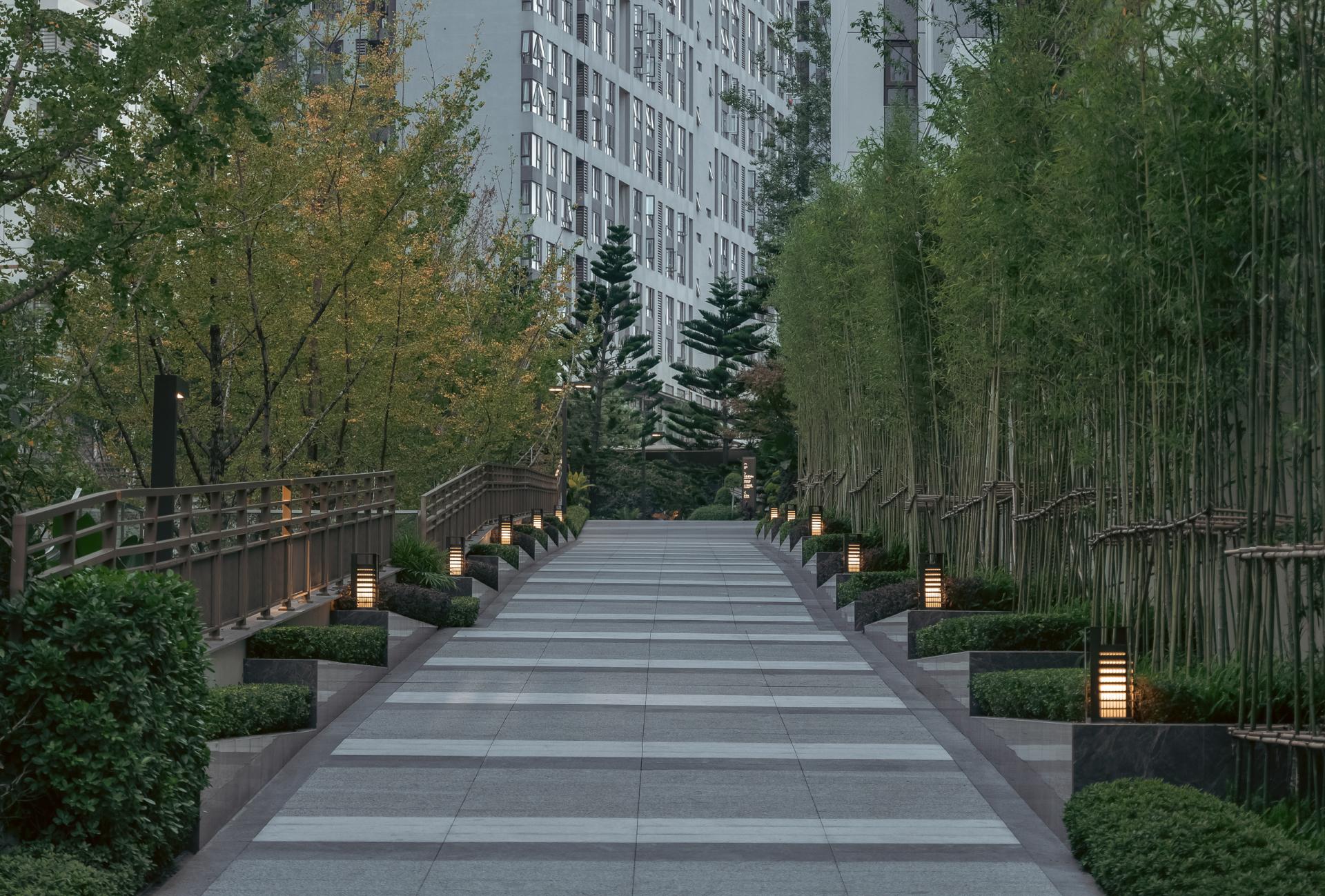 Located in Chongqing, China Overseas Chunhua Shangcheng leverages the region’s dramatic elevation differences to create a mountain-style community landscape that reconnects residents with nature. Rather than relying on superficial symbolism or commercial tropes, the project addresses concrete challenges—such as vertical circulation, site fragmentation, and visual pressure—through deliberate and human-centered spatial interventions. The design employs “Chongqing-style garden craftsmanship” to resolve complex elevation issues across a site with a maximum 35-meter height difference. Through carefully layered platforms, terraced gardens, and direct elevators, the designers transform topographical constraints into spatial assets. Three major terraces formed by tall retaining walls were redesigned as oxygen-rich green valleys, softening hard edges with hanging greenery and cascading waters to form immersive, walkable environments. Landscaped platforms with varied heights incorporate forest balconies, ridge trails, and fluid sightlines that introduce views from the adjacent park into the community. The design seamlessly connects vertical nodes using multi-level pathways, bridges, and plant-covered slopes, ensuring accessibility and cohesion across the site. A major feature is the transformation of challenging edge conditions into poetic experiences. For example, the Flying Elephant Park connects two fire-rescue zones separated by a 7-meter drop. Here, the designers addressed vertical movement, wall concealment, and play integration simultaneously, creating a Disney-style children’s playground that encourages exploration and imagination. Sustainability and ecological sensitivity are embedded in the design through the use of native and seasonal vegetation. Vertical greening techniques, such as soft-hanging terraces and plant-integrated retaining walls, restore disturbed landforms and transform previously scarred slopes—left from mountain blasting—into green “bandages” that symbolize ecological healing. Public and semi-private spaces along circulation routes serve multiple functions: enhancing wayfinding, increasing interaction, and providing visual and sensory relief. The use of multi-sensory planting, natural textures, and elevation-framed viewpoints encourages emotional resonance with the landscape and enhances the daily living experience. Through precise terrain reading, refined detailing, and a strong sense of local identity, the project turns elevation challenges into layered spatial narratives. It creates a community where architecture, landscape, and topography interact harmoniously, forming a mountain dwelling experience that is functional, poetic, and deeply rooted in place.