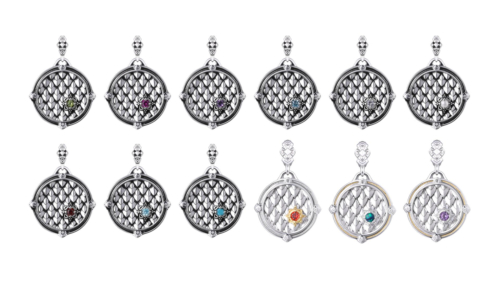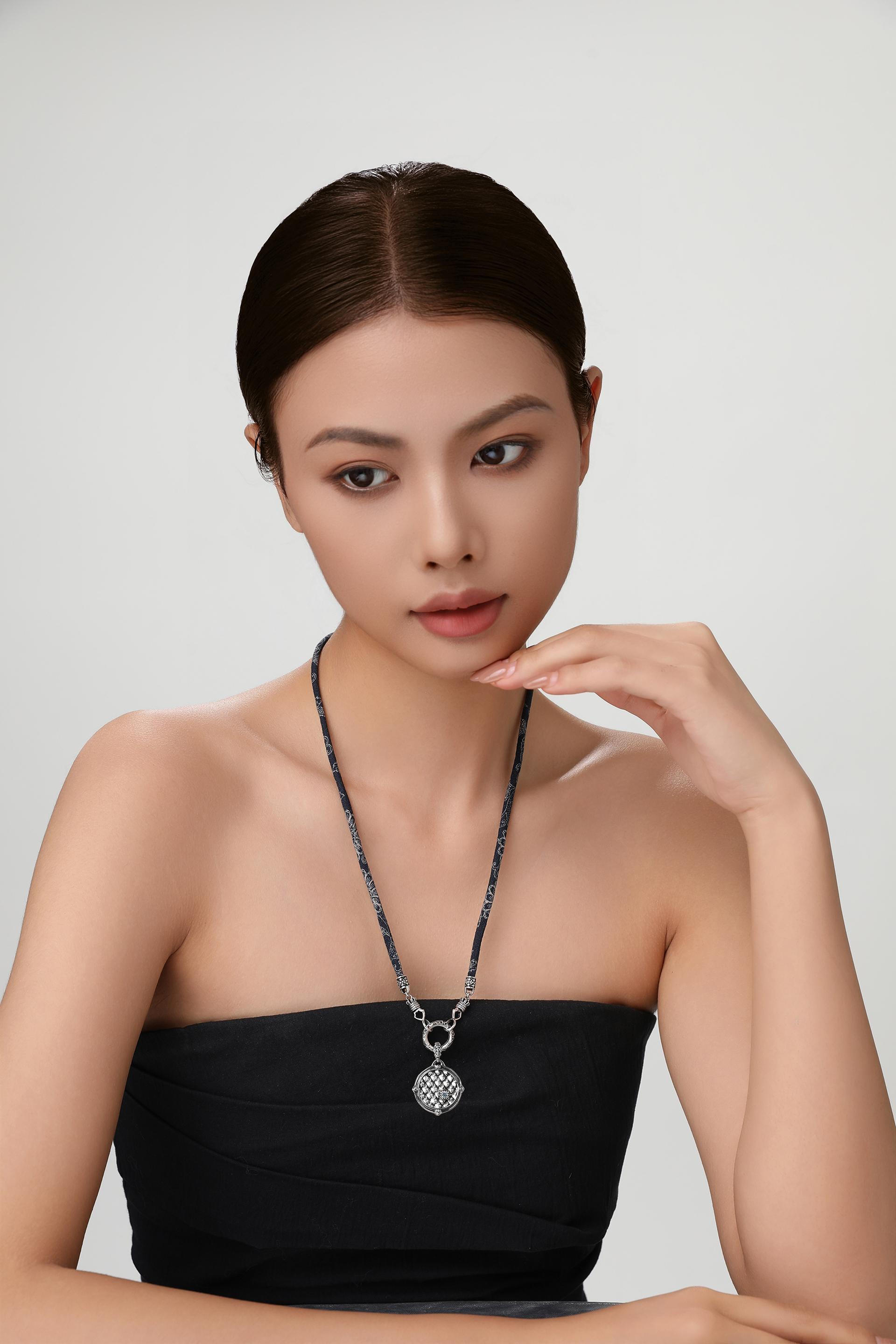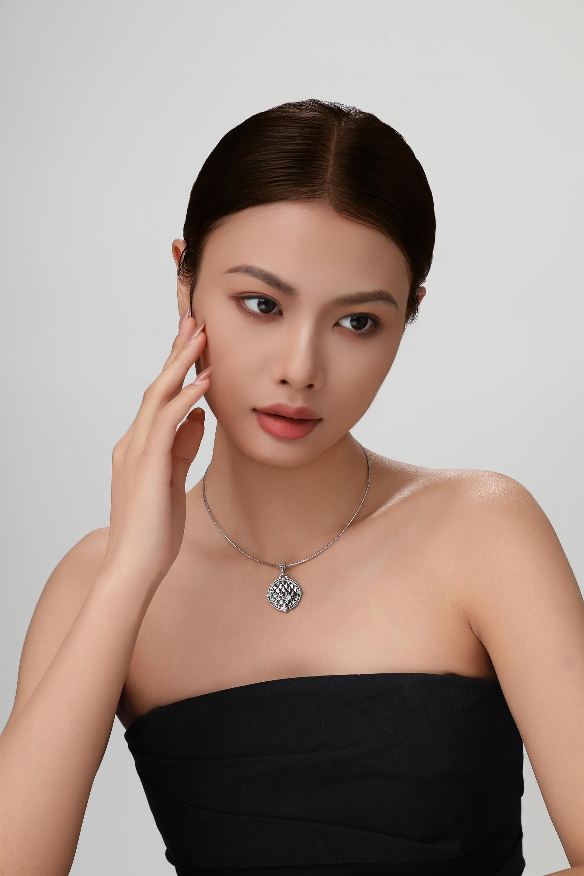 The front side of the pendant features a micro-set "dragon scale" design, with each scale individually carved and assembled to form an intricate dragon-scale texture, symbolizing the gathered divince power of the dragon clan, embodying the meaning of "Descendants of the dragon, summoning wind and rain, moving forward fearlessly", and interpreting the unique charm of traditional culture. Inlaid within the dragon scales is a birthstone, allowing the wearer to customize the gem corresponding to their birth month. This not only helps express personal styles but also highlights the significance of exclusive protective energy. The rear side features a "green mountains and clear waters" motif using parrot feathers and modern mineral glazes through traditional Diancui craft, showcasing the refined craftsmanship while echoing the ecological philosophy of "Clear waters and green mountains are invaluable assets." The dual-sided composite structure juxtaposes the bold metallic dragon scale texture with the soft gradient elegance of the Diancui motif, exemplifying the Eastern aesthetic of "Strength and softness in harmony" and reflecting the Eastern philosophy of "Hiding one's light under a bushel".