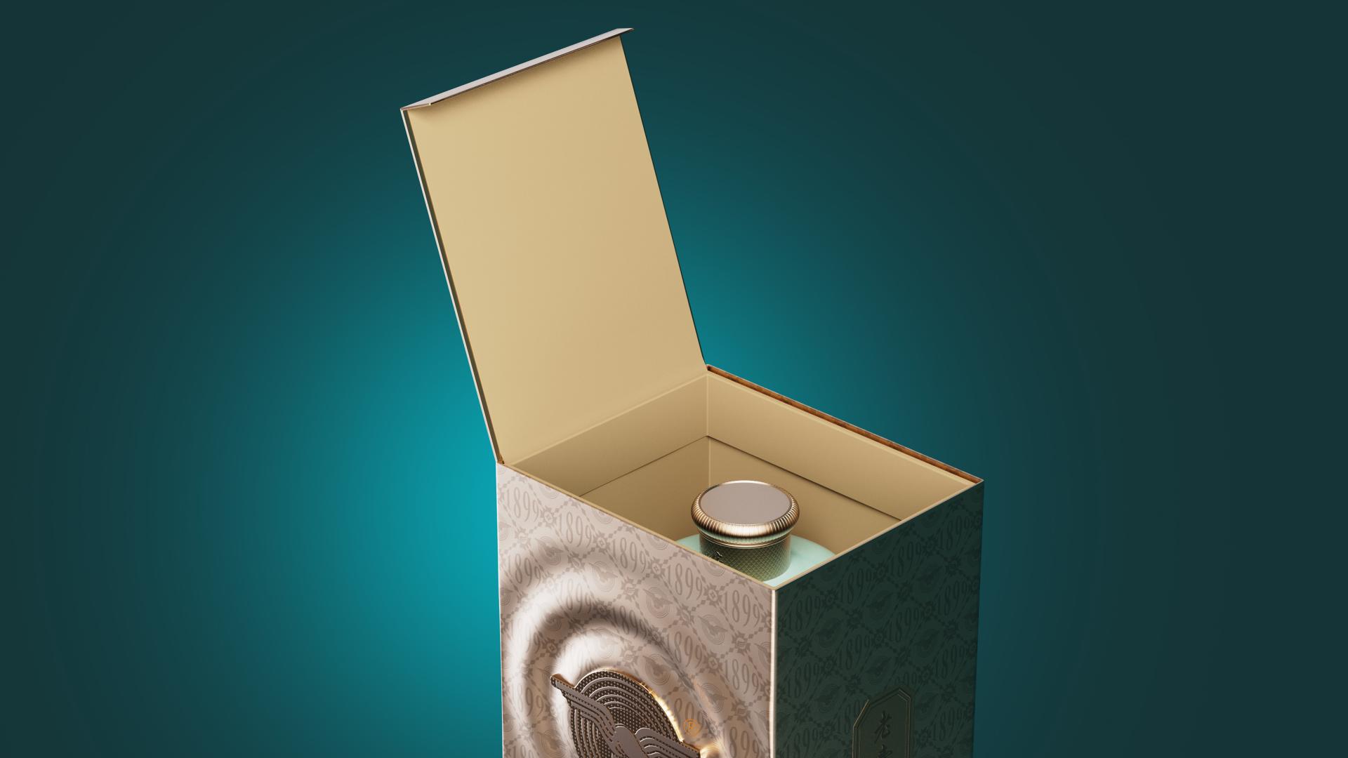 Guided by the design philosophy—"Liquor as the Soul: Century-old Craftsmanship Captured in Every Sip", the packaging design integrates the inherited time-honored techniques and quality standards of Lai Shijia. The bottle features a 3D water ripple pattern that symbolizes the fluidity of liquor and the continuity of tradition. The main visual highlights the iconic "Great Roc" emblem, representing over a century of heritage and reinforcing Lai Shijia's brand recognition.
