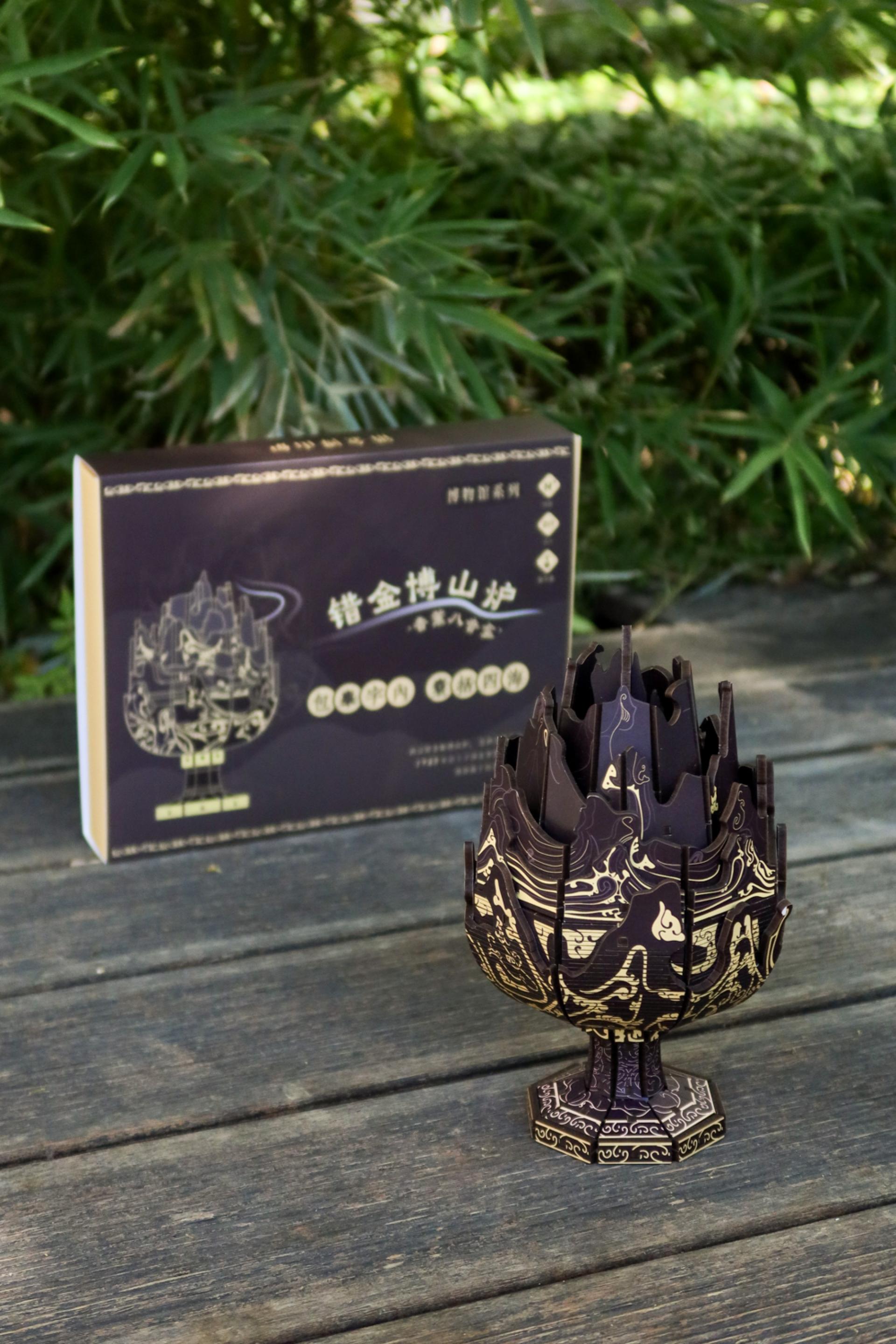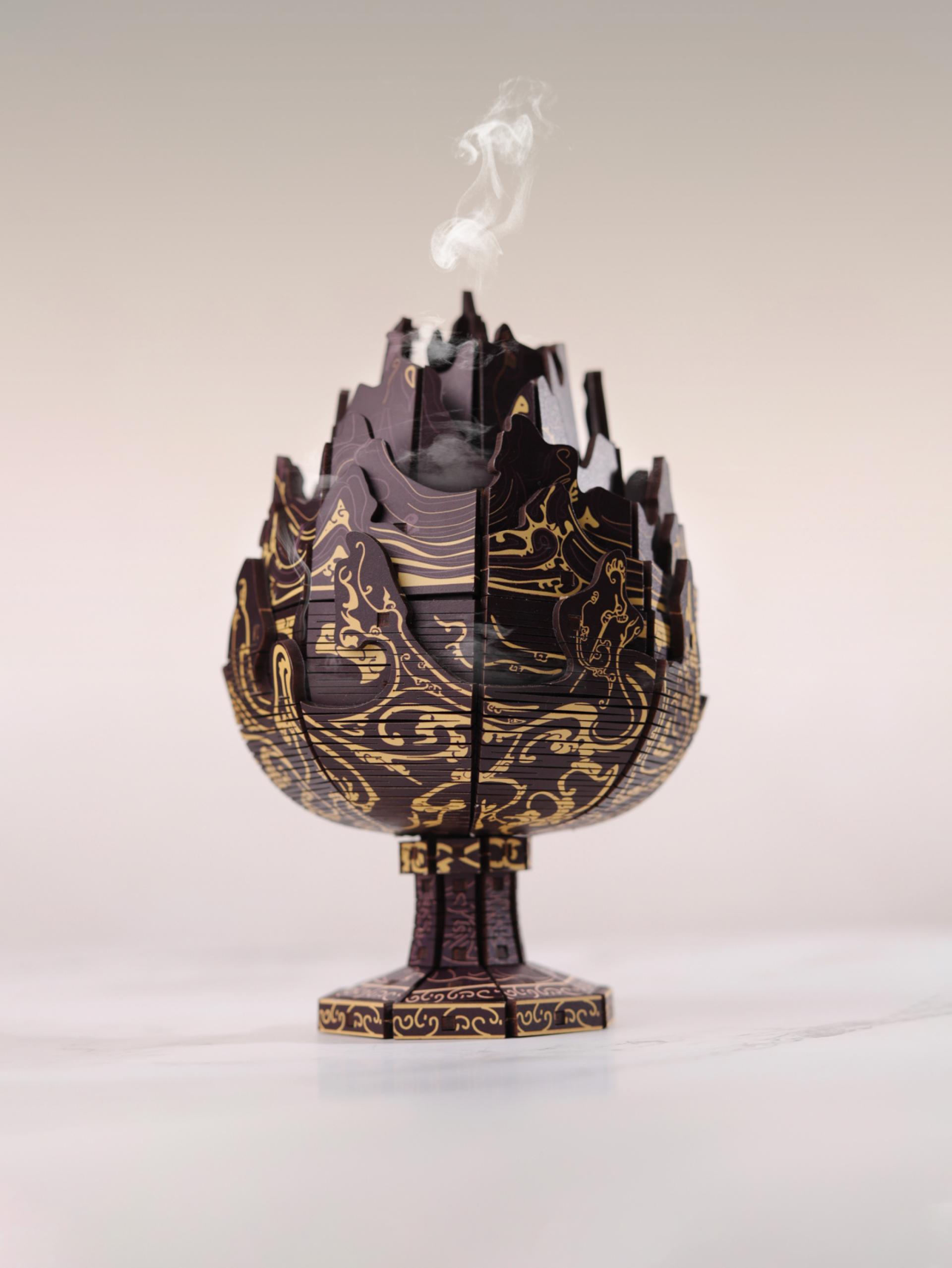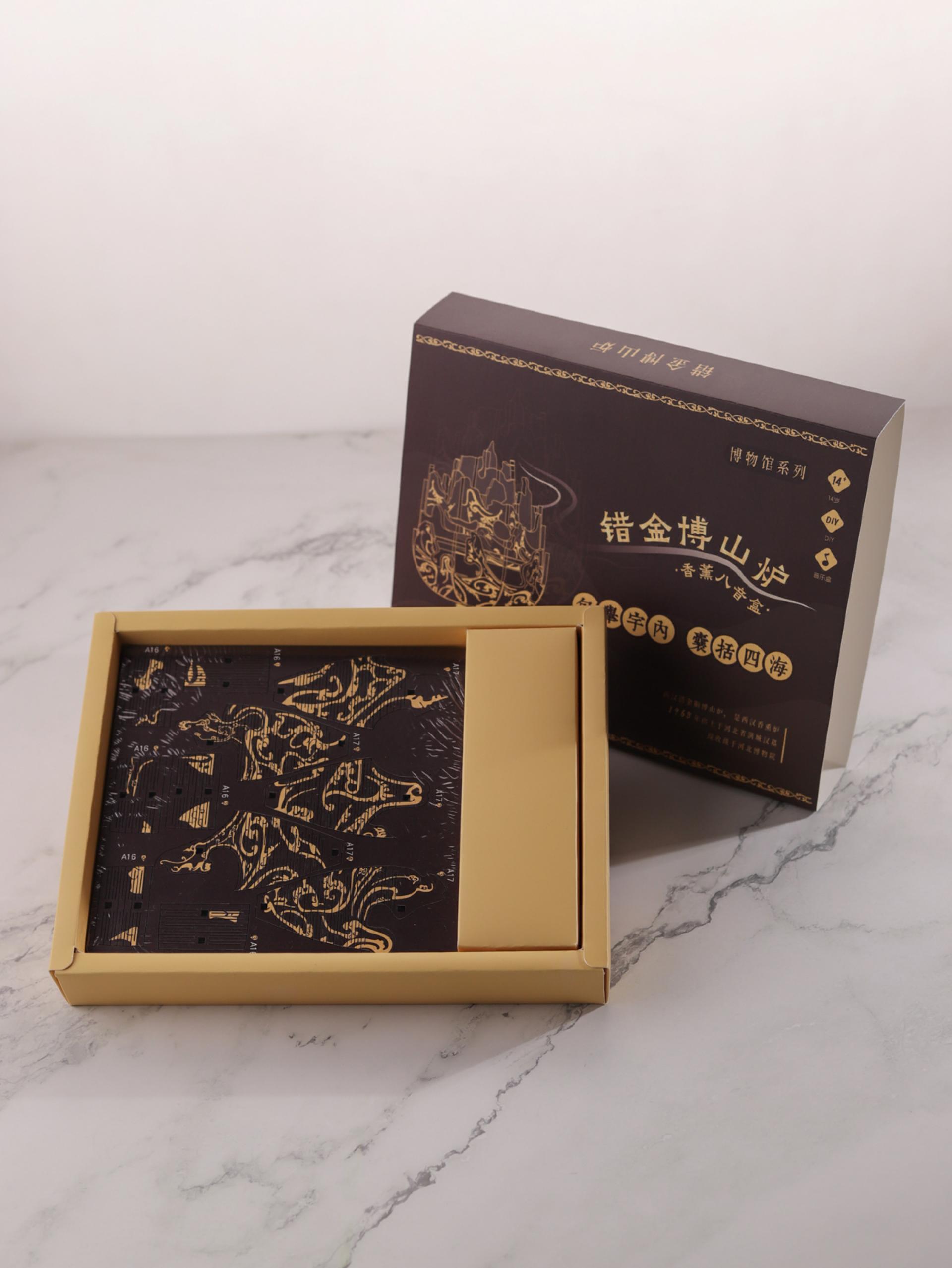 The inlaying gold Boshan Furnace Aromatherapy Music Box draws inspiration from the national treasure, the Boshan censer with gold inlay, and is meticulously recreated using traditional mortise-and-tenon woodwork. Blending heritage craftsmanship with modern aesthetics, it houses a precision music movement that brings forth melodious tunes, allowing users to indulge in the elegance of timeless sound.