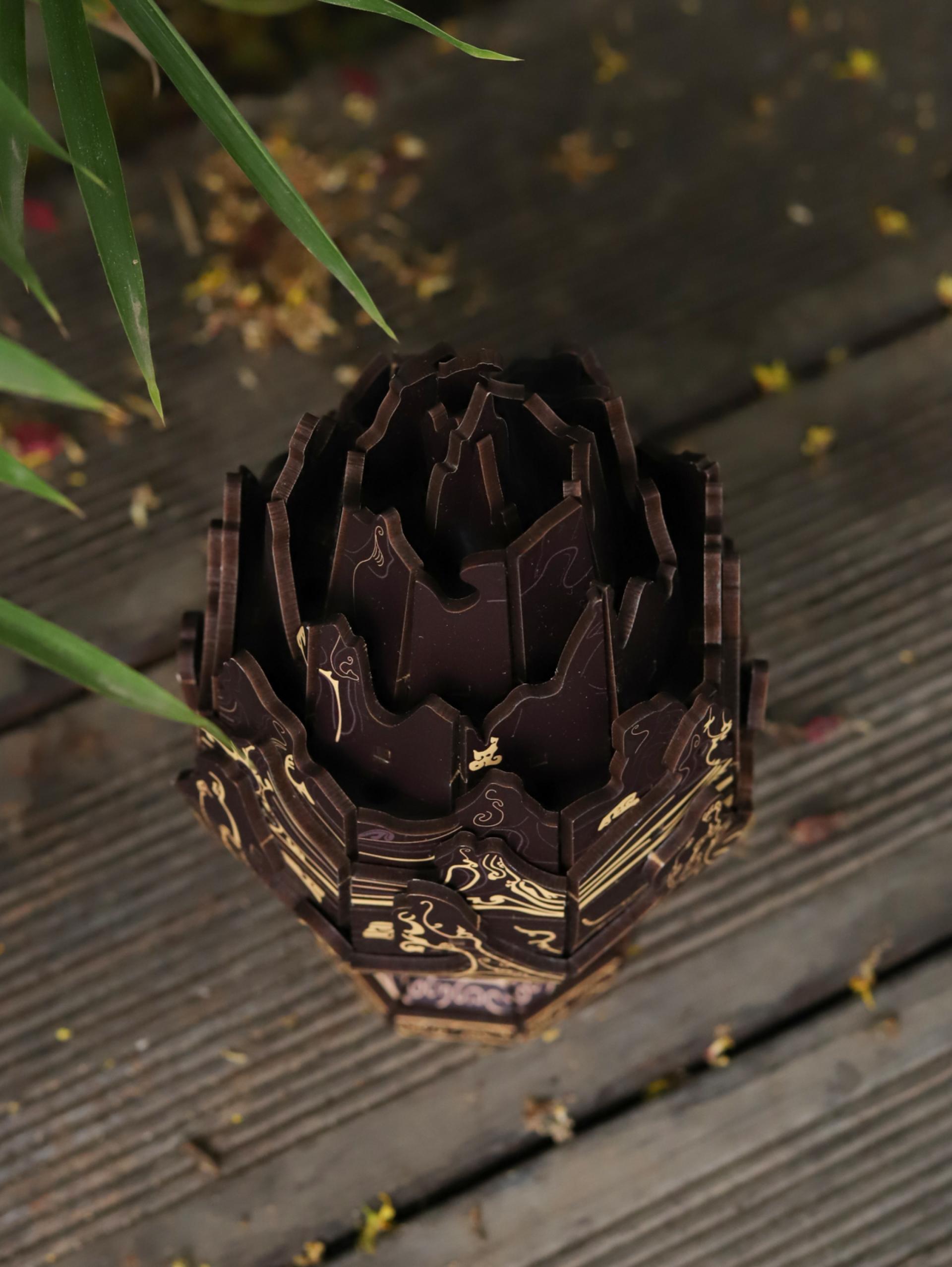 Its ingenious structure transforms the music box into an aromatherapy censer, where soothing fragrance intertwines with music, creating a serene and immersive atmosphere. The use of traditional mortise-and-tenon techniques also gives it a DIY assembly feature, inviting users to experience the joy of craftsmanship while connecting with the wisdom of ancient design.