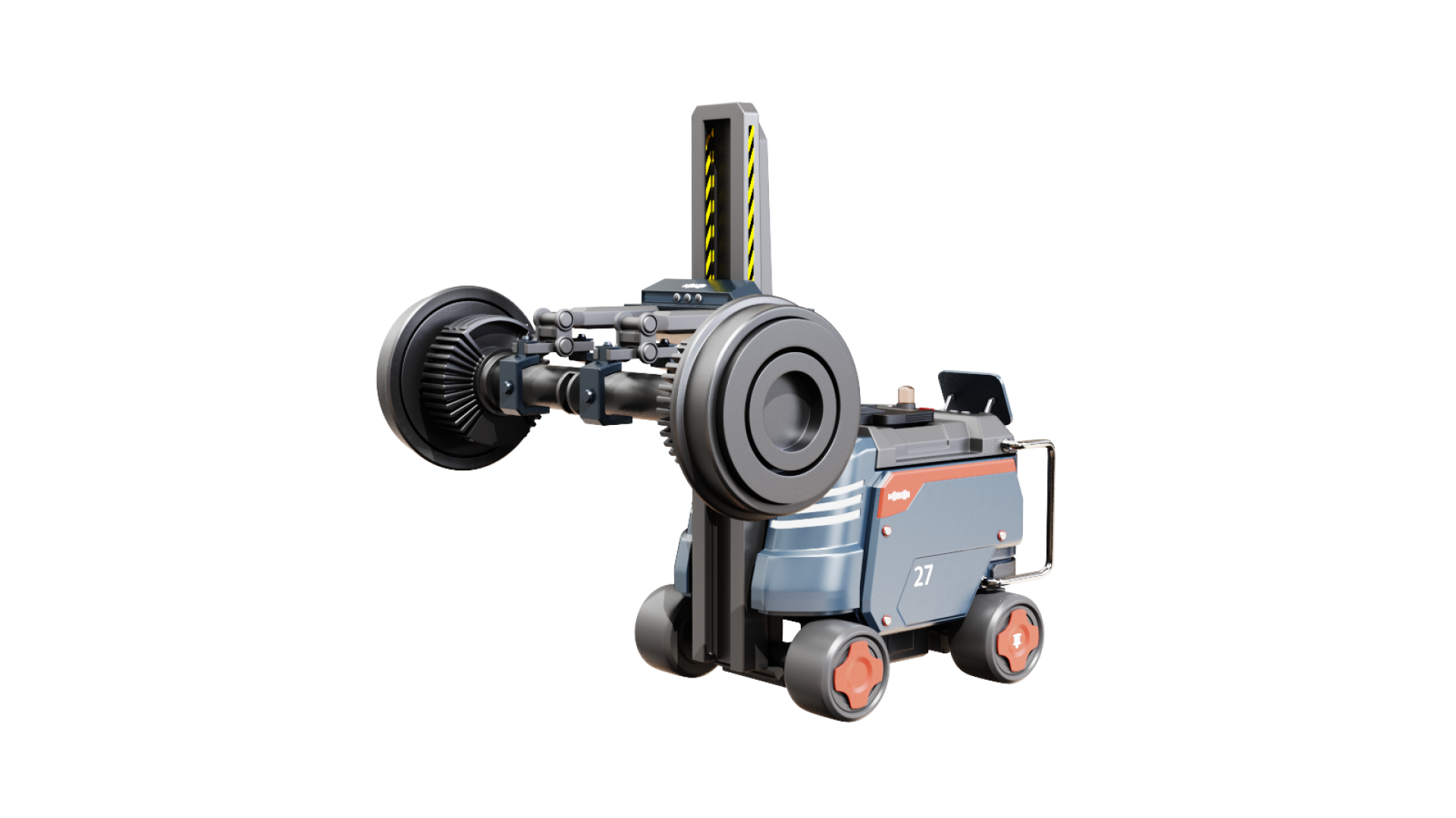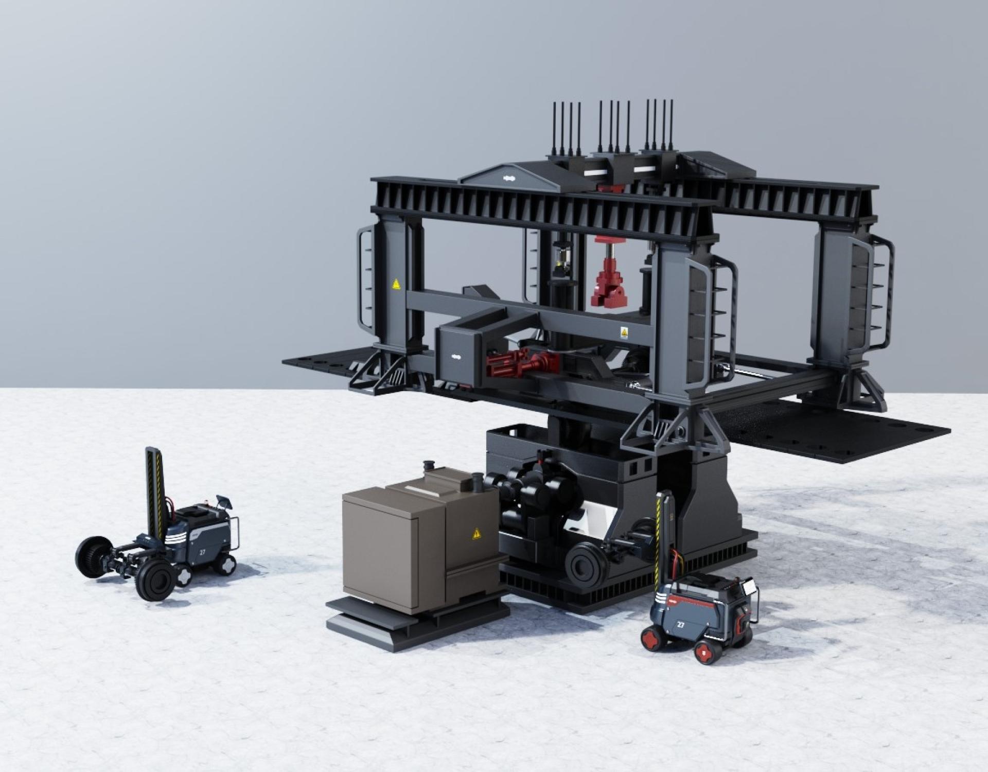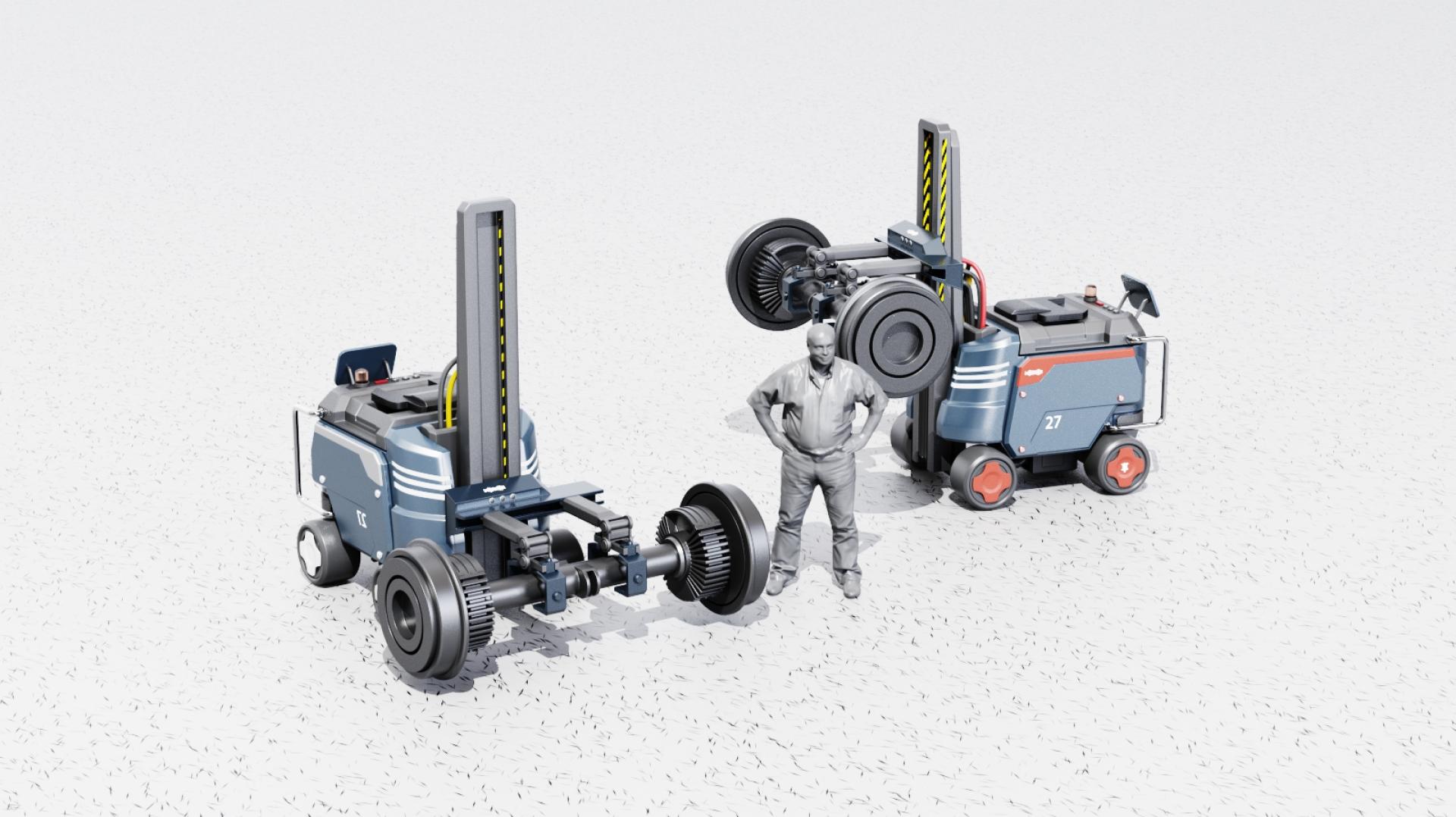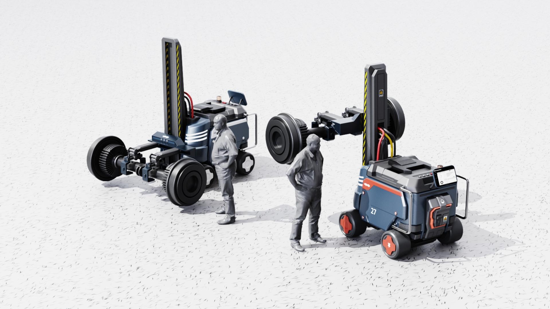 This product design integrates a test bench and an auxiliary handling robot, providing an efficient and precise test system for the wheel-rail operation of bullet trains. The auxiliary material handling robot helps users install and position the wheels on the test platform, reducing the complexity of manual operation and improving work efficiency. The core test bench precisely controls the contact position and creep state through the independent control function of the wheel-rail operation test bench, simulating parameters such as the wheel operation posture and wheel-rail contact pressure at different contact positions. The system can comprehensively test the wheel-rail contact behavior and evolution law, master the combined influence of wheel-rail relative position relationship, contact position, creep state, etc., provide scientific basis and experimental platform for the wheel-rail profile matching design of EMUs, service performance evaluation and evolution law prediction, and help improve the safety and reliability of EMU design.
