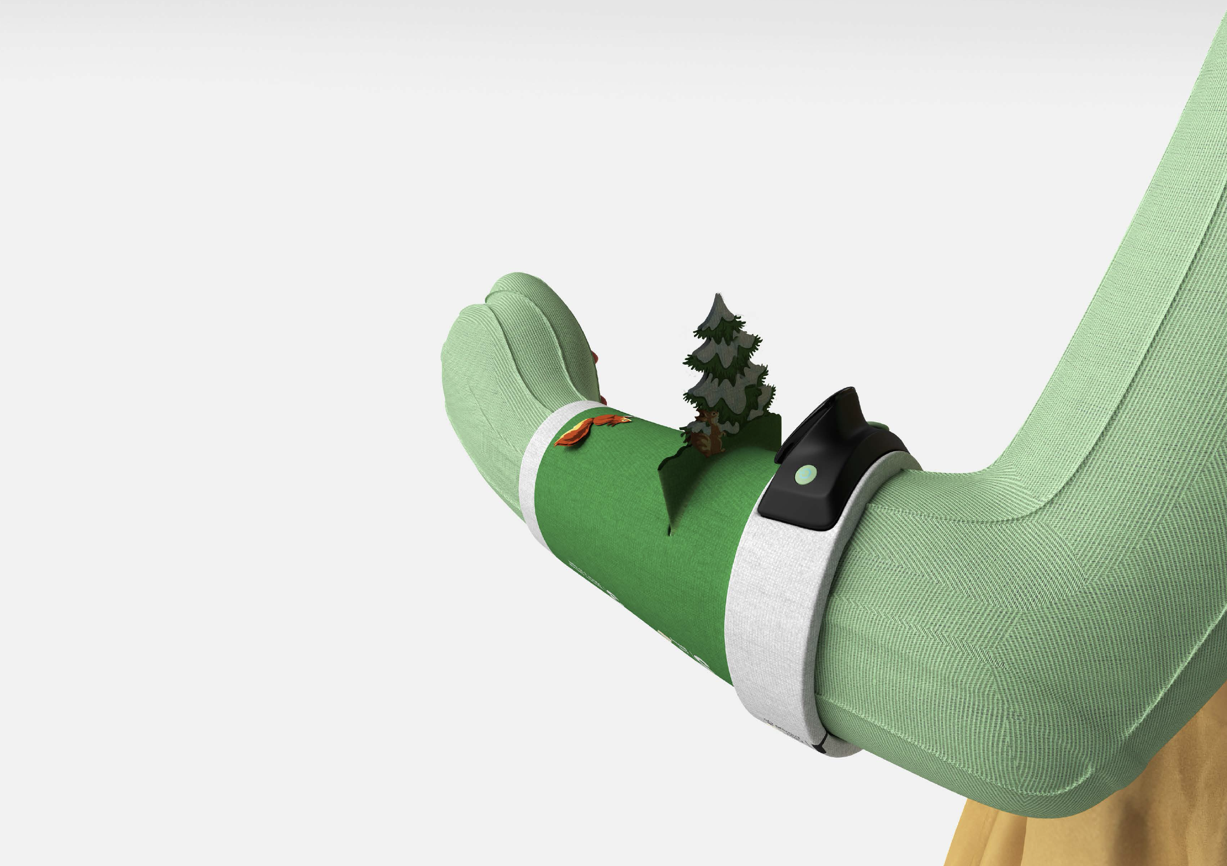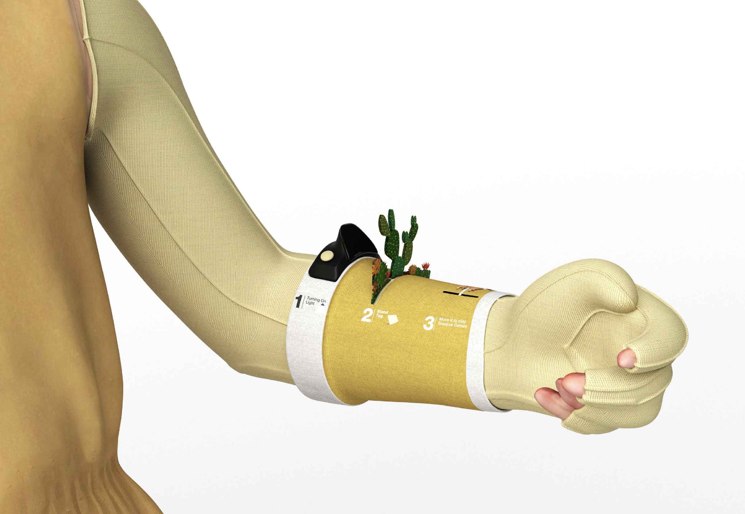 ShadowHeal is a pediatric burn recovery pressure garment for children aged 2–14. It features adjustable pressure, real-time scar hardness monitoring, and interactive shadow-puppet projections in three fun cartoon themes, turning recovery into an engaging, stress-reducing experience.