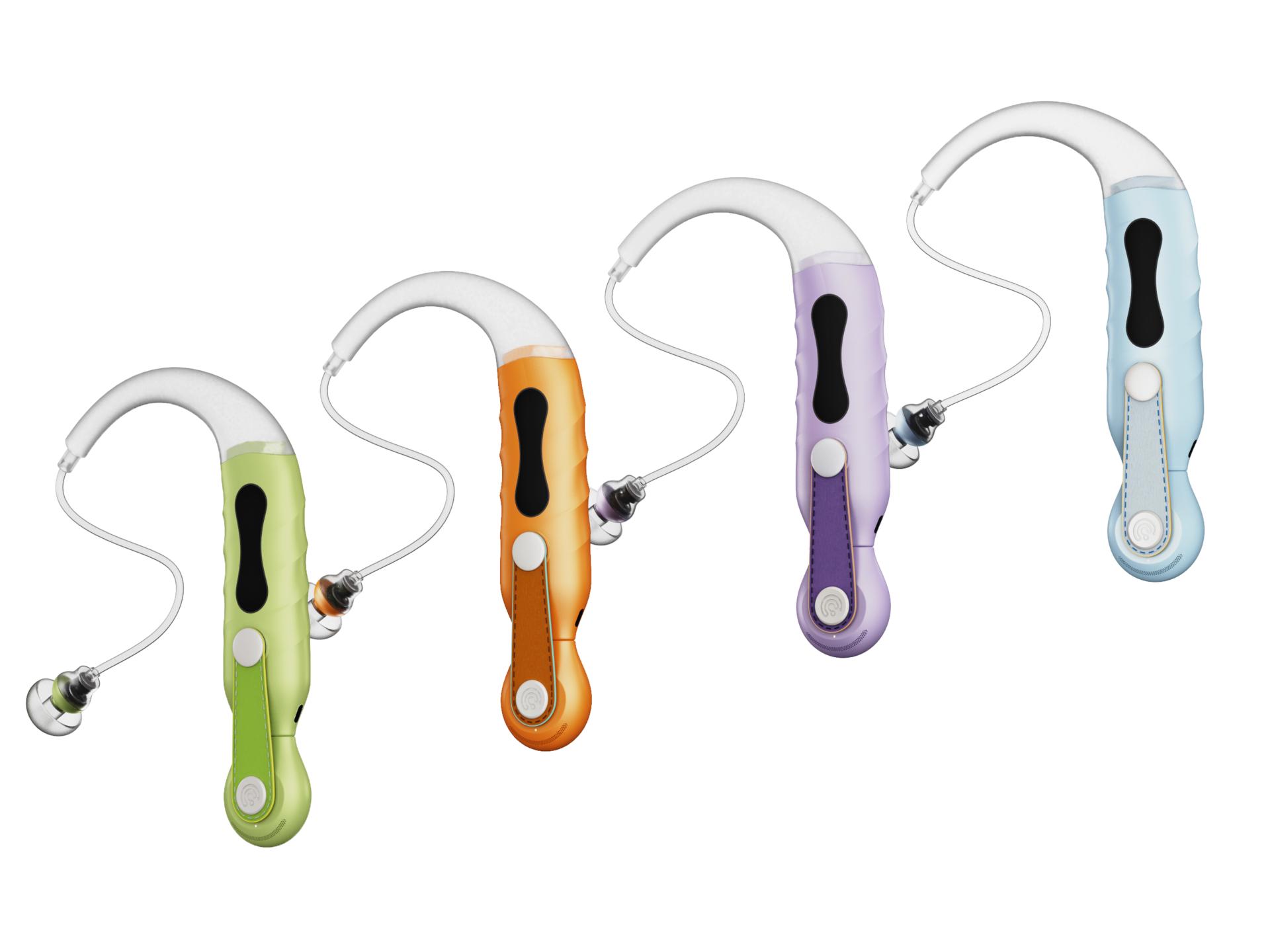 Unlike the mechanical look of conventional hearing aids, Hearya embraces a more fashionable approach, available in six color options to meet diverse aesthetic preferences. The product consists of a main unit and a detachable magnetic pickup module named Heardot. Its streamlined silhouette wraps naturally behind the ear, with the ear hook extending toward the ear canal to form a secure loop. The body features smooth, rounded contours and a wave-textured surface for improved grip, stability, and comfort, creating a unified, organic form.