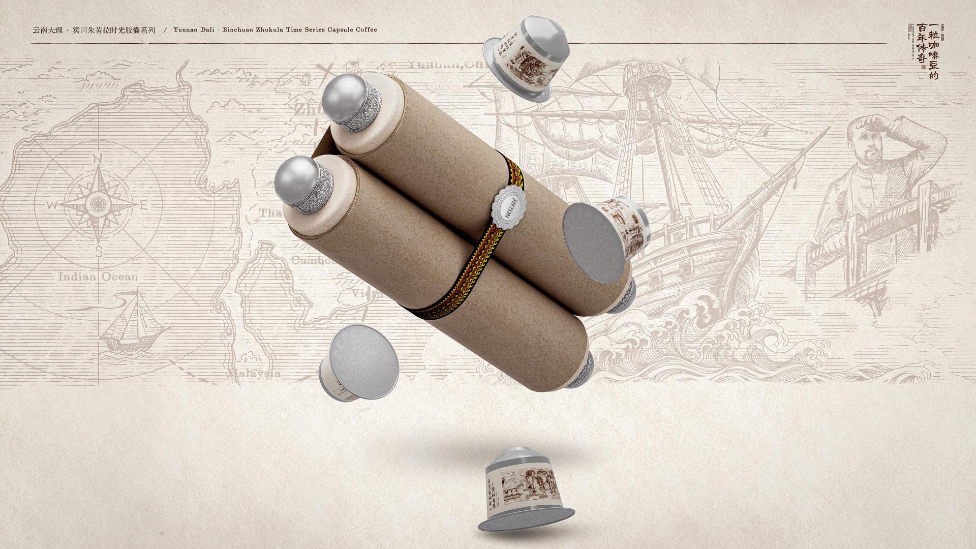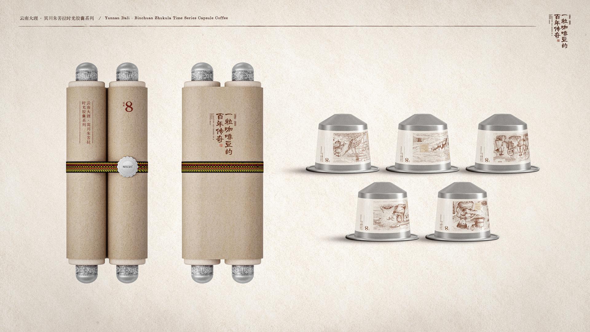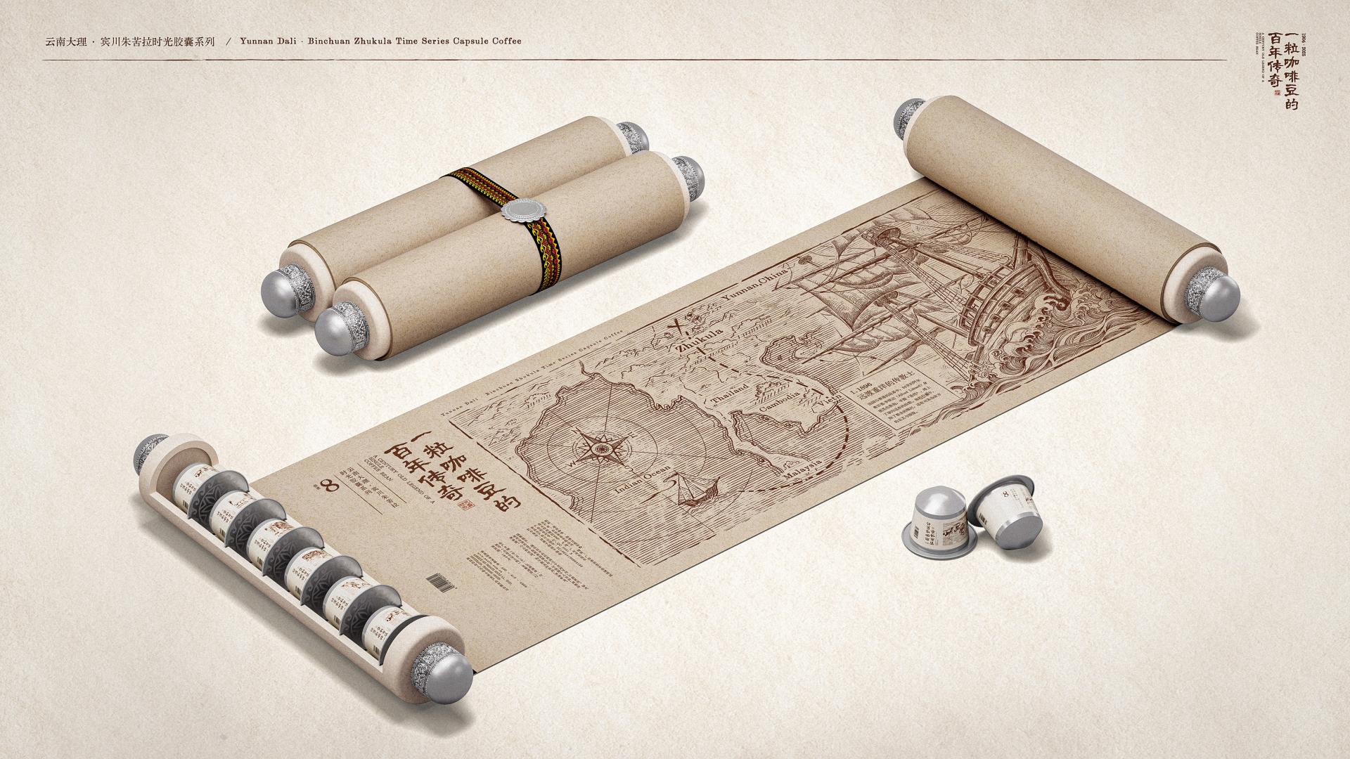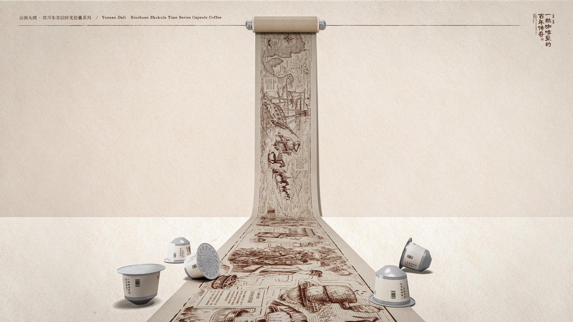 The coffee capsules are housed within the cylindrical scroll rollers, with each capsule corresponding to a "storyboard frame" in the scroll painting. This allows users to immerse themselves in the brand's history and culture upon unpacking the packaging.