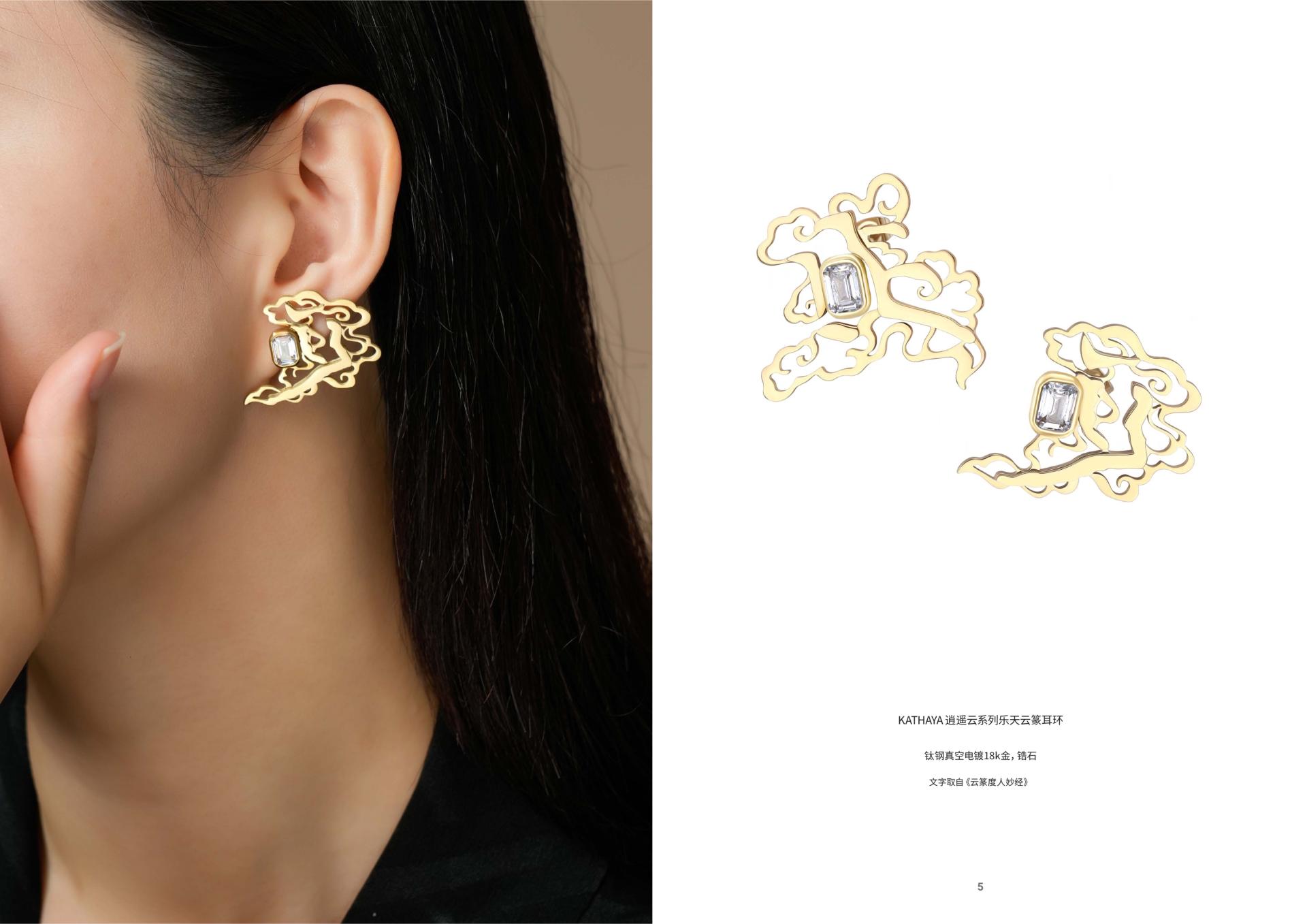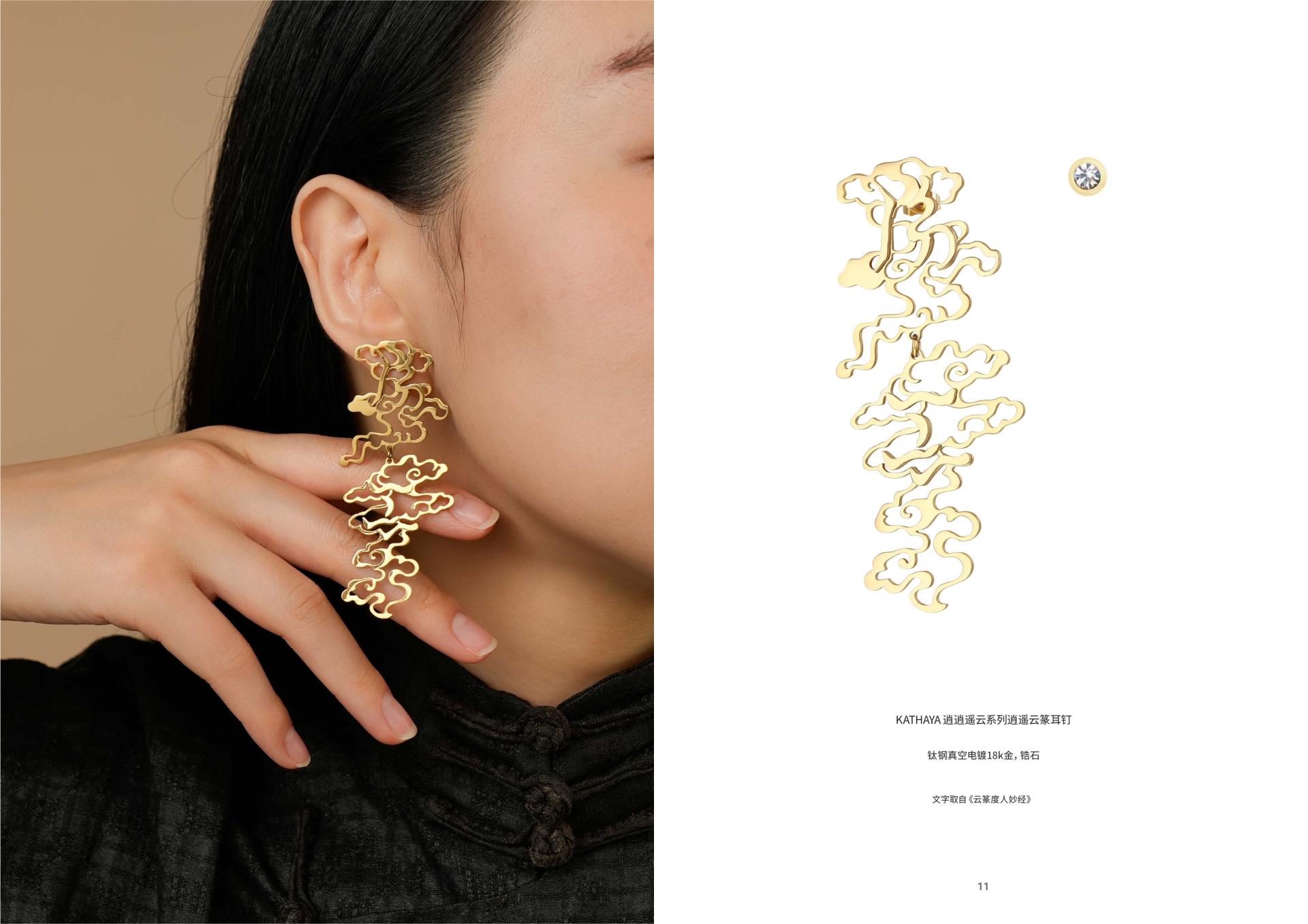 The "Free and Unrestrained" series of stainless steel fashion jewelry draws its core inspiration from the cloud script calligraphy of the Taoist classic Yunzhuan Duren Miaojing, deeply integrating traditional Chinese cloud motifs. Through layered structural design, it achieves a sophisticated dialogue between classical and contemporary aesthetics.