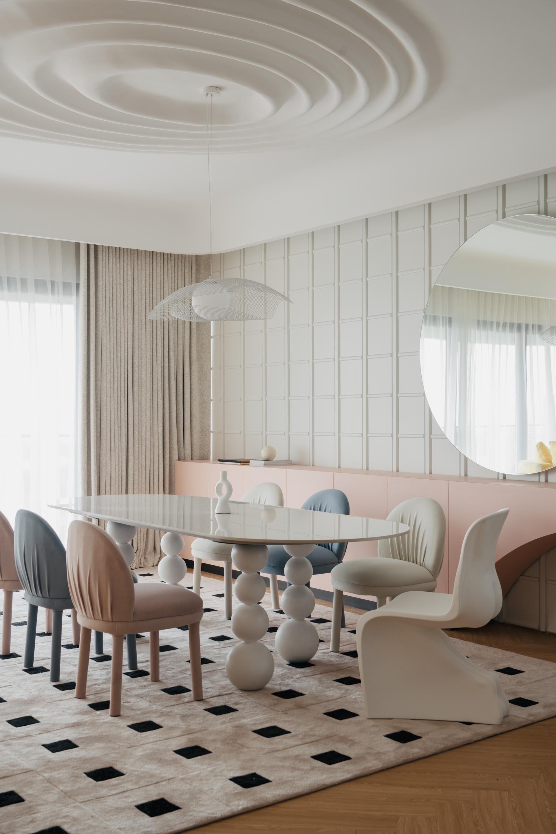 The concept of this interior design centers on "Modern Playful Elegance" a thoughtful blend of minimalist sophistication and joyful expression. It embraces the idea that a space can be refined and stylish while still feeling lighthearted and full of personality. The design draws inspiration from artful geometry, soft pastels, and sculptural forms, resulting in a space that feels curated yet welcoming.