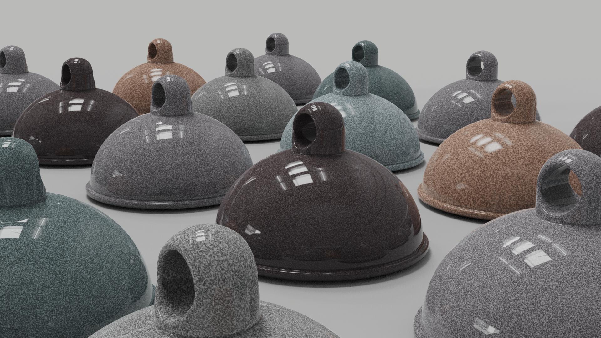 The buoy consists of two main components: a sealed solar positioning module for net identification and remote management, and a rotatable, degradable base made from compressed natural calcium materials—derived from discarded oyster shells and shellfish remains. These bases inherit the colors of their biological origins and are thermally treated to create diverse visual identities with local cultural relevance.