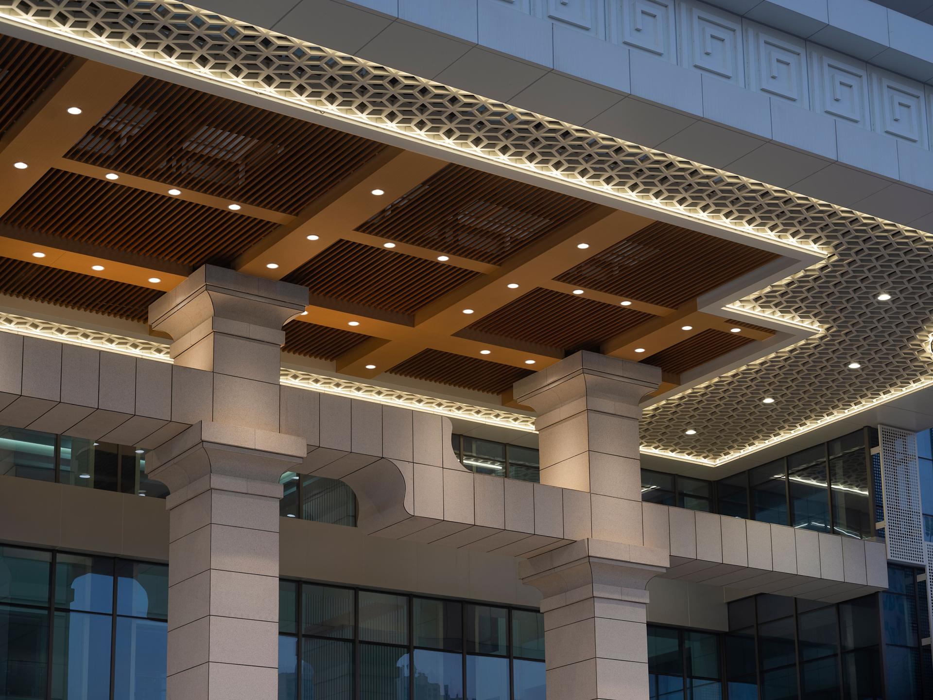 This design draws inspiration from the surrounding roads and landscape composition, with the building volume expressed linearly and extending from east to west as the terrain changes. The building exhibits an undulating posture with height changes, mirroring mountains and rivers interdependent and flowing with clouds and water.
