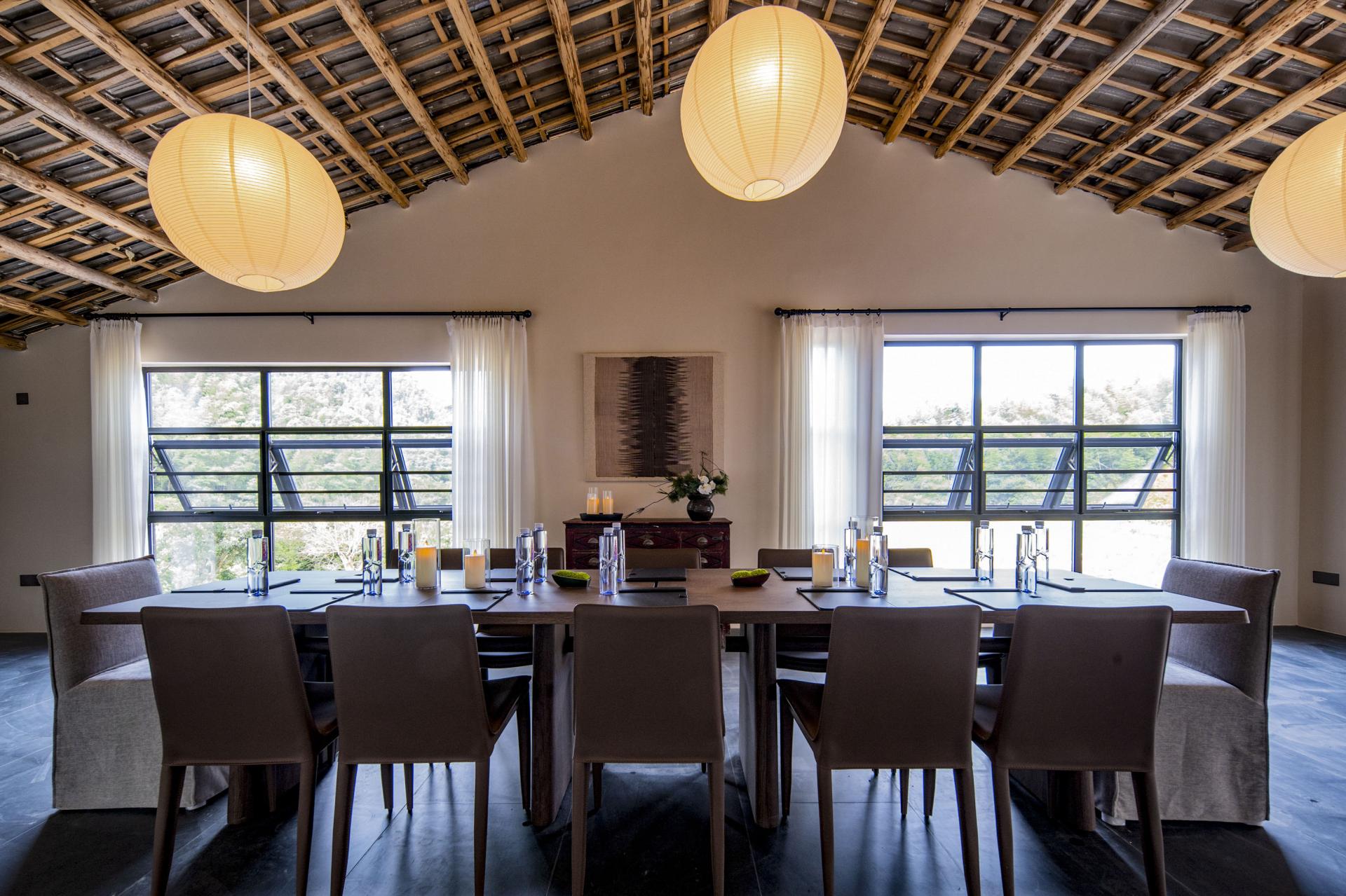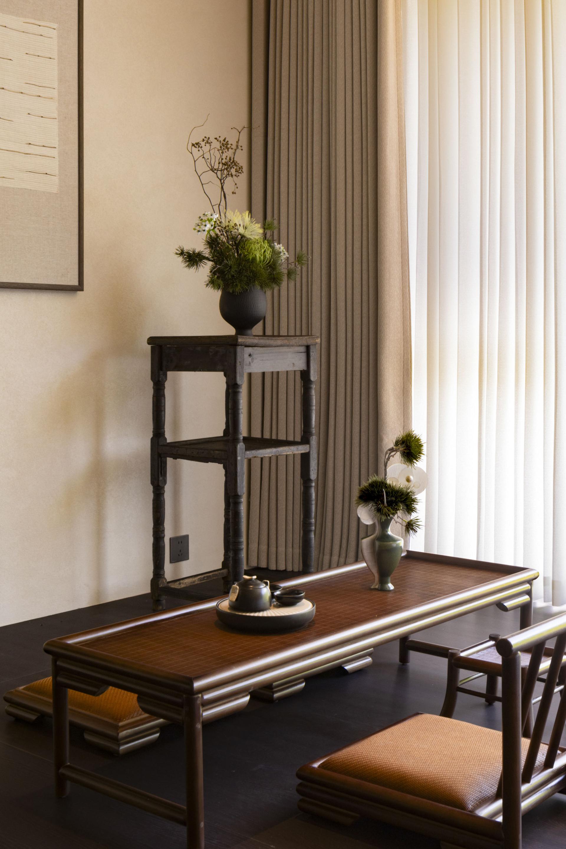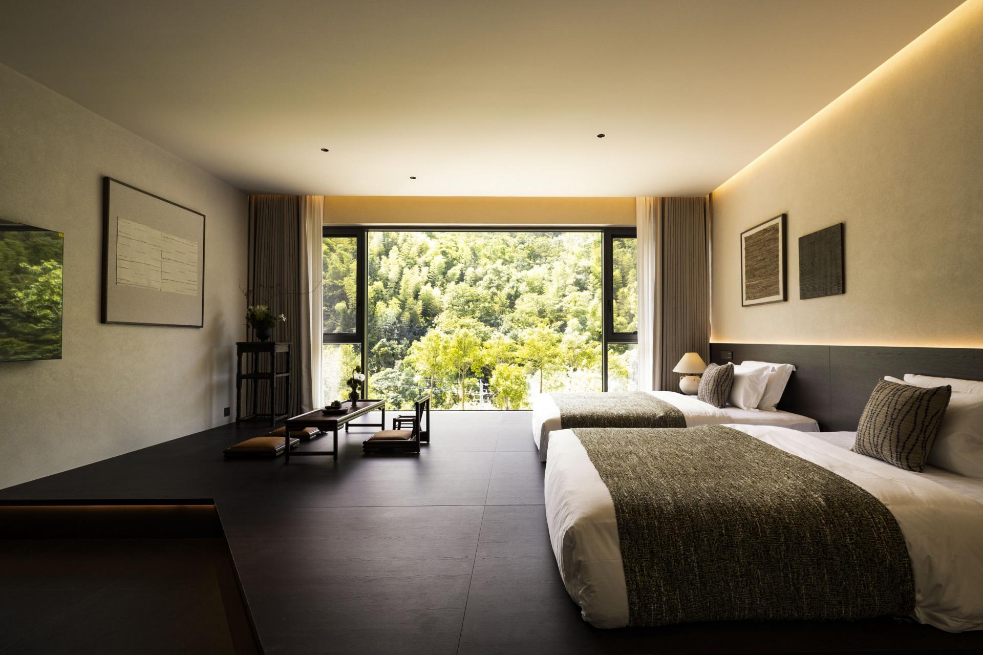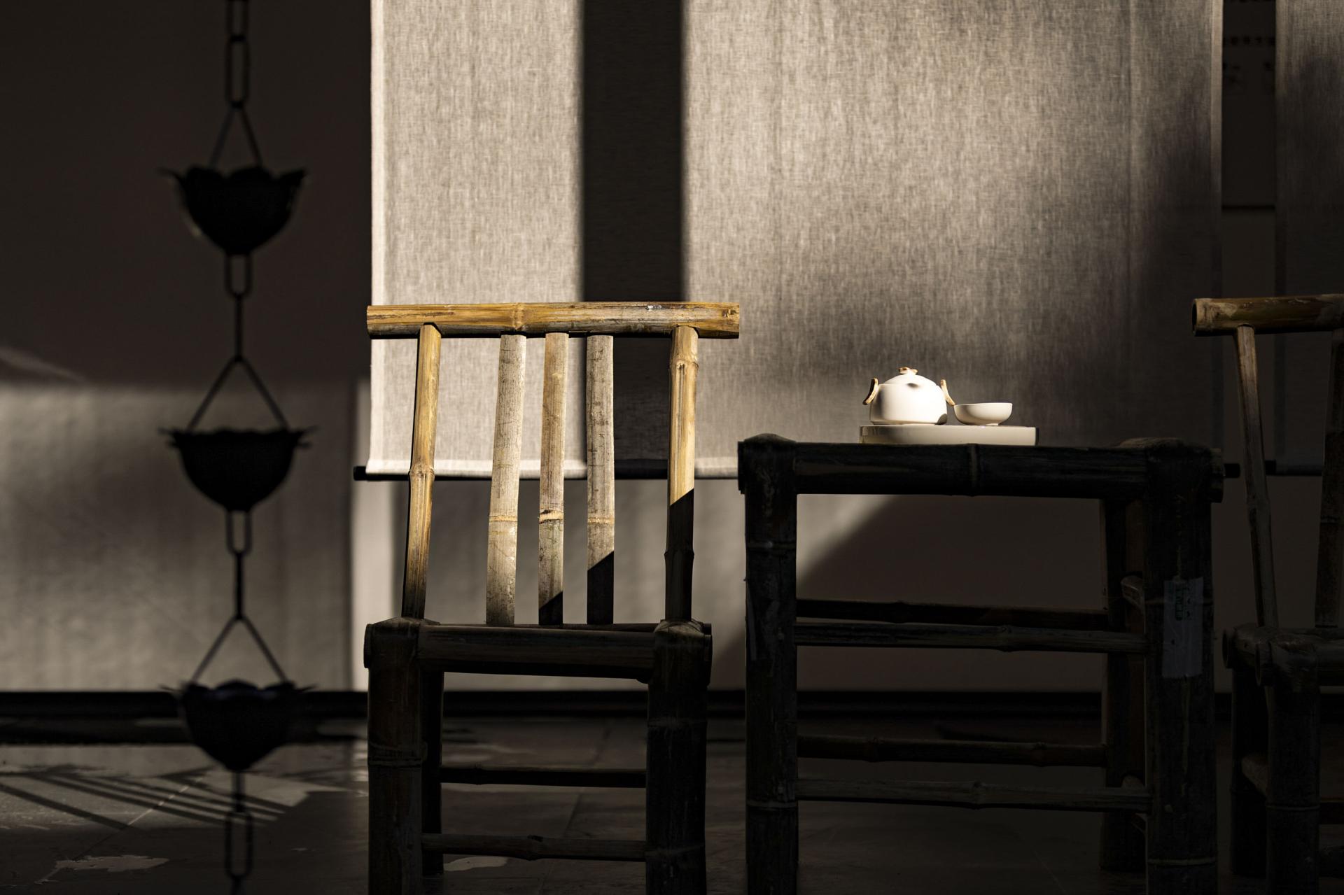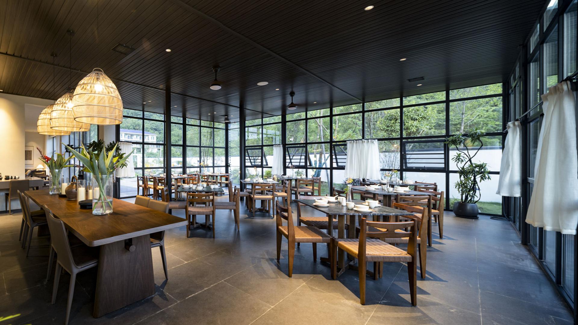 The design deeply integrates local Hakka culture with the surrounding natural landscape, emphasizing regional identity while crafting a relaxed, resort-like ambiance. Drawing inspiration from the basalt textures of nearby glacial relics, interior materials feature rough-textured walls and matte black flooring, forming a "dialogue between rigidity and softness" through their contrast. The overall design adheres to the principle of emphasizing soft decoration over hard decoration, presenting the spatial structure and functionality in a minimalist manner. By utilizing minimalist materials and techniques, ample white spaces are created throughout the design. In natural healing design, lighting eschews standardized hotel illumination, utilizing adjustable smart lighting and star trail-inspired lighting through large floor-to-ceiling windows. Acoustic control employs double-layered insulated glass to block wind and rain noise while preserving the stream's white noise. The space regularly hosts resident workshops by local intangible cultural heritage masters. It deeply integrates geological culture with natural healing, translating the geological features of Quaternary glaciers into spatial language. Through bamboo-woven furniture, plant installations of Taxus chinensis var. mairei, and an acoustic system utilizing the stream, it constructs a multi-dimensional natural experience. It also innovatively applies intangible cultural heritage, breaking through traditional limitations by transforming Xia cloth nto a modern functional carrier. Old objects form a "mini folk museum," endowing the space with a sense of temporal depth. Additionally, it has created a low-intervention healing system, enhancing the experience through light therapy systems and acoustic healing. The design process encountered numerous difficulties. Issues such as damage and incompleteness of old objects were addressed through restoration, mounting, classified display, and the creation of electronic archives. Xia cloth, prone to wrinkling and shrinking, was treated with composite backing technology and pre-shrinking processes, with plant-dyed Xia cloth selected. This reduced the loss rate from 25% to 8% while making the colors more durable and natural. Sustainability permeates every detail: a 100% reuse policy for recycled materials (from stone piers to wardrobes) achieves zero-waste renovation. Material carbon footprints are strictly controlled, with all timber FSC-certified and artistic coatings meeting EU Ecolabel standards.