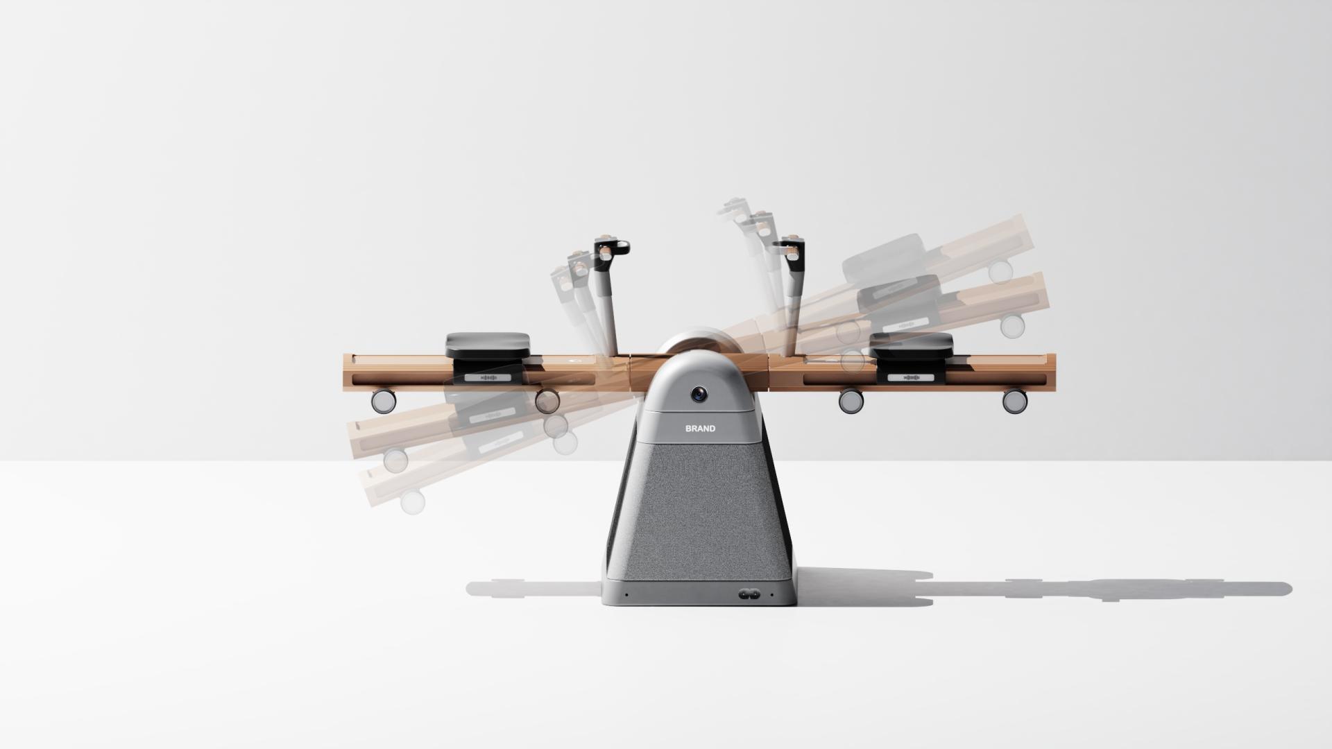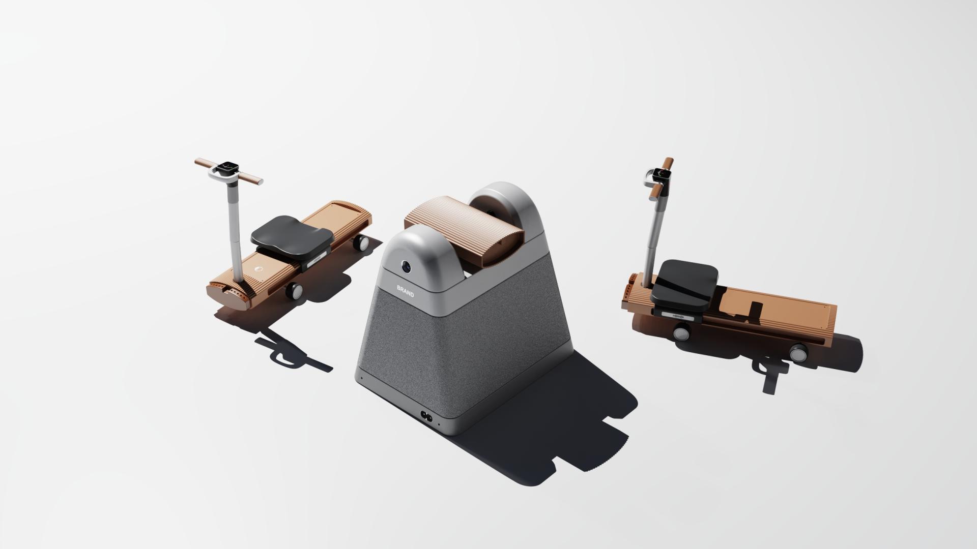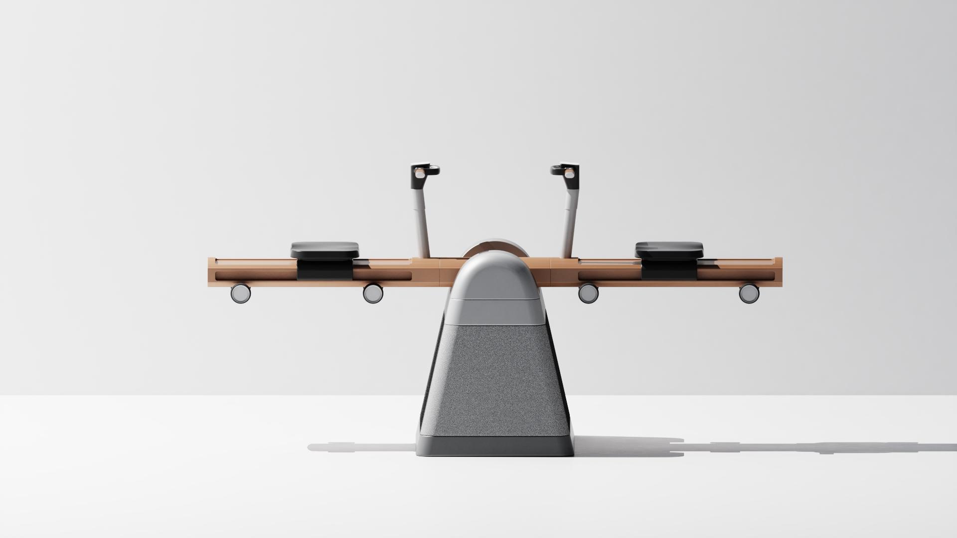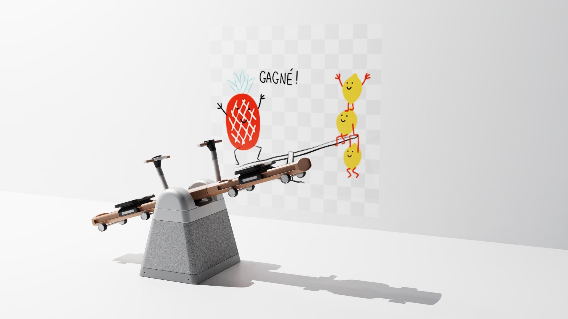 The indoor intelligent seesaw design is combined with the scooter to integrate the interactive elements of the game. The seesaw seat can be disassembled according to the needs of the child and converted into a scooter, providing two different ways for the child to play. One side of the seesaw is equipped with a projection camera, which can project the game picture onto the wall, and children can move up and down the seesaw seat to interact according to the game tasks on the projection. The product is designed with easy storage in mind to facilitate indoor storage.