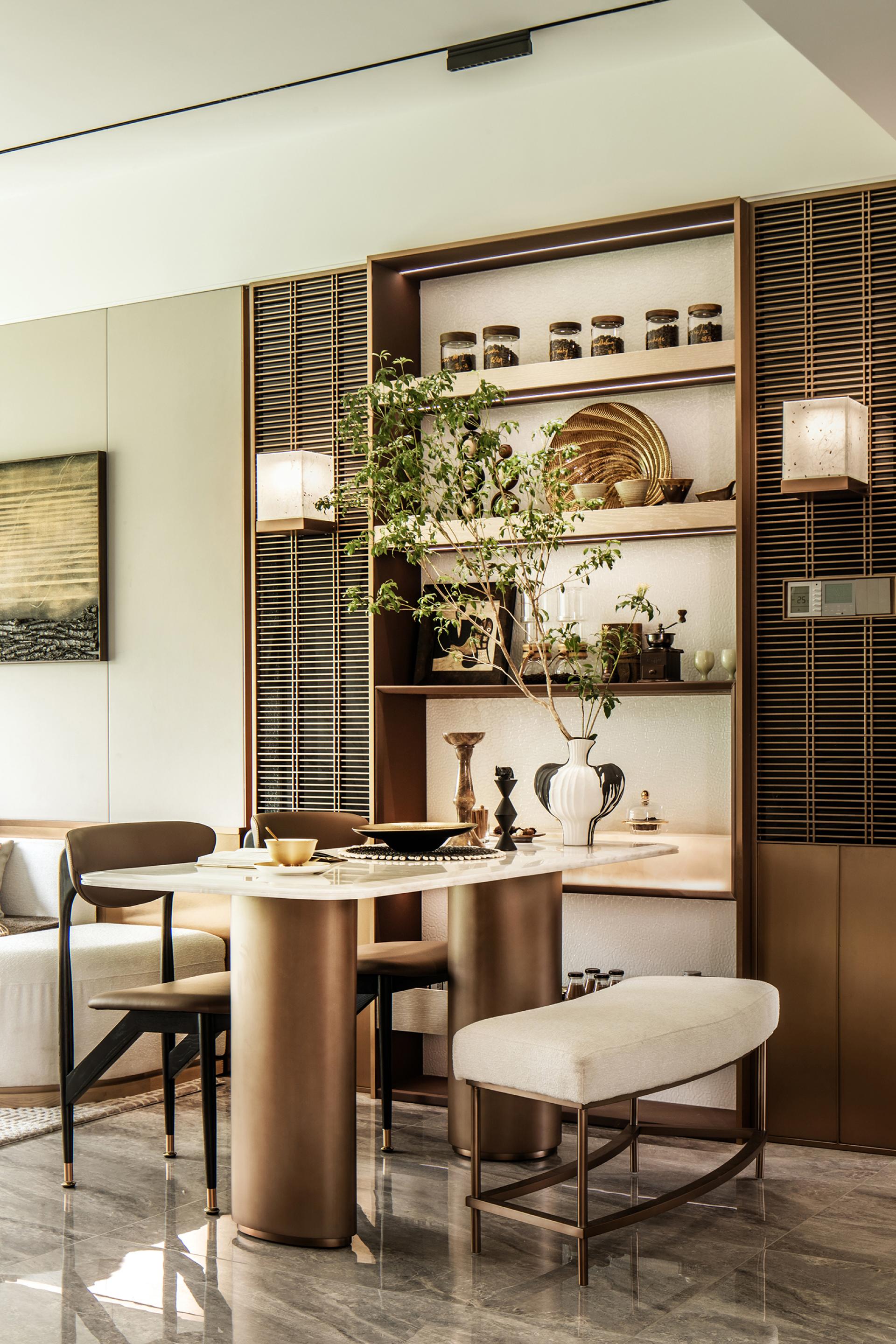 Innovative Highlights: The design breaks rigid boundaries with ingenuity: bronze-toned display shelves not only carry forward the artistic conception of carved patterns from old Nanyang mansions but also embody the Cantonese people's attention to utensils; elements such as the "Game in progress" metal sign in the game room create a distinctive tension between Nanyang's unrestrained spirit and Cantonese new trends. The interplay of velvet and metal endows the space with a vivid and distinctively innovative character.