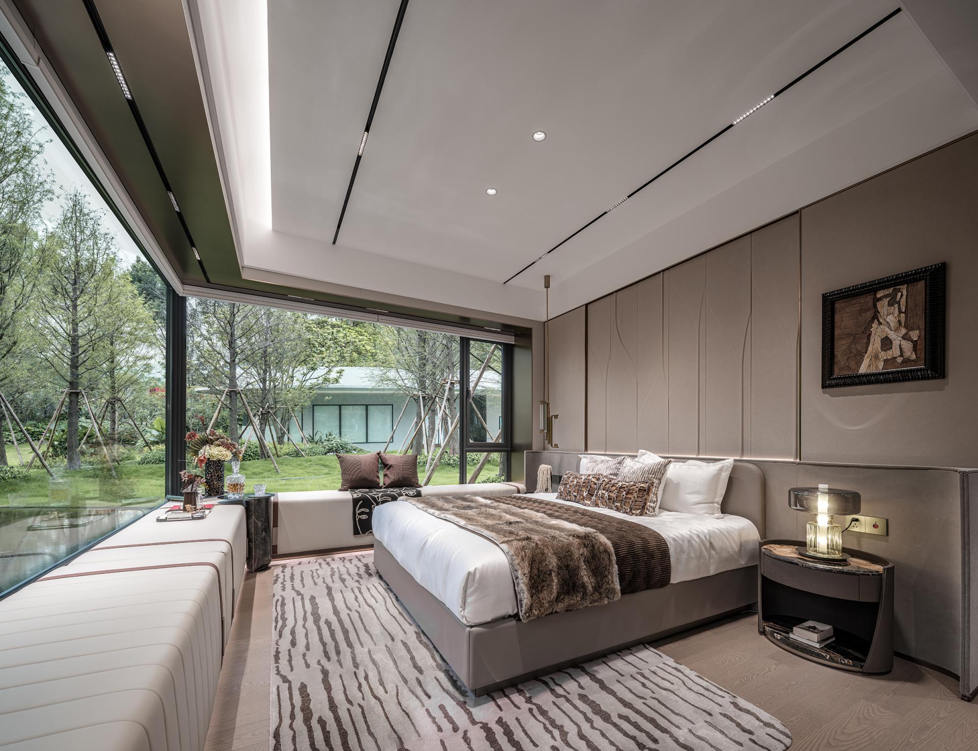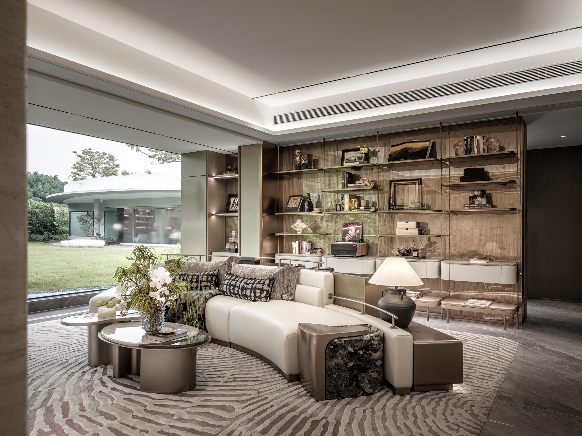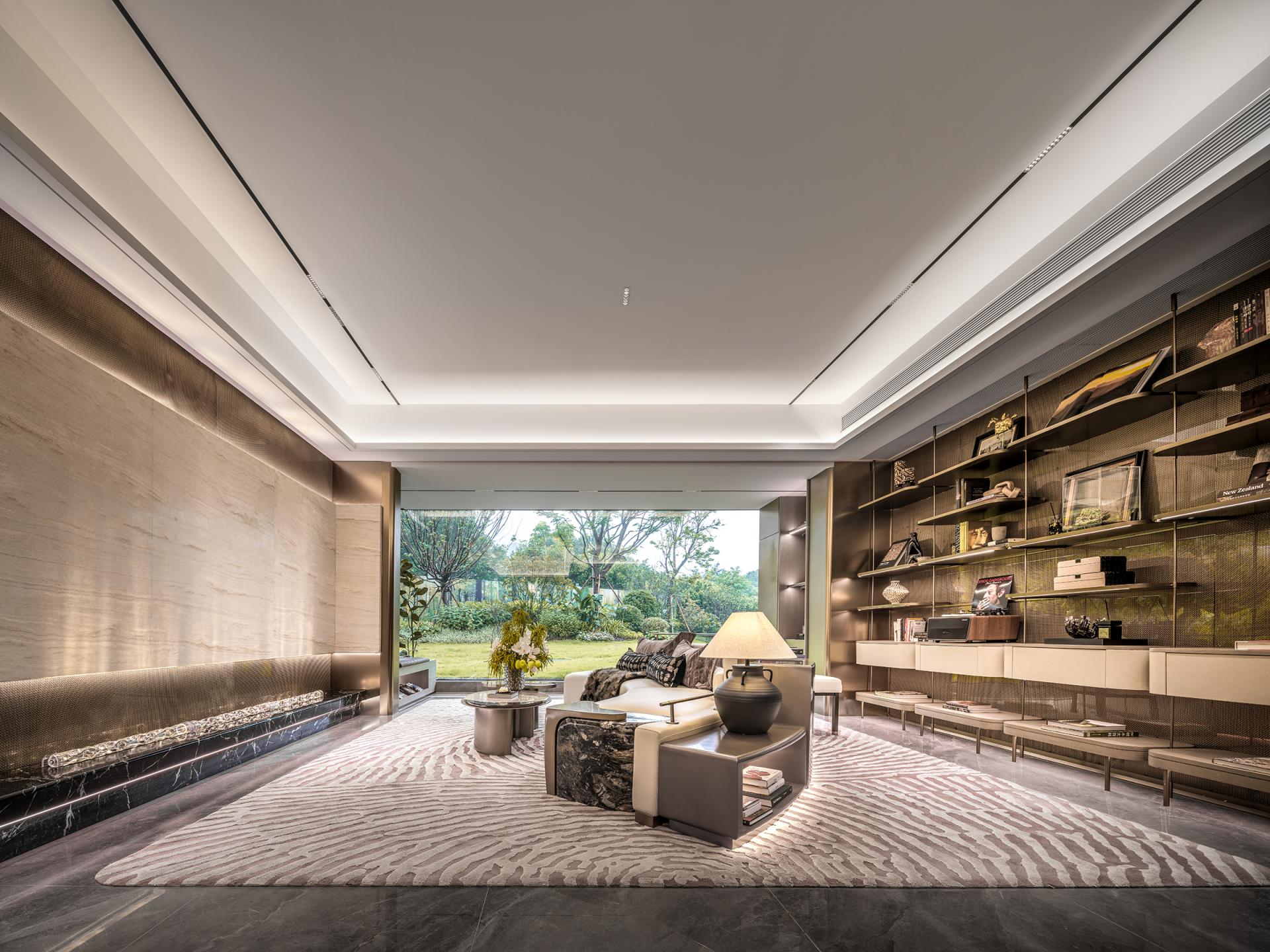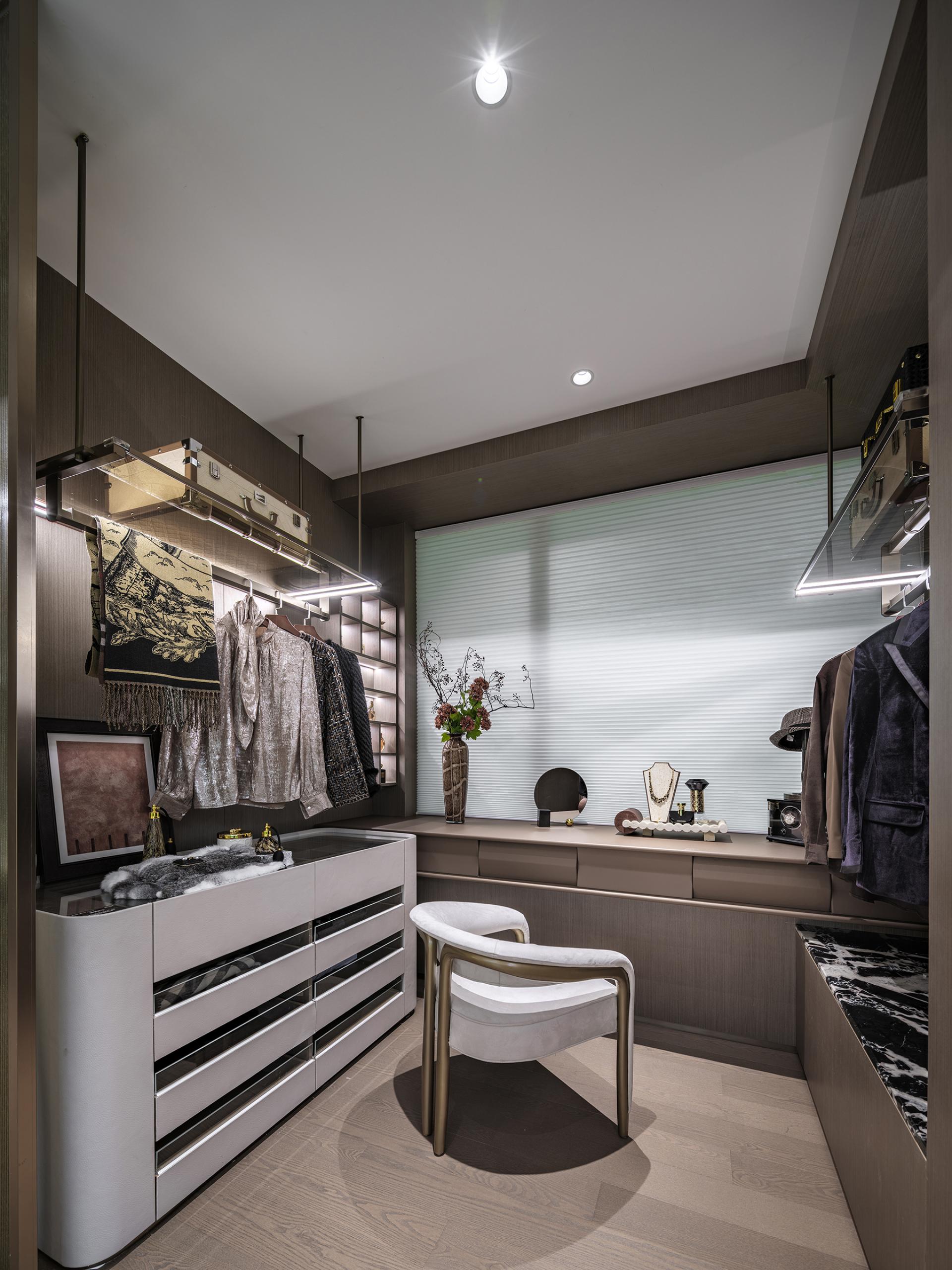 Innovations: The design transcends traditional spatial boundaries and functional limitations: removing balcony sliding doors creates an unobstructed flow between the living room and the outdoors, allowing natural light and shadow to permeate freely. Dynamic water ripple lights embedded in the platform channel the shimmer of the Pearl River indoors, redefining the soul of the space through light. The dining room breaks free from singular functionality, merging the warmth of Chinese home-cooking, the ease of Western-style living, and the ritual of displaying collections, embodying the multifaceted possibilities of grand residence living. Meanwhile, the entryway's storage is reimagined through the "philosophy of concealment and revelation," reconciling practicality and aesthetics, and innovatively fusing function with ambiance in every detail.
