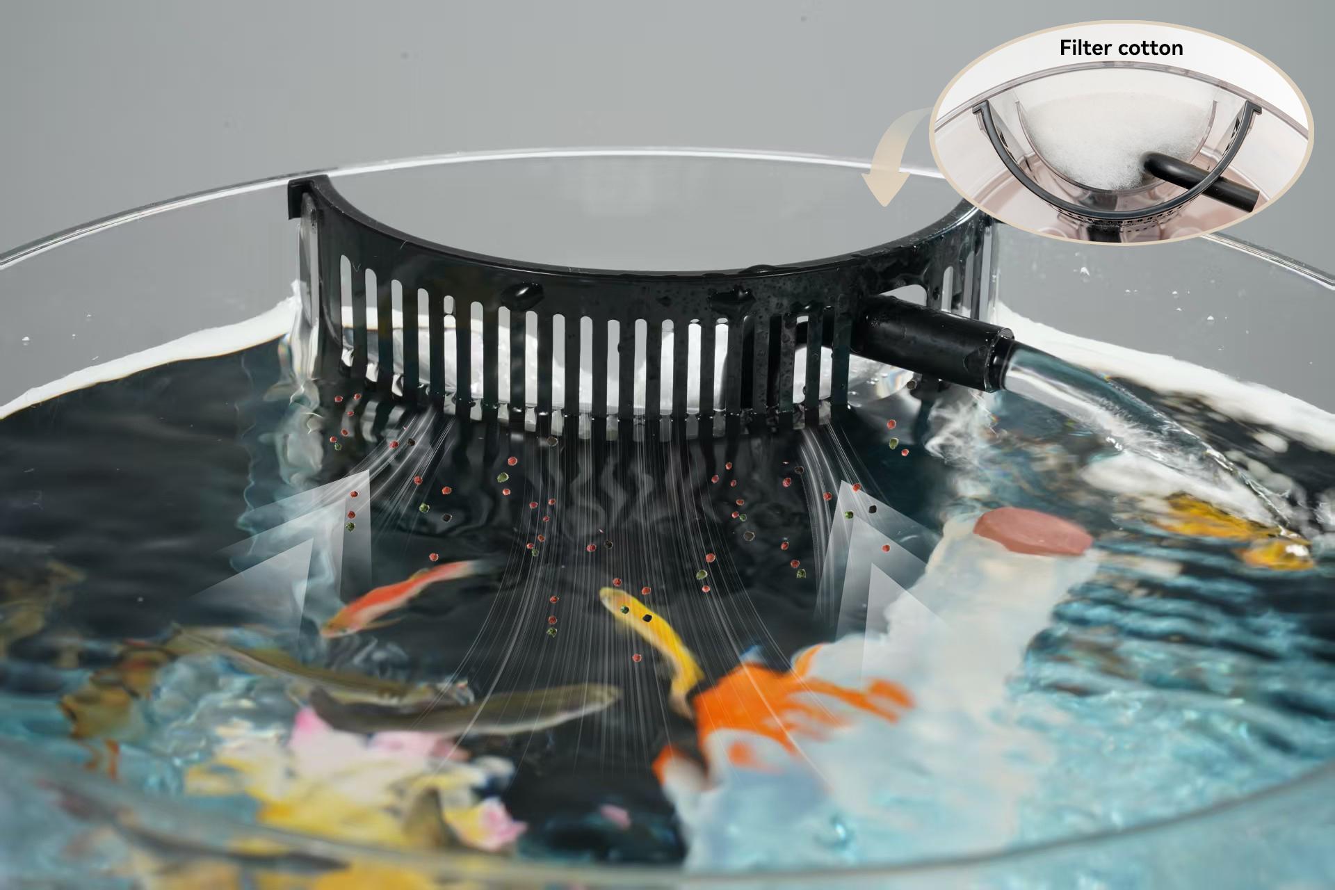 Made of durable, fully transparent PC material, it offers over 300° of unobstructed viewing angles, eliminating the poor viewing experience caused by seams in traditional glass aquariums. Users can enjoy the soothing sight of fish swimming from various angles during work breaks, helping the mind briefly escape from intense focus, relax emotions, and relieve stress.