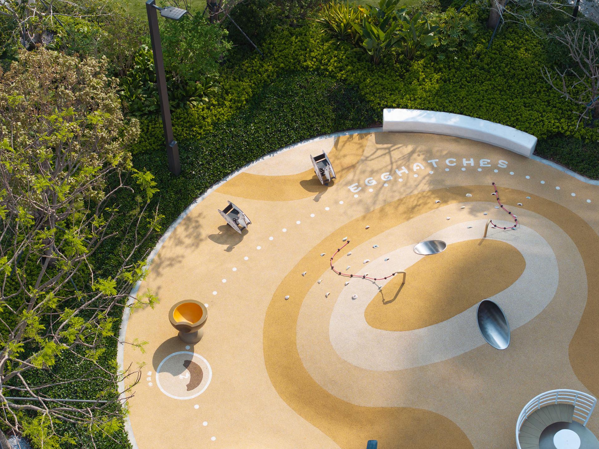 Poly·Shouzhu Lvwan Project is adjacent to the Dongjiang River, the mother river of Dongguan. The Longwan Wetland Park is on the northwest side, and the wetland park and Longwan Island are on the northeast side, forming a natural ecological environment. Among them, Longwan Egret Island is located here, serving as a natural habitat for the little egret, a national second-class protected animal, where groups of egrets inhabit and reproduce. We take the egret as the core design element to build a connection between the site and the natural environment. Through gamified interactive experiences, children can naturally understand the importance of ecological protection during participation. At the same time, the image of the egret is endowed with a deeper symbolic meaning, representing the growth process of life and carrying the spiritual pursuit of returning to nature.
