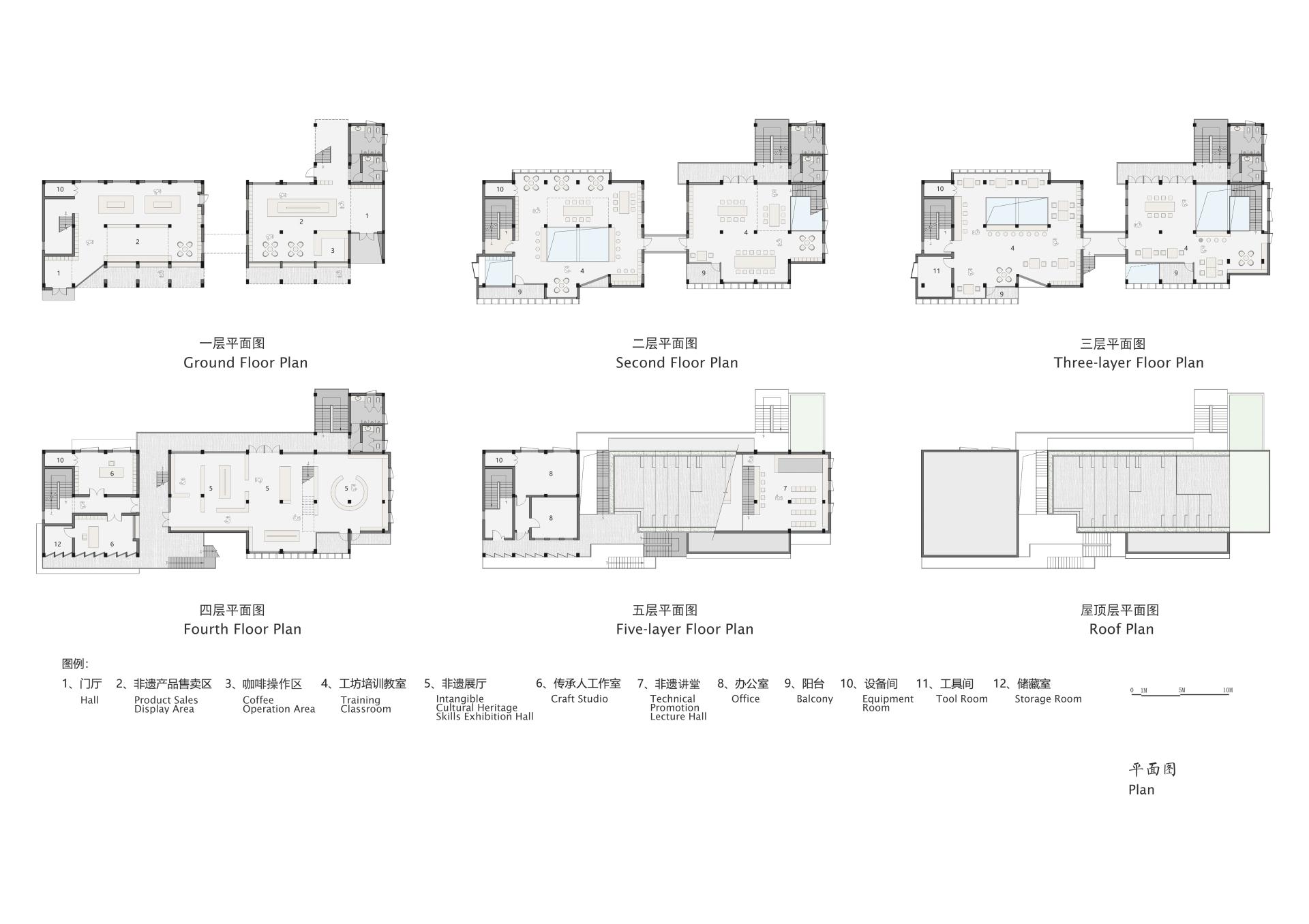 Level 4 & Roof – Exhibition hall and event terrace uniting cultural display, public activities, and observation.