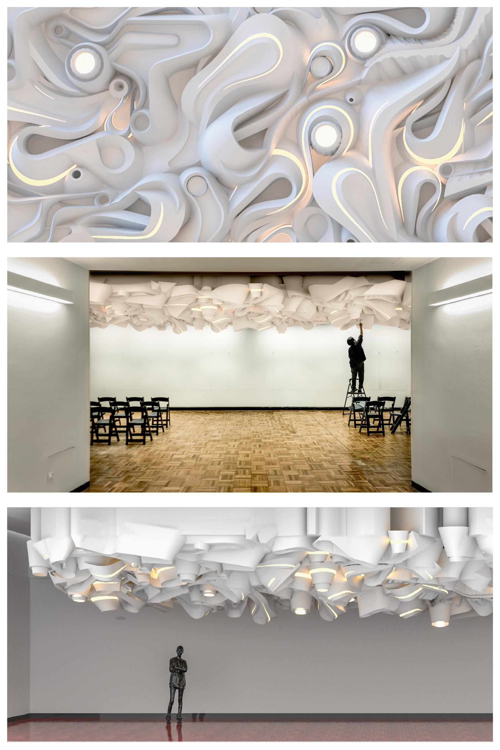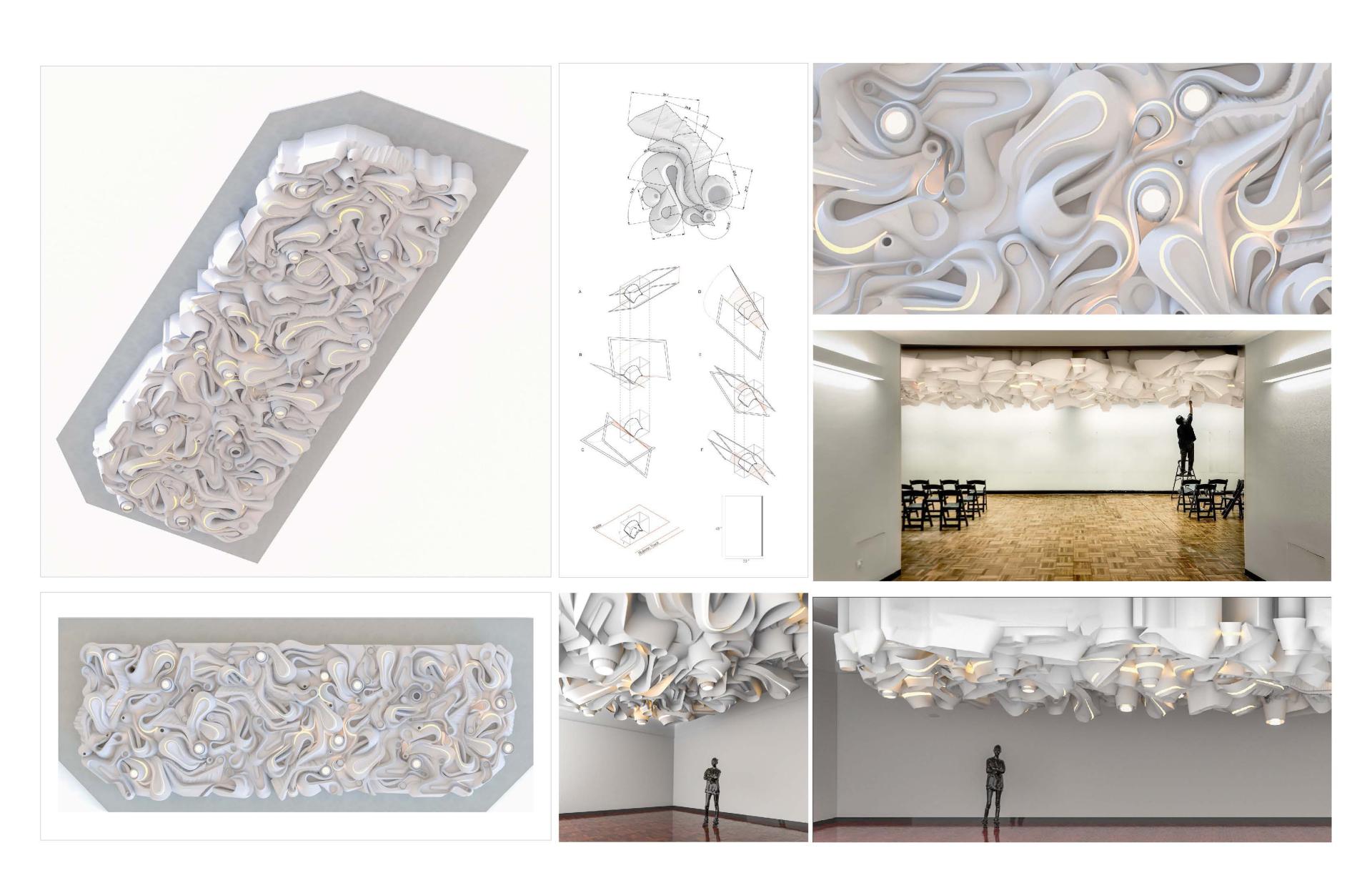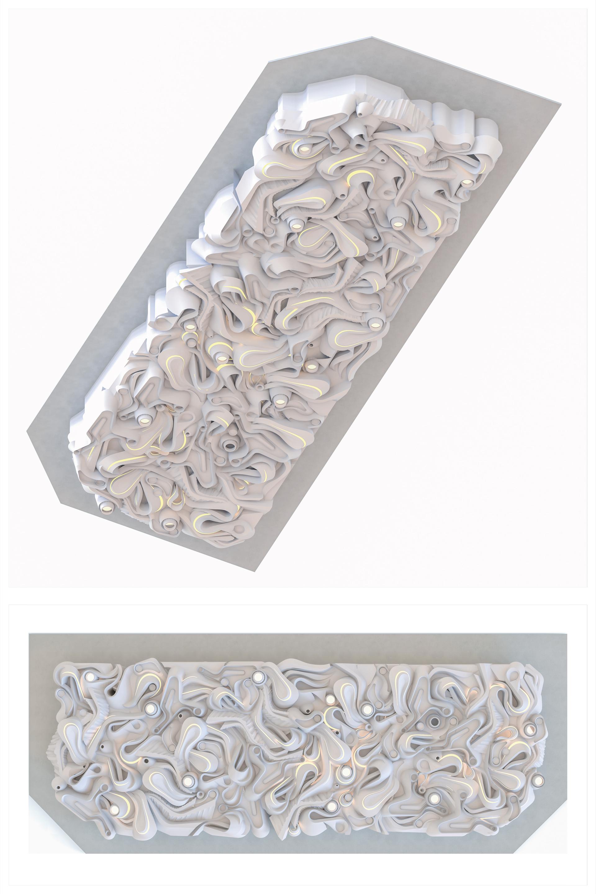 This project explores robotic fabrication to develop a prototype for an easily assembled, reusable, and transportable wall relief system. The system incorporates acoustic absorption and supports the integration of lighting features. Designed with modular construction in mind, the relief is sliced into manageable segments for efficient transport and reconfiguration.